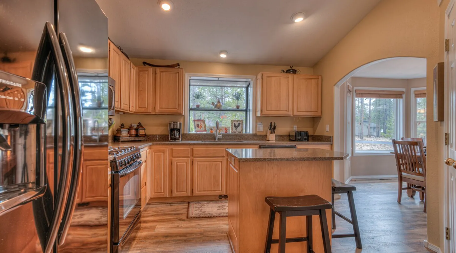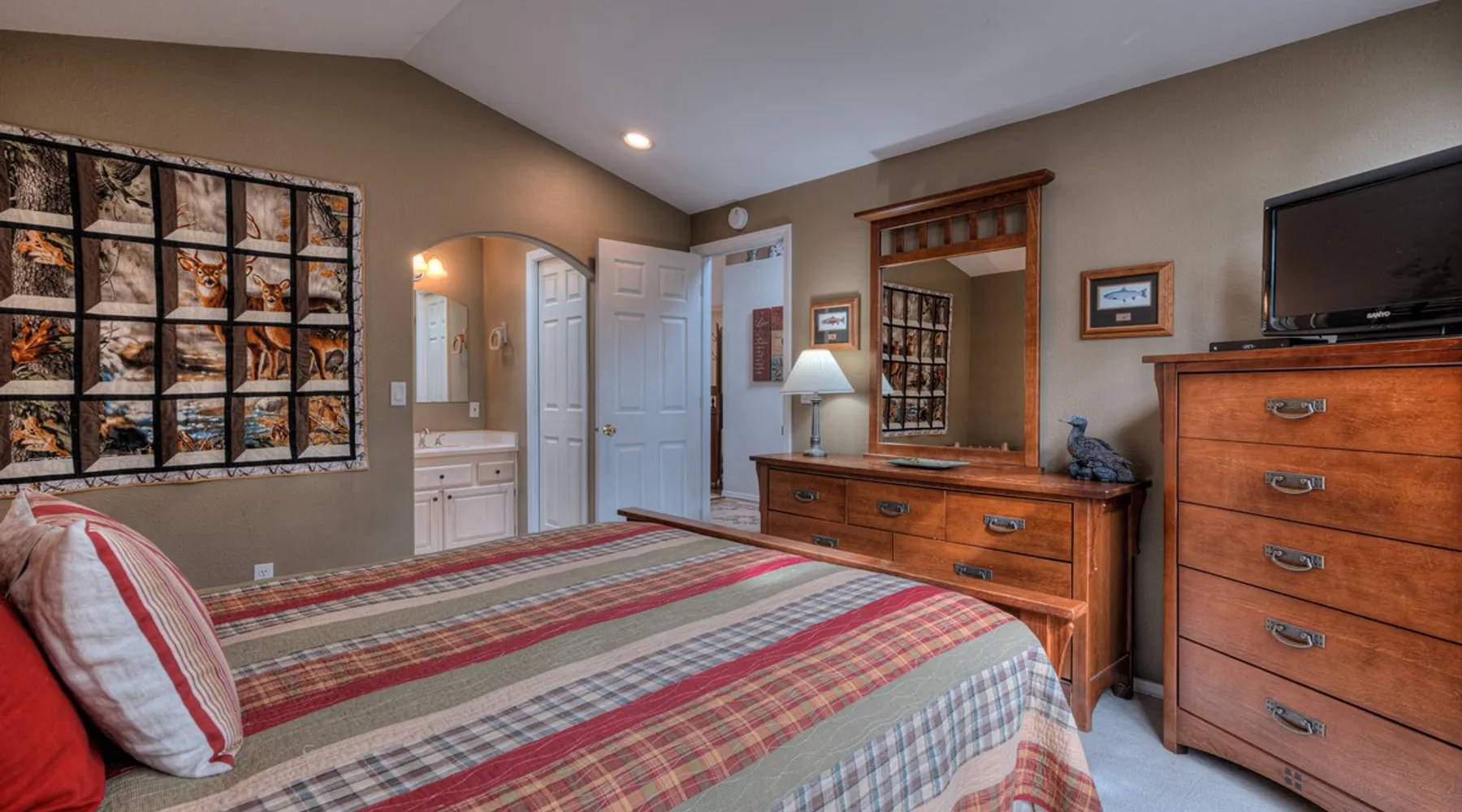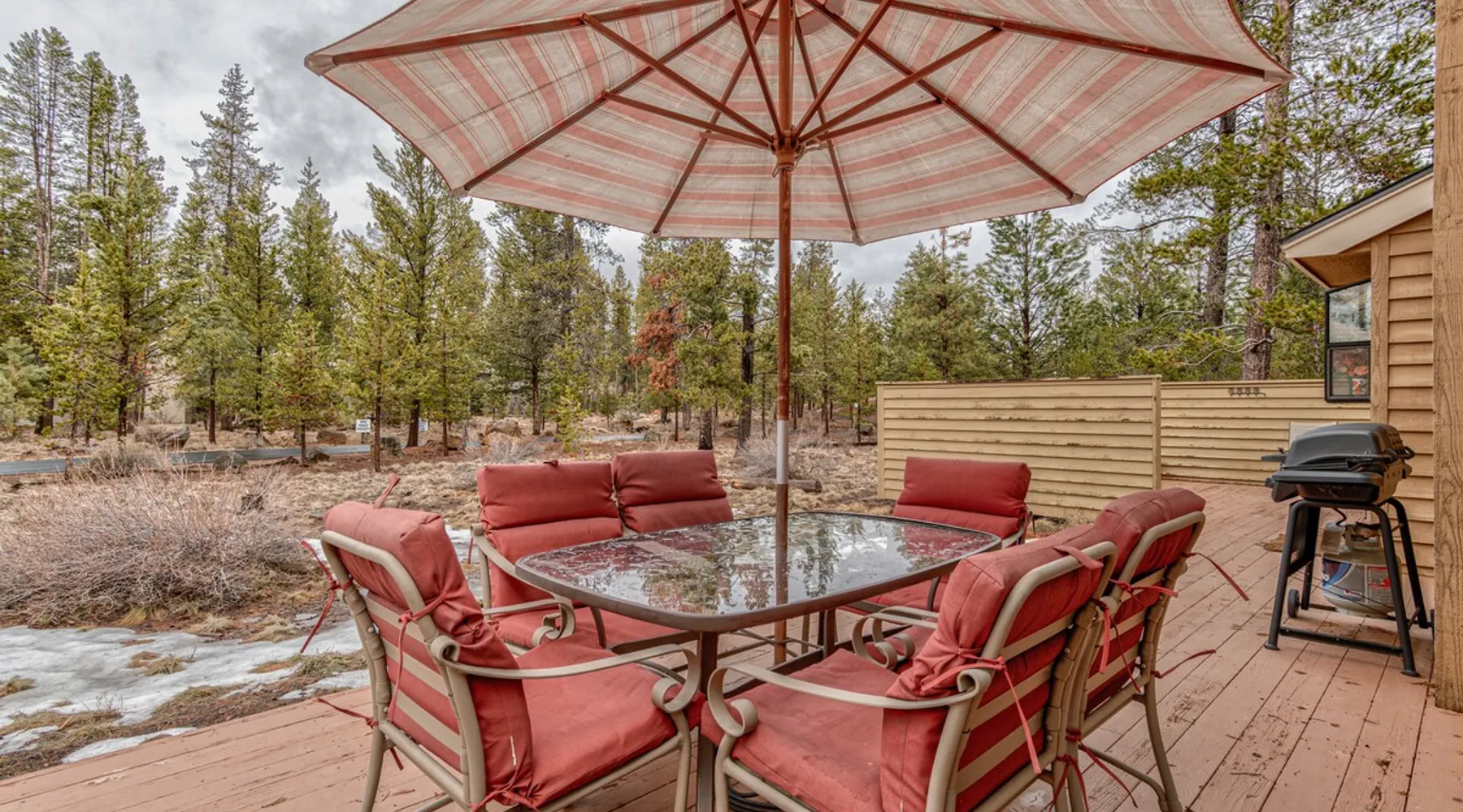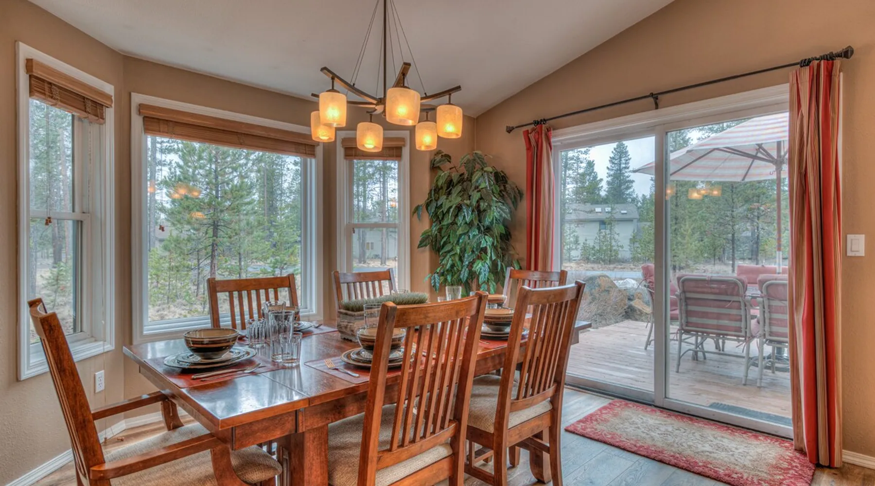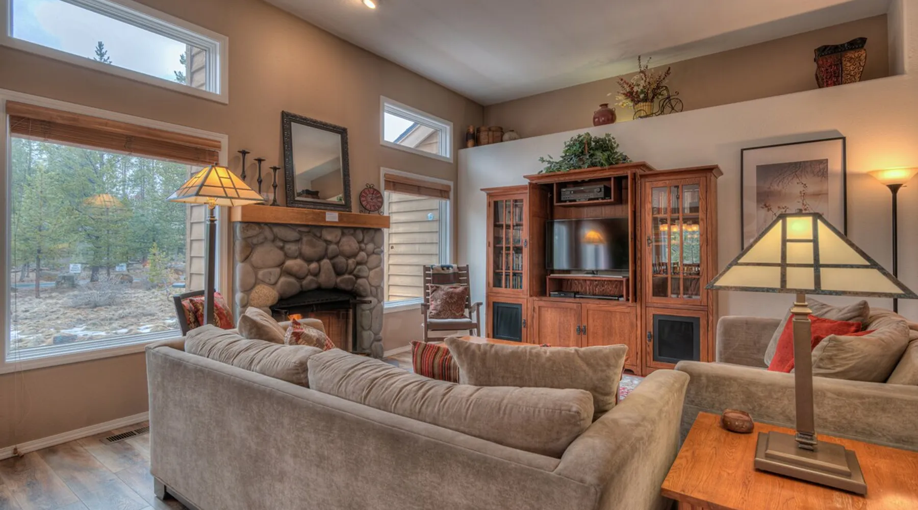 This family-friendly Sunriver vacation home offers cozy charm with new decor and a peaceful deck for wildlife watching. The single-level layout includes a King Ensuite, two Queen bedrooms, and three full bathrooms. Enjoy ping pong or explore Sunriver’s scenic trails with seven adult bikes. Perfect for a relaxing getaway. The space This newer single-level home has a cozy feel and new decor, making it a relaxing, and enjoyable, home away from home. Relax on the quiet deck area while watching the deer, curl up or watch a DVD in the comfy living room. The adjacent dining room has room for 6 and the fully-equipped kitchen has everything you'll need to whip up a culinary masterpiece. The first bedroom is a King Ensuite with TV and attached private bathroom with walk-in shower. Bedroom two is a queen bedroom with TV and attached private bathroom with a spacious walk-in shower. Bedroom 3 has a queen bed and tv and access to a full guest bathroom. When it's time to play, start a game of ping pong or go on a bike ride with one of the 7 adult bikes waiting in the garage. This home, along with most Sunriver homes, is not air conditioned. With our cool mountain evenings and ice cold rivers and lakes to keep you cool, this is a great house for a slow paced, ice cream and iced beer kinda summer. Booking a family reunion or group gathering? Reserve this home along with Ollalie 14 to have the whole group together This home welcomes dogs, 2 max, no other pets are allowed. Fees apply. *Fireplace is non-operational Guest access Home access information will be sent 7 - 10 days prior to arrival. All homes are set up for self check-in, no need to stop by the office, just go straight to the home. Other things to note AGE RESTRICTIONS: Guests must be 23 years or older to rent Bennington homes and the person reserving must occupy the home the whole reservation.