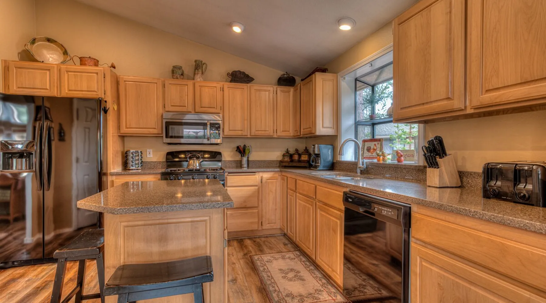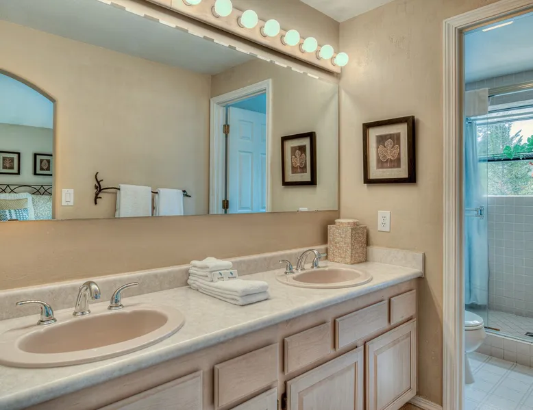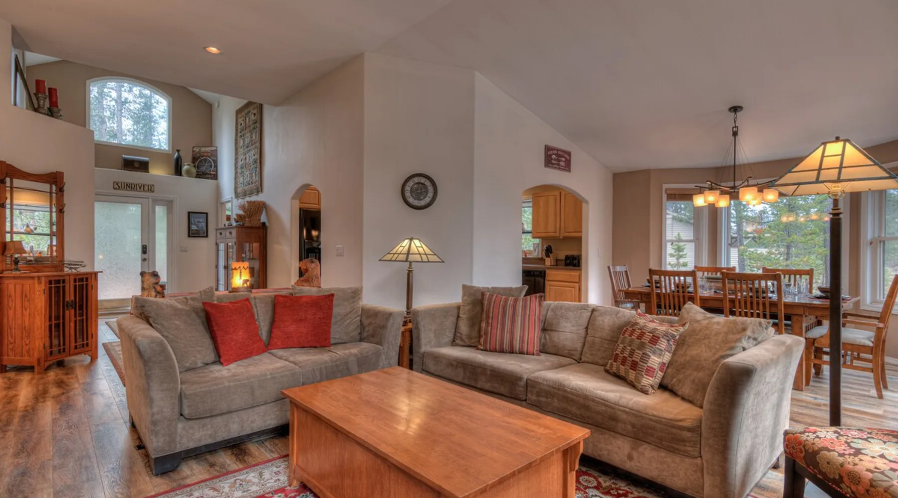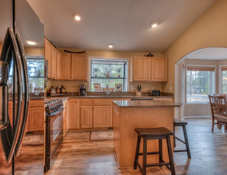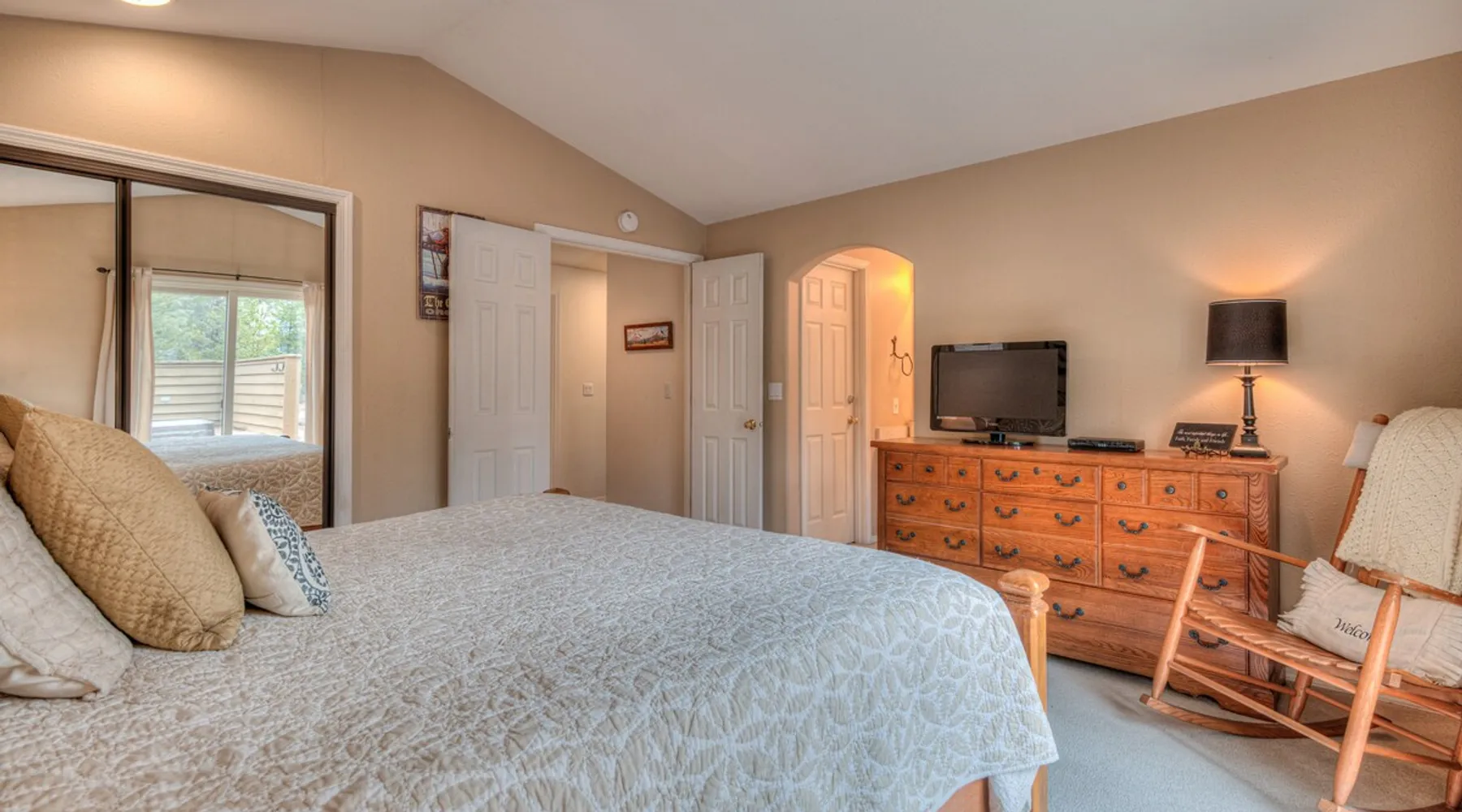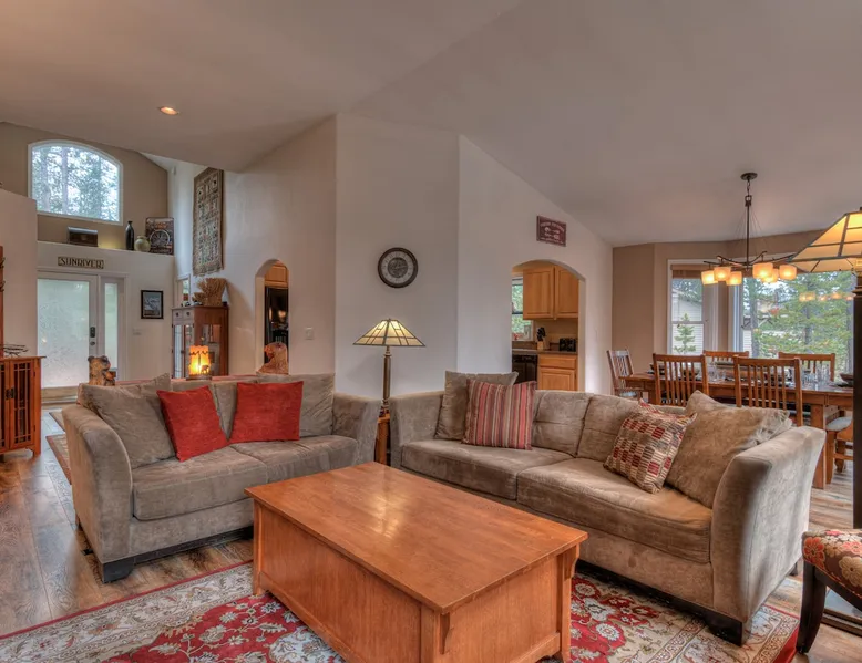 This family-friendly Sunriver vacation home offers cozy charm with new decor and a peaceful deck for wildlife watching. The single-level layout includes a King Ensuite, two Queen bedrooms, and three full bathrooms. Enjoy ping pong or explore Sunriver’s scenic trails with seven adult bikes. Perfect for a relaxing getaway. The space This newer single-level home has a cozy feel and new decor, making it a relaxing, and enjoyable, home away from home. Relax on the quiet deck area while watching the deer, curl up or watch a DVD in the comfy living room. The adjacent dining room has room for 6 and the fully-equipped kitchen has everything you'll need to whip up a culinary masterpiece. The first bedroom is a King Ensuite with TV and attached private bathroom with walk-in shower. Bedroom two is a queen bedroom with TV and attached private bathroom with a spacious walk-in shower. Bedroom 3 has a queen bed and tv and access to a full guest bathroom. When it's time to play, start a game of ping pong or go on a bike ride with one of the 7 adult bikes waiting in the garage. This home, along with most Sunriver homes, is not air conditioned. With our cool mountain evenings and ice cold rivers and lakes to keep you cool, this is a great house for a slow paced, ice cream and iced beer kinda summer. Booking a family reunion or group gathering? Reserve this home along with Ollalie 14 to have the whole group together This home welcomes dogs, 2 max, no other pets are allowed. Fees apply. *Fireplace is non-operational Guest access Home access information will be sent 7 - 10 days prior to arrival. All homes are set up for self check-in, no need to stop by the office, just go straight to the home. Other things to note AGE RESTRICTIONS: Guests must be 23 years or older to rent Bennington homes and the person reserving must occupy the home the whole reservation.