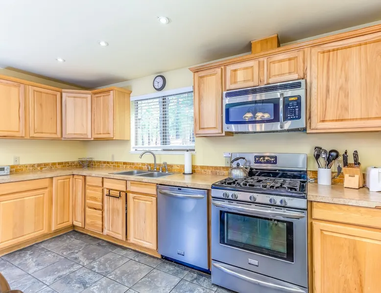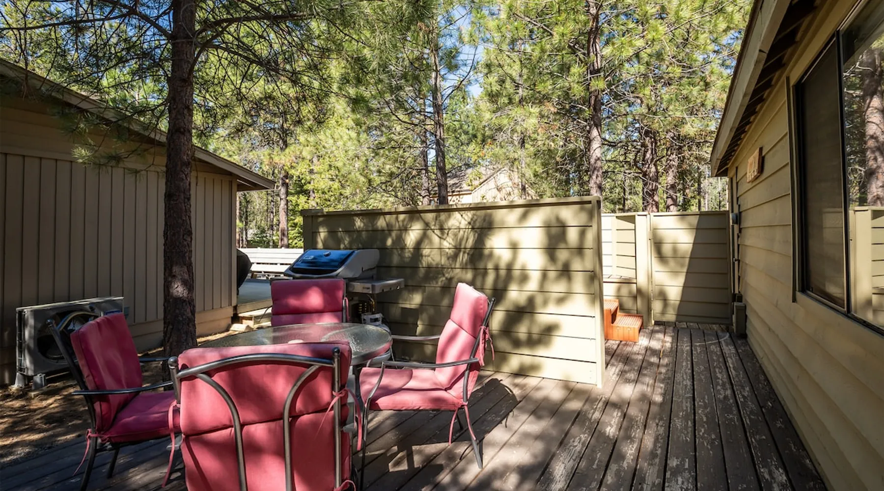Nestled in the heart of Sunriver, Hare Lane 11 offers a perfect retreat for families and friends. This charming three-bedroom home features a cozy living room with a sleeper sofa, a fully equipped kitchen, and a private deck with a gas grill. Enjoy the convenience of high-speed Wi-Fi, a hot tub, and easy access to nearby activities like cross-country skiing and hiking. Whether you're looking to relax or explore, this property provides a comfortable and memorable stay. The space Location, location, location! In the heart of Sunriver, you will find 11 Hare Lane! This cozy, air-conditioned 3 bedroom, 1.5 bath home is just a short walk from the Village at Sunriver and Lodge. As you enter the home, you will find yourself in the warm, inviting living room with its wood burning stove, comfy couches, and a 65" TV. As you enter the dining area, you’ll see seating for 6, while the kitchen opens up with new stainless steel appliances allowing guests to cook and entertain while still interacting with everyone in the home. The afternoon sunlight glows in the living room promising that even on the snowiest of days you won’t feel cooped-up inside. This home offers a deck on the second level for your morning coffee and a good-sized, covered outdoor space with large patio table on the ground floor. Bikes, games, TVs in every bedroom along with DVD and Blue Ray players are sure to keep you entertained! Even on the chilliest of nights, you will be guided by the heat of your steamy hot tub from the master suite. Downstairs you'll find two bedrooms, one with a King bed, the other with a queen bedroom. Head upstairs to find the third bedroom with two Queen beds, providing enough space to share with your friends and family your fun-filled and best vacation in Sunriver. There is even a sleeper sofa in the living room so there is plenty of space to accommodate everyone. New Ford ChargeStationPro L2 EV charger, charges at 19.2kW. No adapter needed, It’s a standard socket for all EV cars (except Tesla, must have an adapter.) This home welcomes dogs, 2 max, no other pets are allowed. Fees apply Guest access Home access information will be sent 7 - 10 days prior to arrival. All homes are set up for self check-in, no need to stop by the office, just go straight to the home. Other things to note AGE RESTRICTIONS: Guests must be 23 years or older to rent Bennington homes and the person reserving must occupy the home the whole reservation.