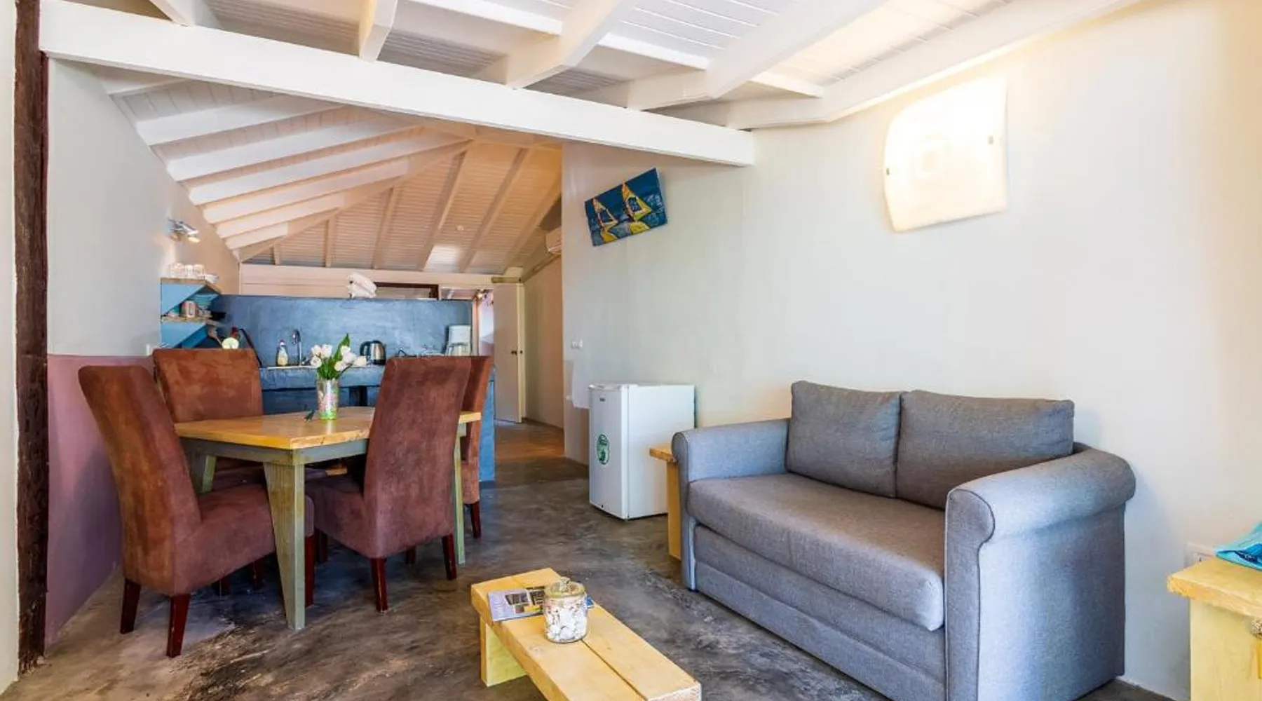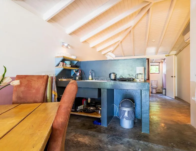 Comfortable Living: Beach Studio Aerial at Lac Bay in Kralendijk offers a one-bedroom apartment with a terrace and free WiFi. The living room includes air-conditioning and a fully equipped kitchen. Convenient Facilities: Guests enjoy free on-site parking, ensuring easy access to the apartment. The reception staff speak English and Dutch, providing assistance as needed. Prime Location: Sorobon Beach is just a few steps away, offering scenic views and excellent seaside activities. Flamingo International Airport is located 4.3 mi from the property. Explore the Area: The surrounding area features scuba diving opportunities, enhancing the overall experience for visitors. The apartment's kitchen is available for cooking and storing food. The apartment features air conditioning and a terrace. The unit has 2 beds.