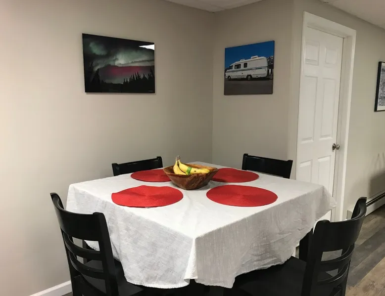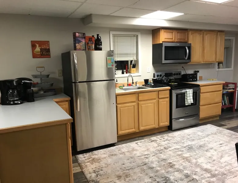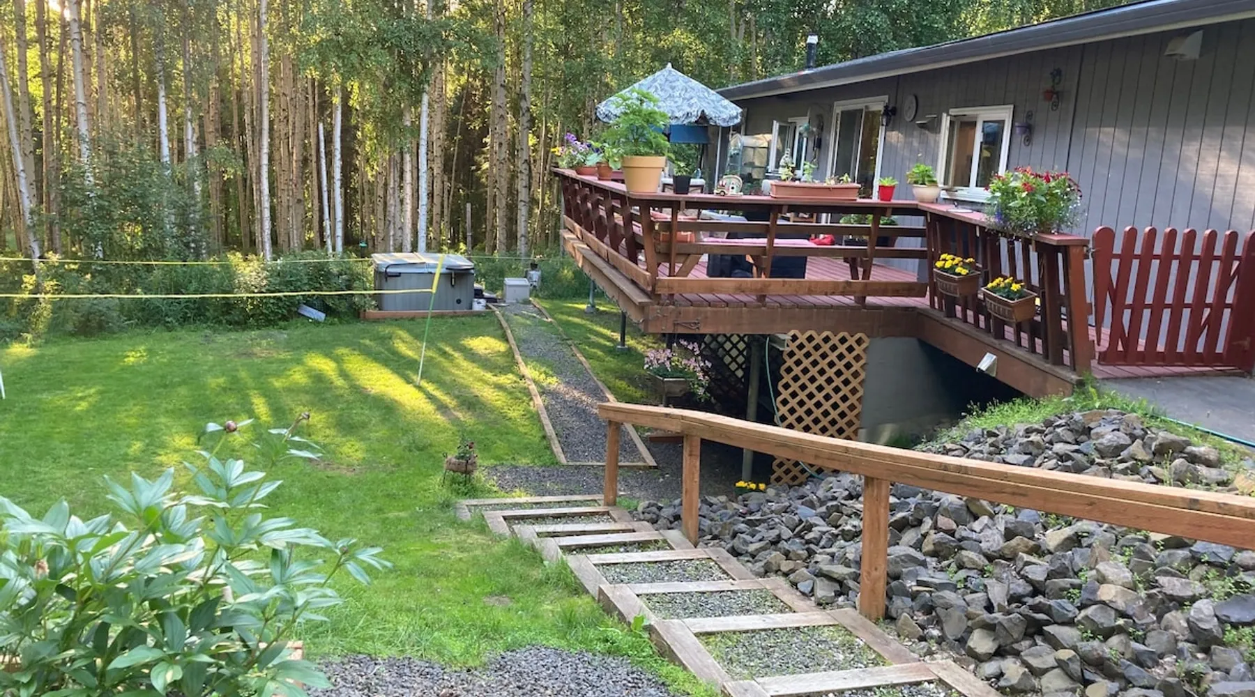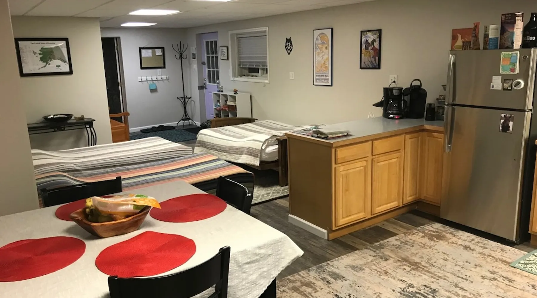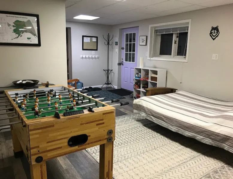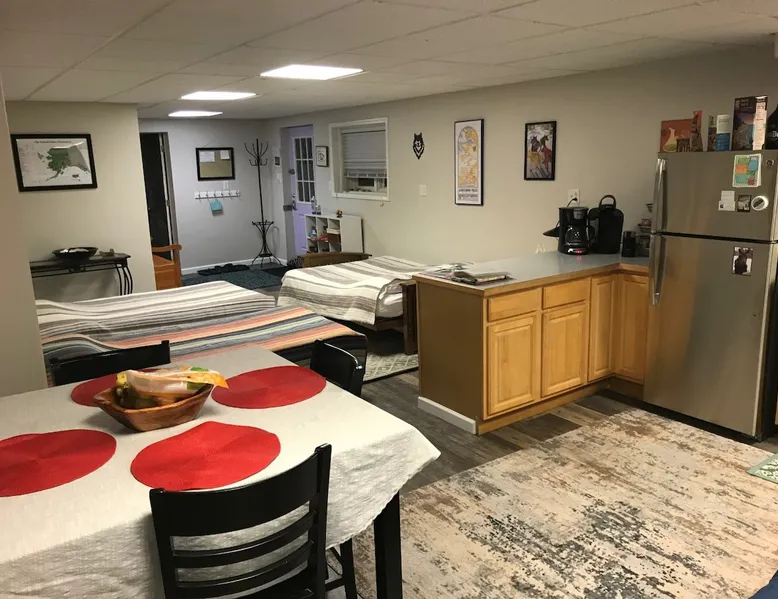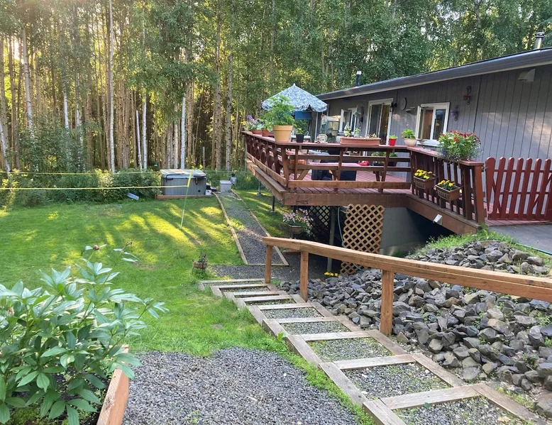 Large, quiet, furnished apartment with private entrance and a full kitchen with lots of amenities, down to towels for the hot tub. Owners live upstairs but apartment is private and quiet. Can sleep six, is 10 min from town, and 1 hr from Chena Hot Springs. Light breakfast included! Dog on approval only. The space Apartment is large and private, nicely furnished, has cool hosts and big hot tub. Close to popular ski area as well, and Chena Hot Springs an hour drive away. Guest access Entire apartment is open to guests and has flat screen tv, stereo (with turntable and 500 old records!), free wi-fi, fully furnished kitchen, and continental breakfast (cereal, eggs, fruit, yogurt, granola, oatmeal, coffee, tea, etc). Other things to note We have two dogs (a pug and a border collie mix) that are sweet and polite. Dogs on approval (no pit bulls), and sorry, no cats.