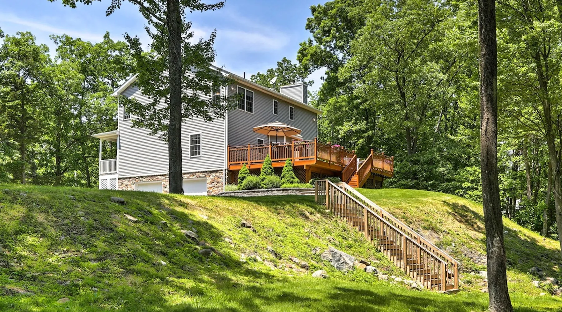 Experience the quieter side of New York when you stay at this 4-bedroom, 2.5-bathroom vacation rental house in Warwick! Situated on 4 acres of land, this colonial-style home boasts 2,400 square feet and is the perfect home-away-from-home for your next getaway. Enjoy the peace and quiet of the surrounding forest from the spacious back deck. Whether you're on a winter trip, scenic autumn getaway, or summer vacation, there are endless outdoor activities to keep you busy throughout your stay. The space Town of Warwick Permit #32722 | Serene Forest Views | 2,400 Sq Ft | Free WiFi Bedroom 1: King Bed | Bedroom 2: Queen Bed | Bedroom 3: 2 Full Beds | Bedroom 4: Queen Murphy Bed OUTDOOR SPACE: Spacious deck, outdoor dining w/ sun umbrella, gas grill, covered patio INDOOR LIVING: 75” Smart TV w/ cable, bedroom suite w/ Smart TV, home gym, rustic wood dining table GOURMET KITCHEN: Fully equipped w/ cooking basics, stainless steel appliances, dishware/flatware, Crockpot, toaster GENERAL: Washer/dryer, linens/towels, complimentary toiletries, central air conditioning/heating, clothes steamer, iron/board FAQ: Stairs required for access PARKING: Garage (2 vehicles), driveway (4 vehicles) Guest access Guests will have access to the entire property via keyless entry Other things to note - No smoking - No pets allowed - No events, parties, or large gatherings - Additional fees and taxes may apply - Photo ID may be required upon check-in - NOTE: The property requires stairs and may be difficult for guests with limited mobility