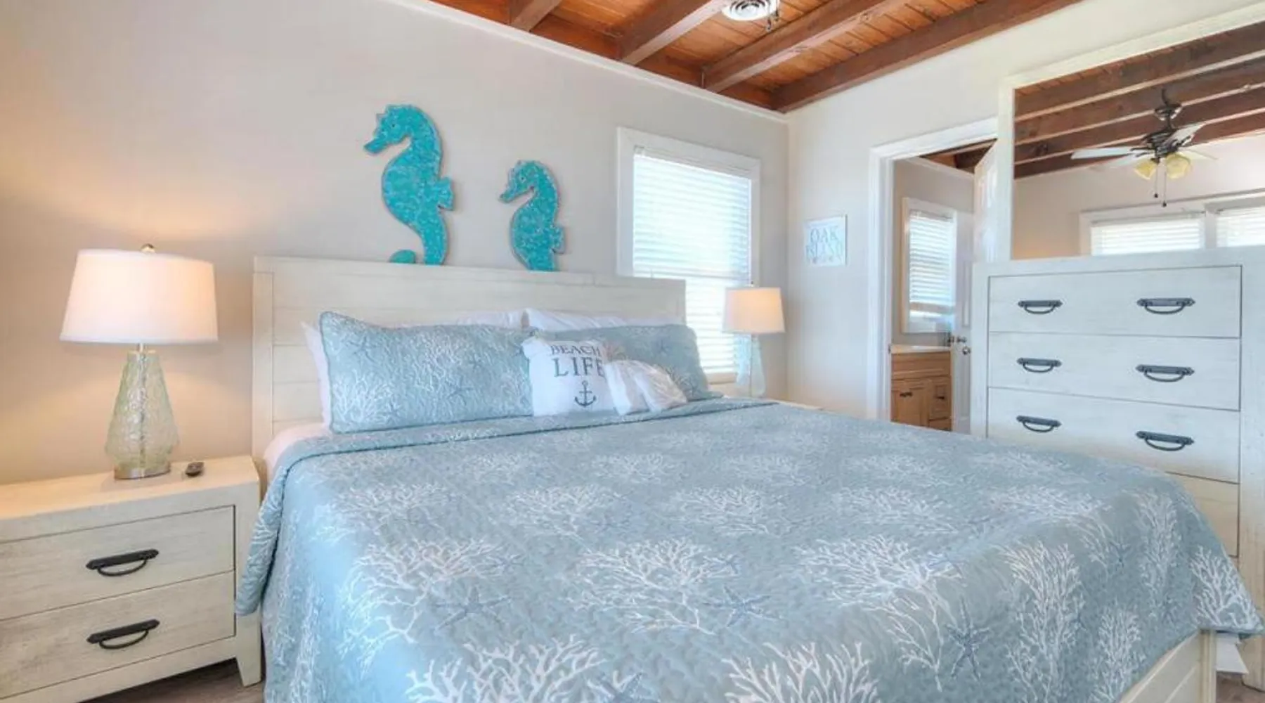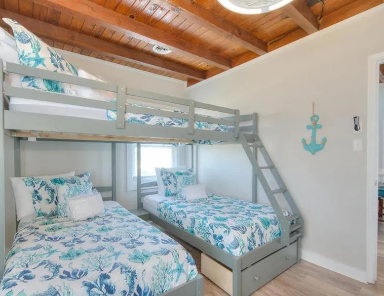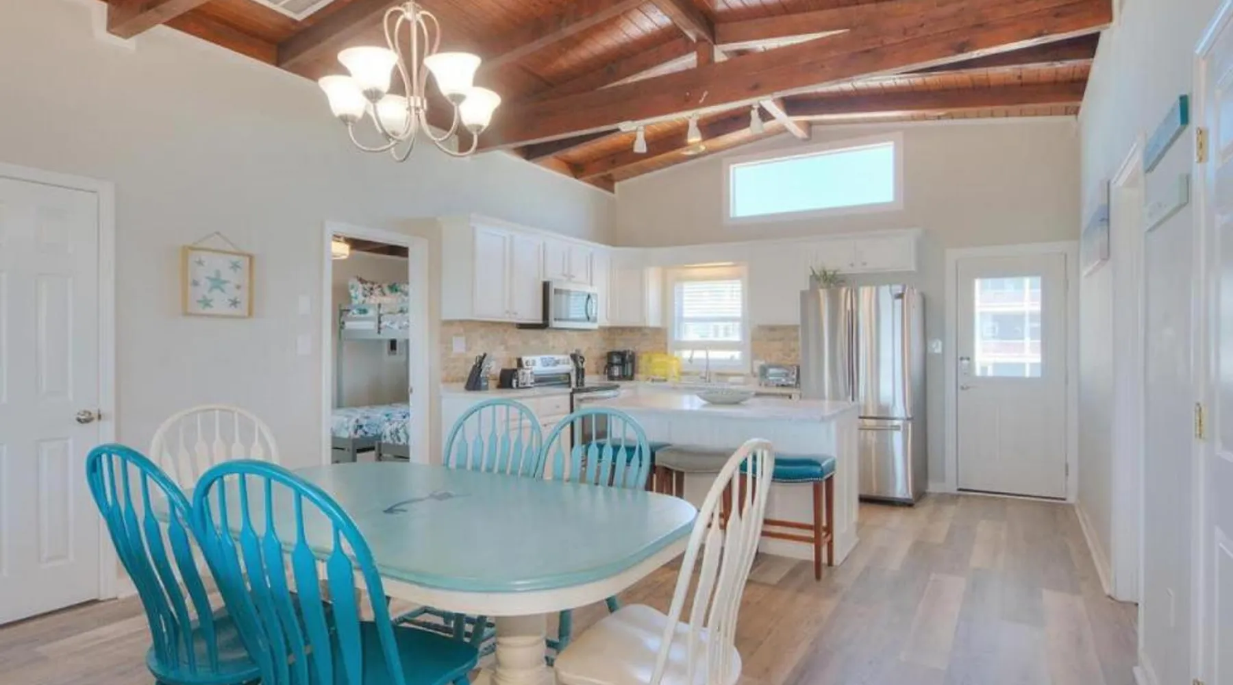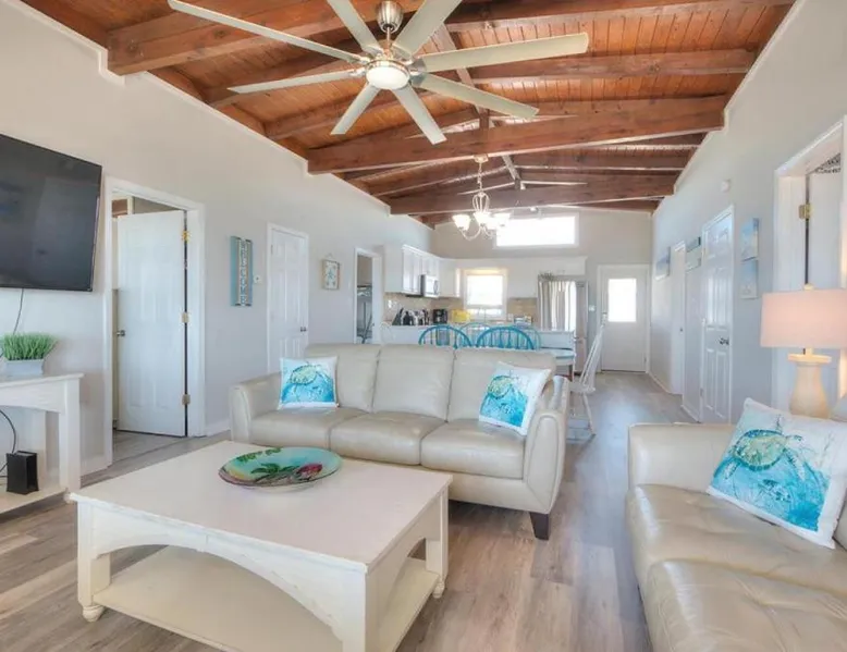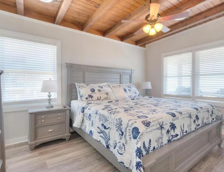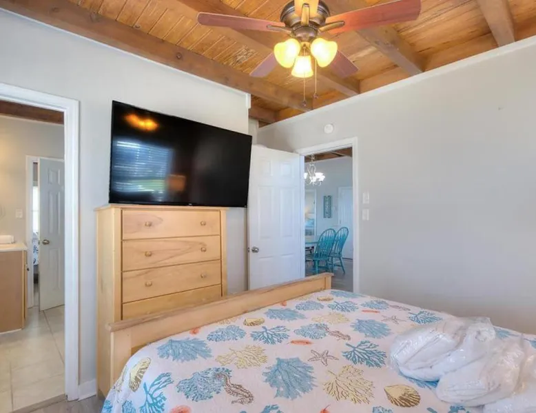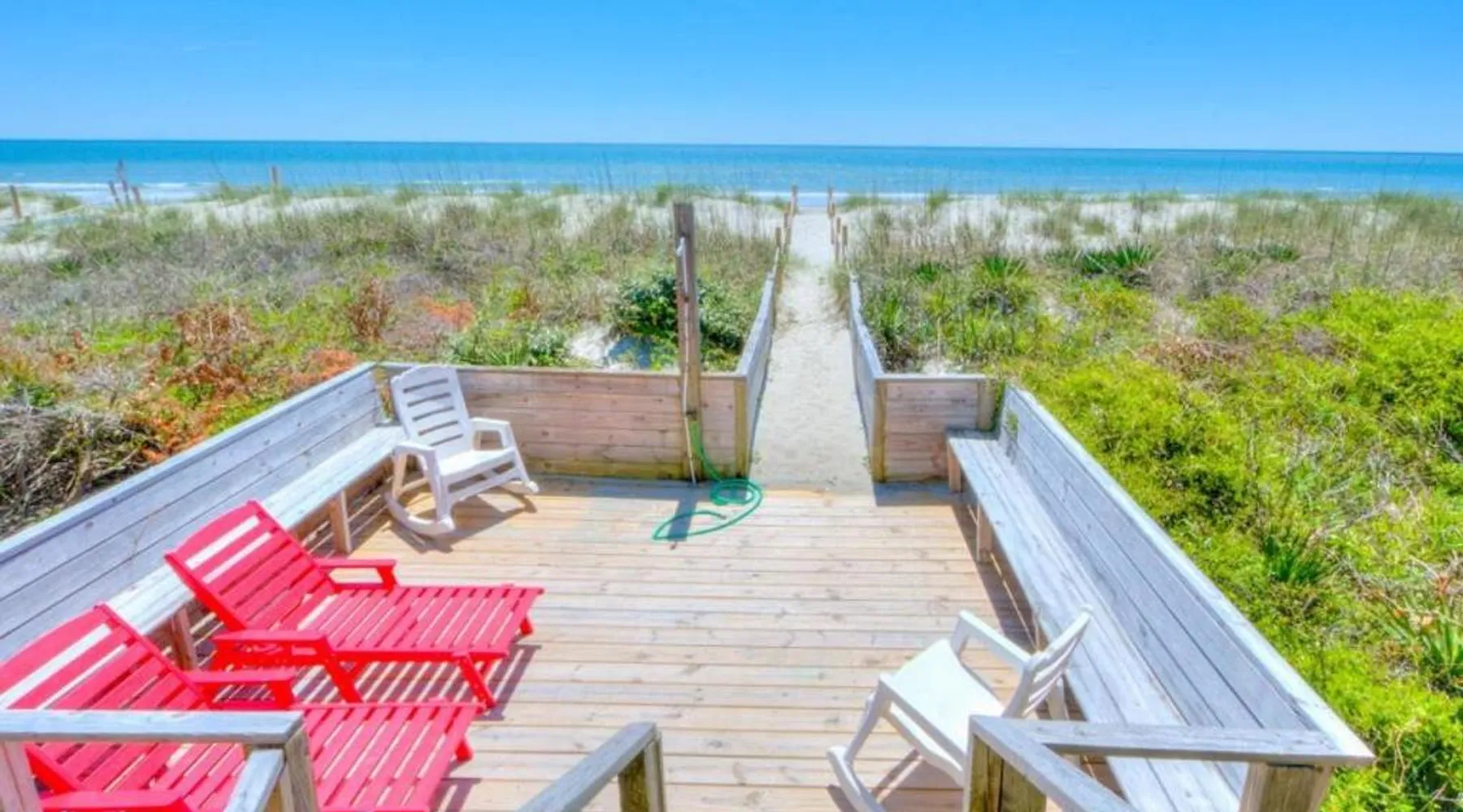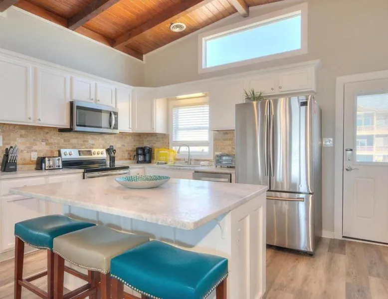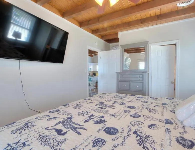 Beachfront Location: Bluewater Point in Oak Island offers direct beachfront access with stunning sea views. Guests can relax on the sandy shores and enjoy the serene ocean scenery. Modern Amenities: The holiday home features free WiFi, a fully equipped kitchen with a dishwasher and oven, a washing machine, and a barbecue. A TV provides entertainment for all guests. Convenient Facilities: Free on-site parking is available, ensuring easy access for all visitors. The property is highly rated by guests for its excellent facilities and comfortable accommodations. Nearby Attractions: Long Beach is just a few steps away, offering additional beachfront activities. Wilmington International Airport is located 37 mi from the property, providing convenient travel options. The holiday home's kitchen, which features a dishwasher and an oven, is available for cooking and storing food. This holiday home has a washing machine, a barbecue, a TV and sea views.