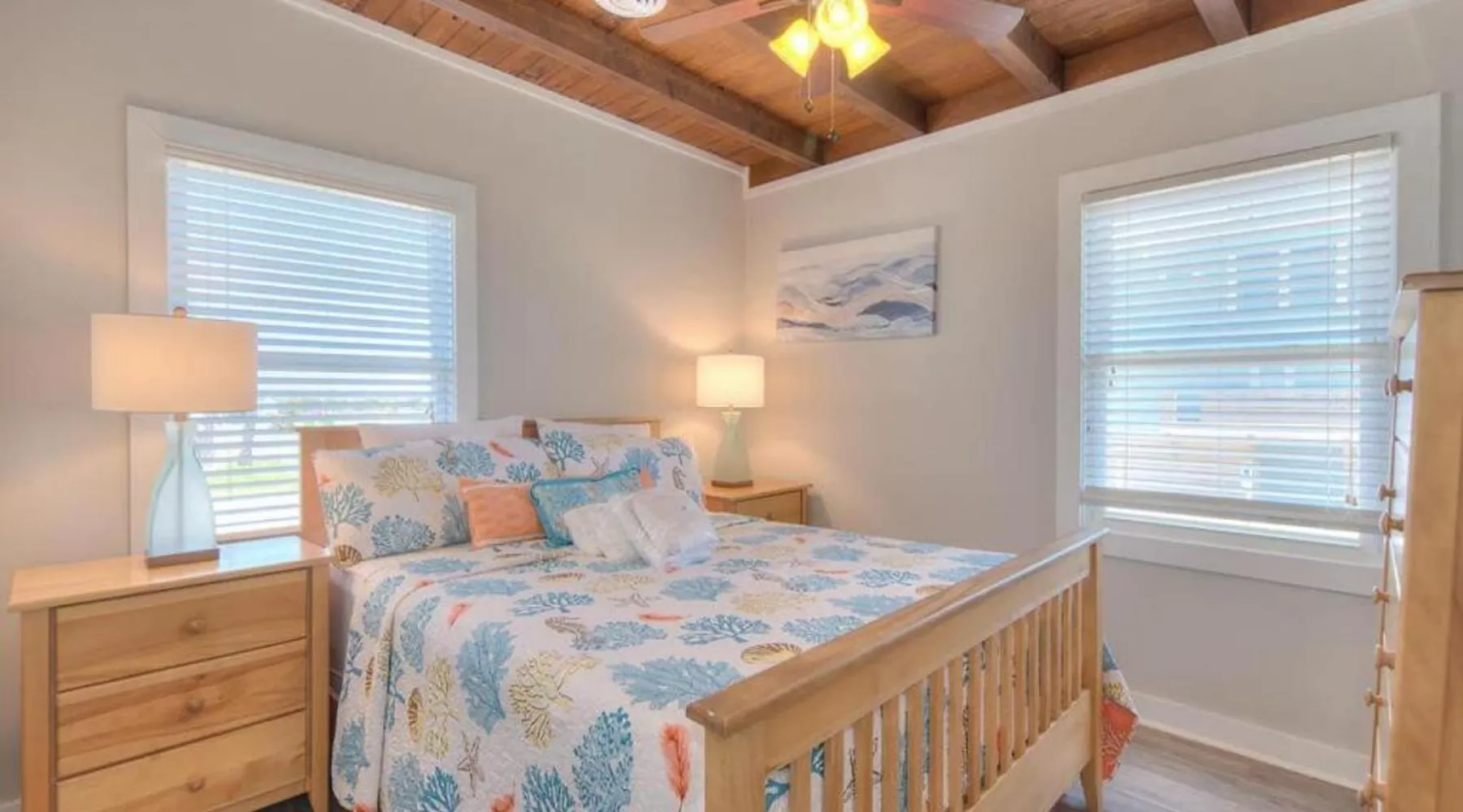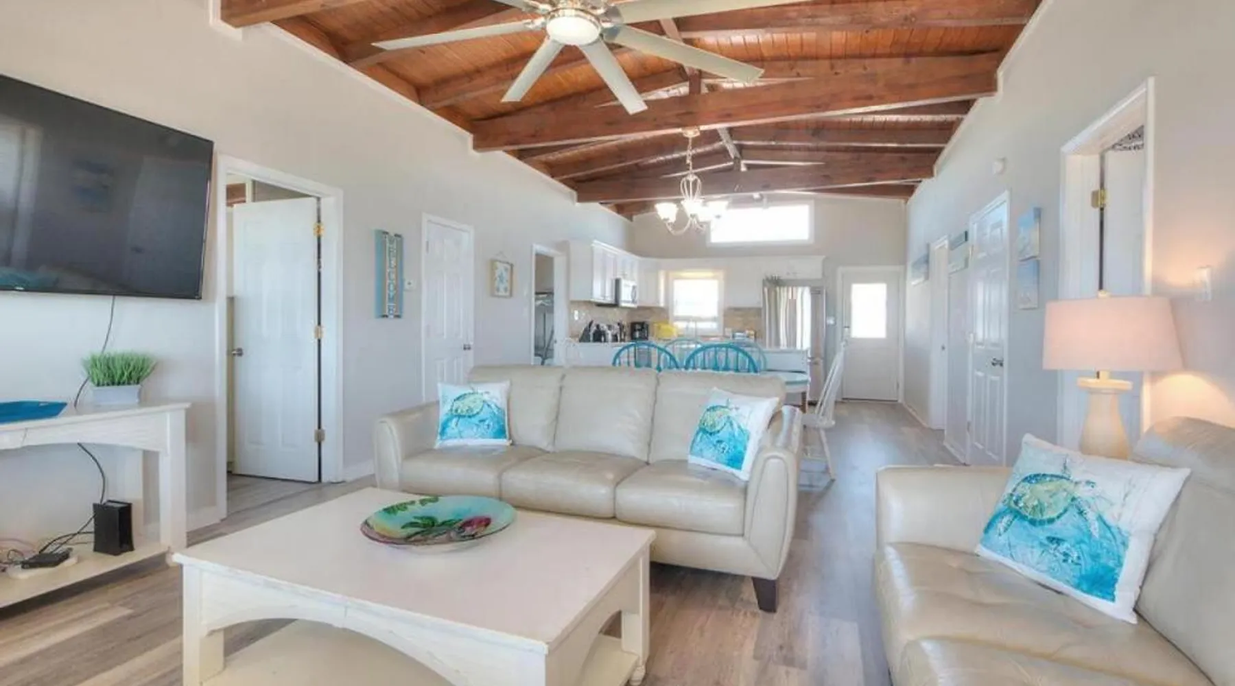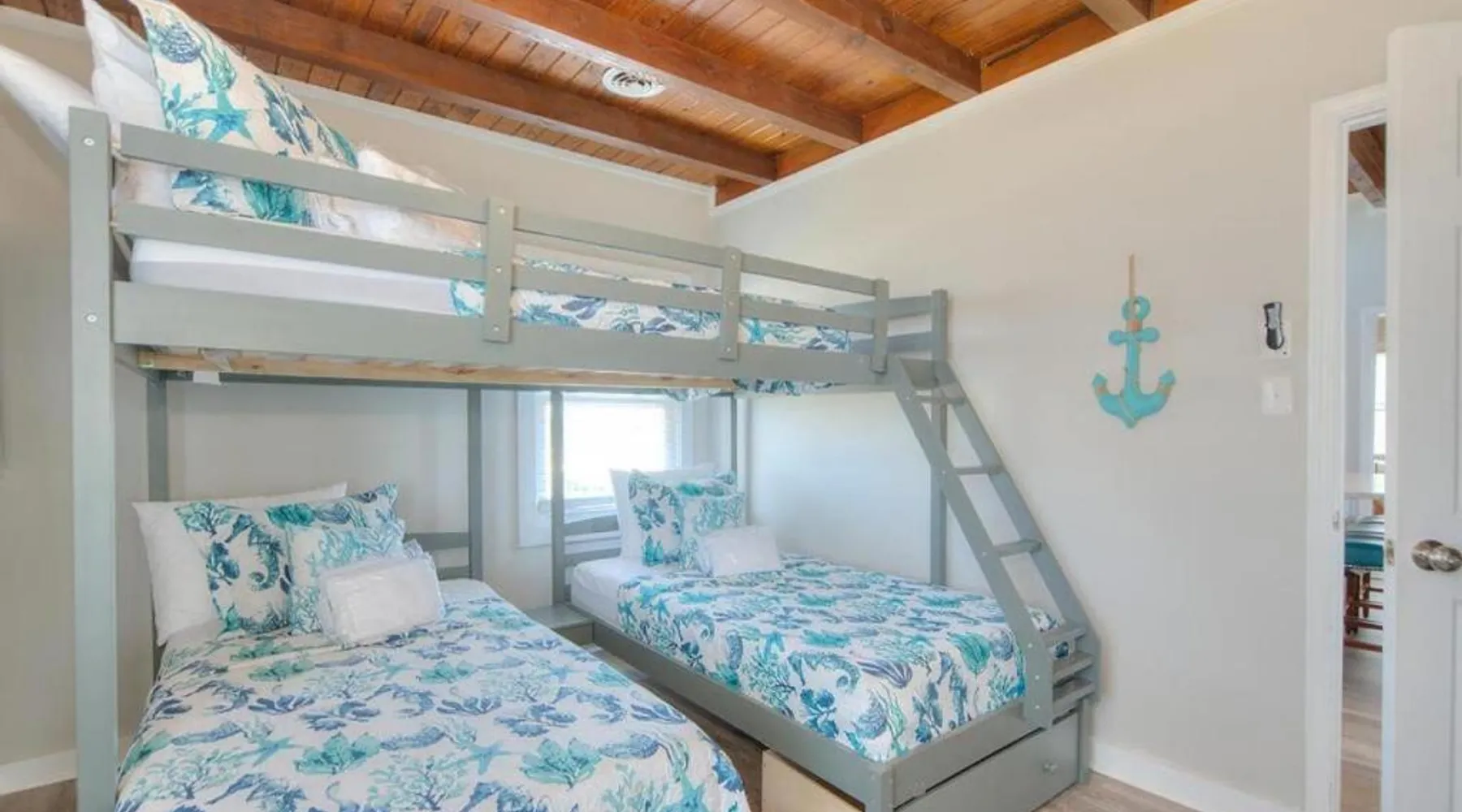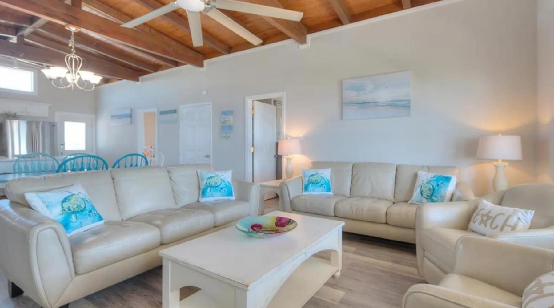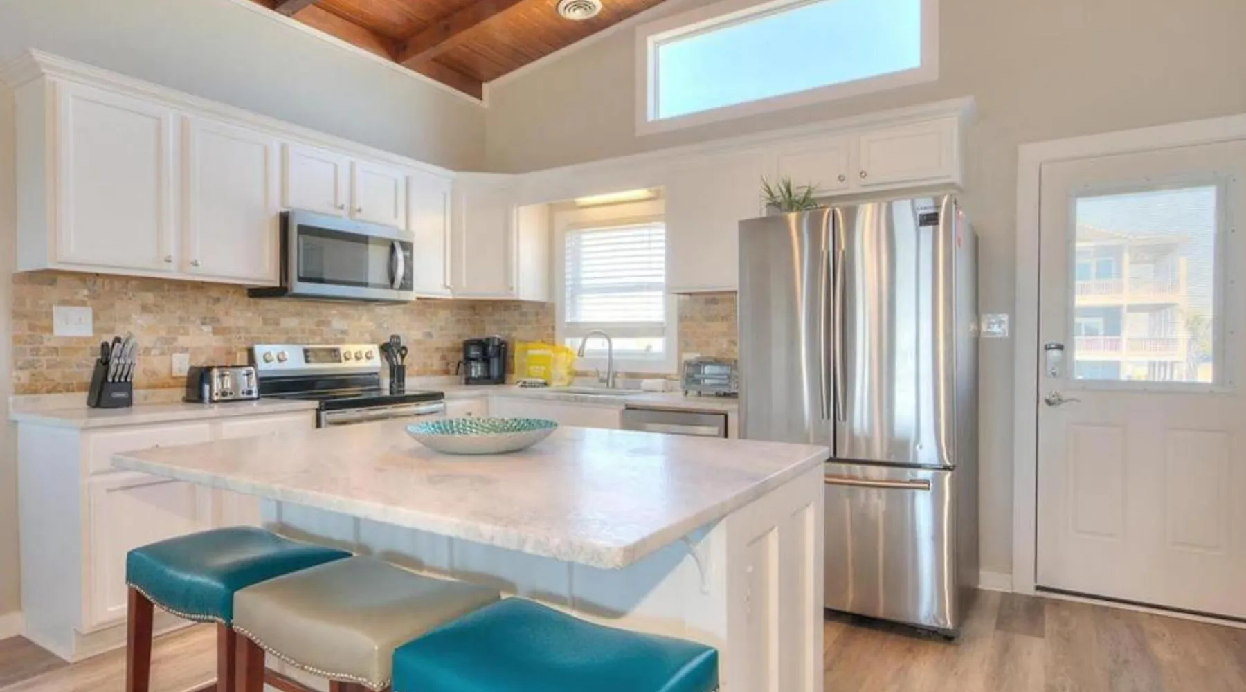Beachfront Location: Bluewater Point in Oak Island offers direct beachfront access with stunning sea views. Guests can relax on the sandy shores and enjoy the serene ocean scenery. Modern Amenities: The holiday home features free WiFi, a fully equipped kitchen with a dishwasher and oven, a washing machine, and a barbecue. A TV provides entertainment for all guests. Convenient Facilities: Free on-site parking is available, ensuring easy access for all visitors. The property is highly rated by guests for its excellent facilities and comfortable accommodations. Nearby Attractions: Long Beach is just a few steps away, offering additional beachfront activities. Wilmington International Airport is located 37 mi from the property, providing convenient travel options. The holiday home's kitchen, which features a dishwasher and an oven, is available for cooking and storing food. This holiday home has a washing machine, a barbecue, a TV and sea views.