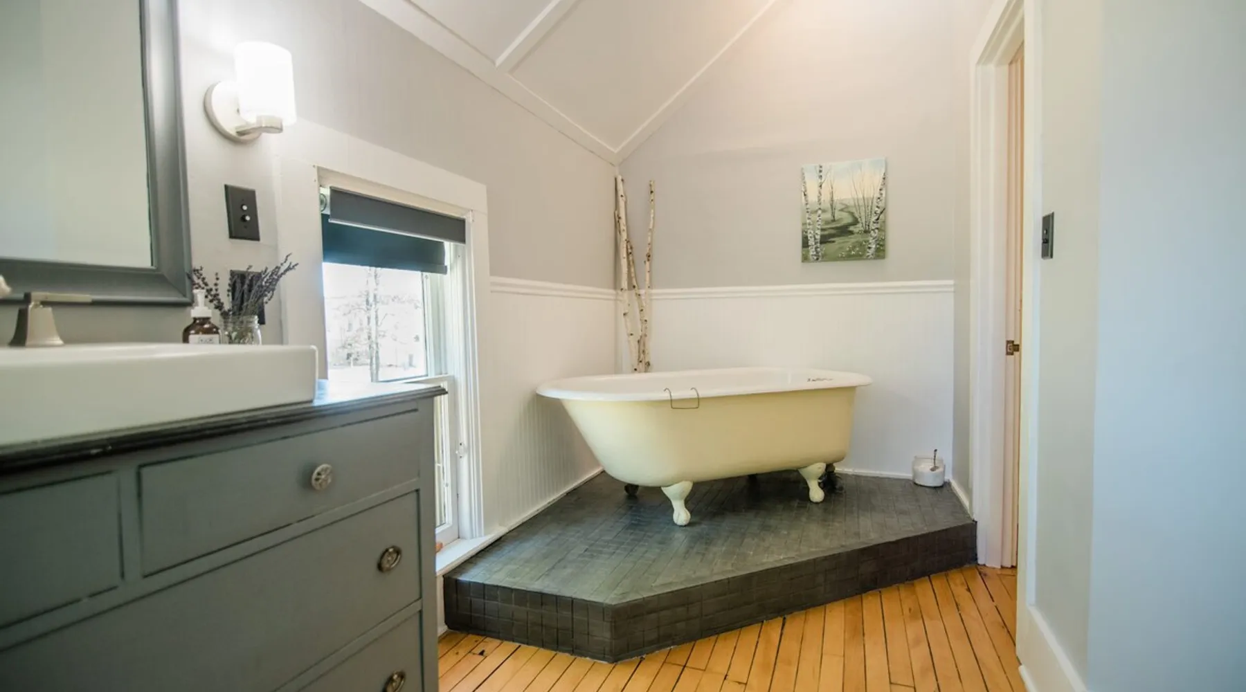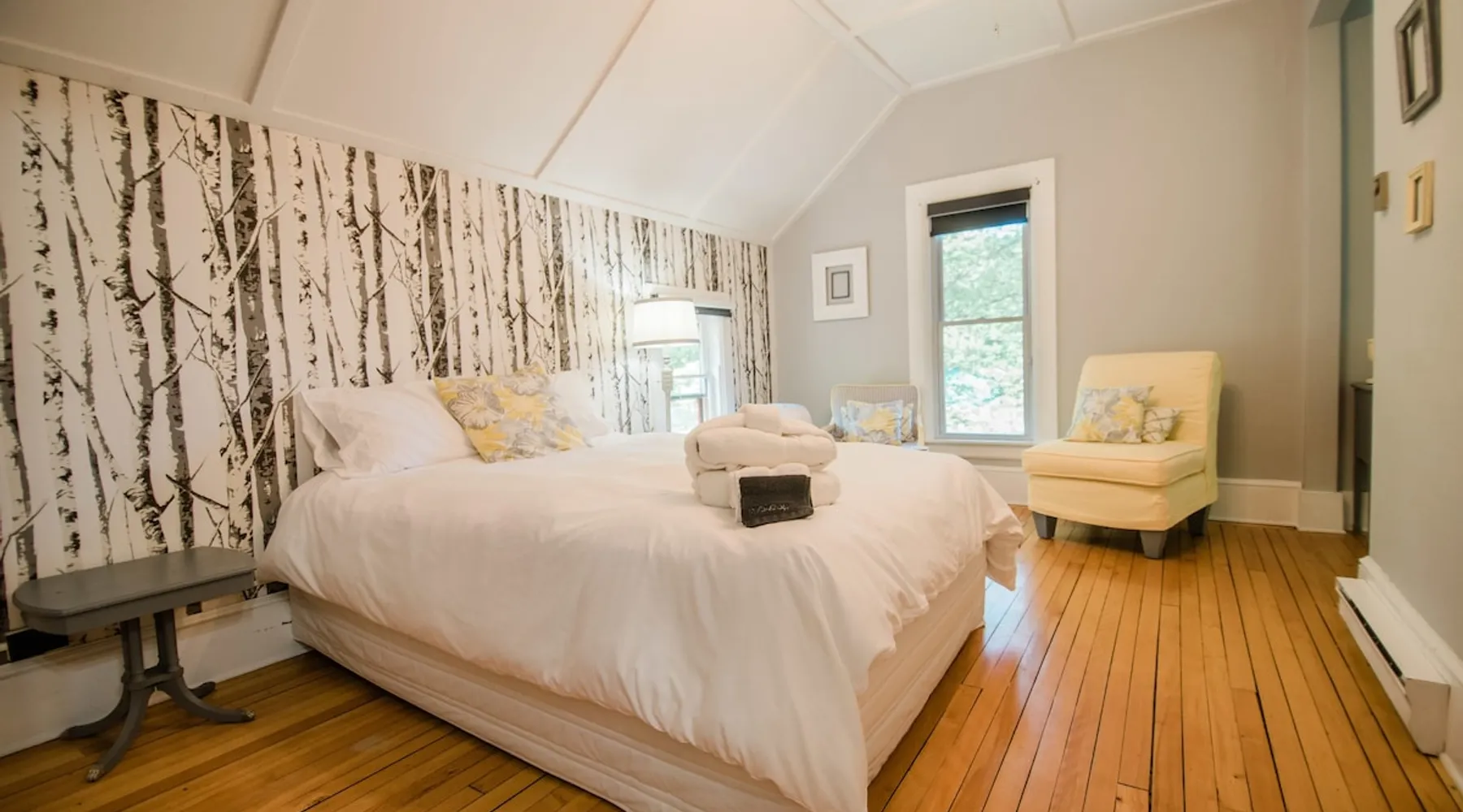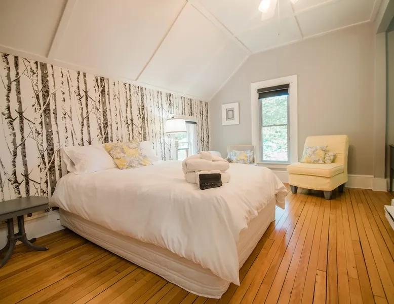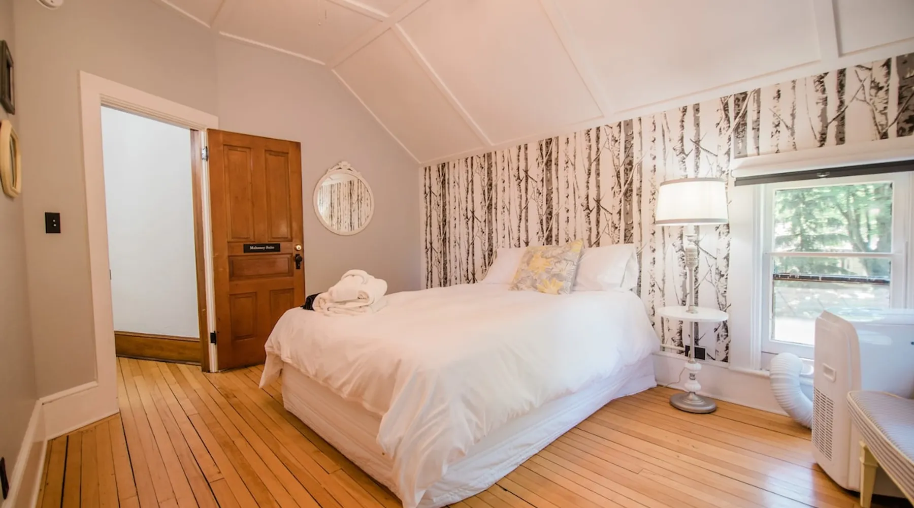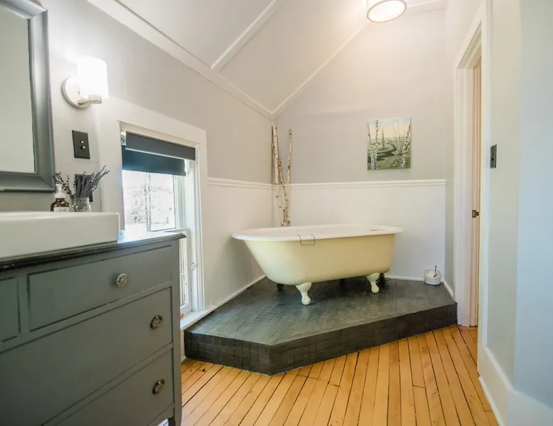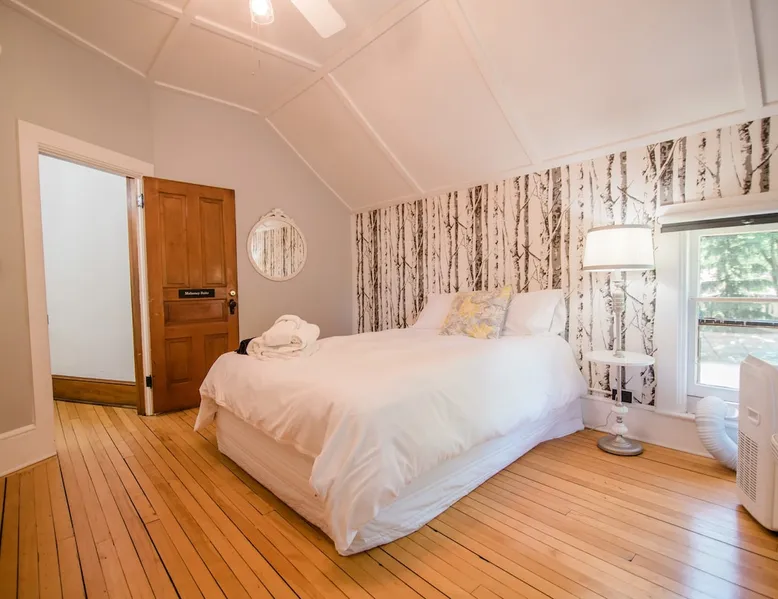 2nd floor | queen | en suite clawfoot tub & shower | spacious The space Welcome to the BW Boutique Hotel, where rustic charm meets modern comfort! Nestled in the heart of Central Lake, our boutique gem offers an unforgettable stay. The Mahaney Suite has thoughtful & varied amenities. It is the largest of all rooms @ the BW. En suite, In-Room Air Conditioning, Professional Hair Dryer, Boutique Bath Products, Robes, Incredible Linens, Complimentary Wireless Internet, Clothing Steamer, Fan, In-Room Heaters & more available upon request. Built in 1895, the BW is a charming mix of old world craftsmanship & modern amenities. Free parking & WiFi are included. Guests may enjoy comfortable common areas including a living room with fireplace or the sitting room with a baby grand piano. Other touches include a large flat screen tv, shared kitchen, & self-service laundry.The grounds of the BW Boutique Hotel provide multiple areas to enjoy quiet time outside including the front porch swing, deck overlooking Knowles Creek which meanders through the property, fire pit, garden area with outdoor dining & charcoal grill. Make your reservation today & explore #NoMi Other things to note breakfast not included or available Our head mouser, Leo the black cat lives on the property & may try to sneak in, but he is not allowed ;-) You are more than welcome to feed him a can of tuna if you'd like. There is an EV charger 2 blocks from BW @ Merrie's Market.