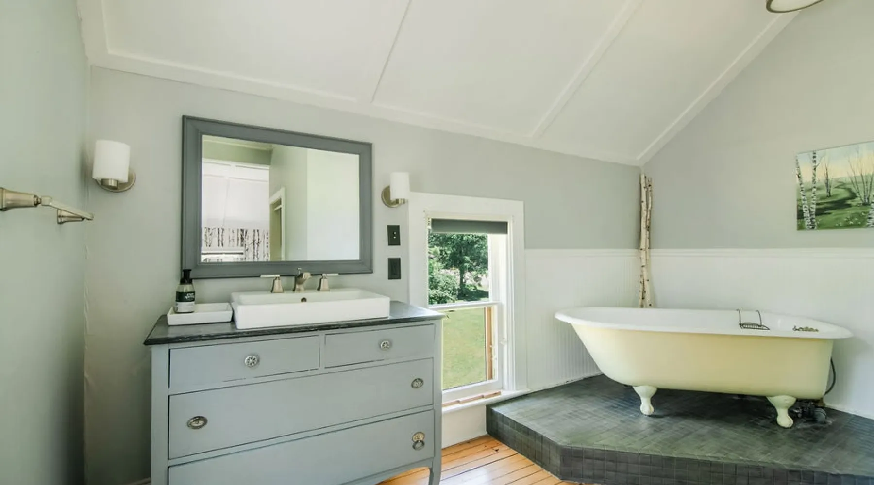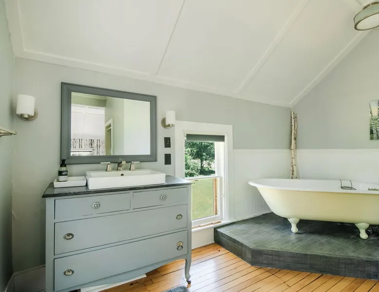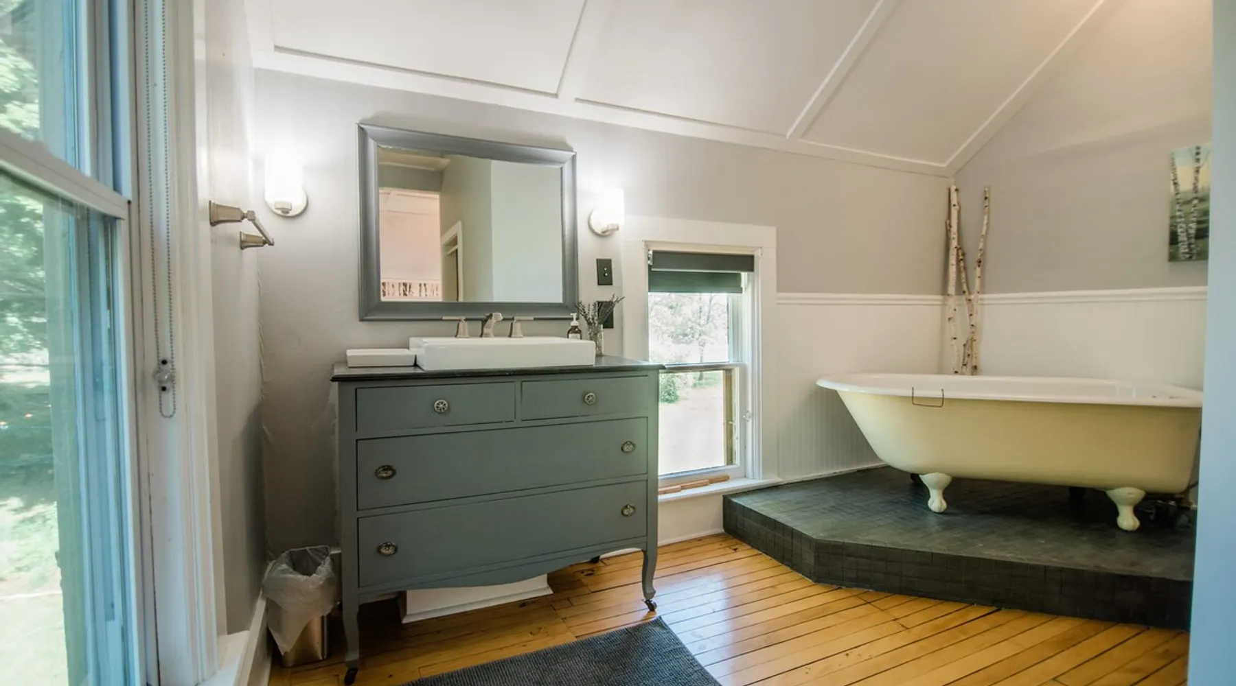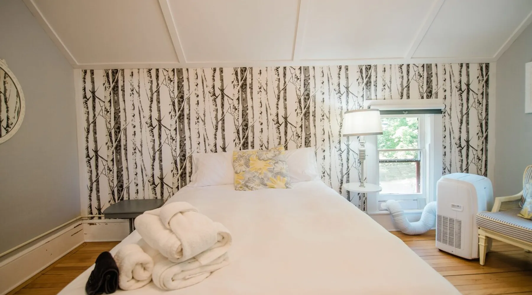 2nd floor | queen | en suite clawfoot tub & shower | spacious The space Welcome to the BW Boutique Hotel, where rustic charm meets modern comfort! Nestled in the heart of Central Lake, our boutique gem offers an unforgettable stay. The Mahaney Suite has thoughtful & varied amenities. It is the largest of all rooms @ the BW. En suite, In-Room Air Conditioning, Professional Hair Dryer, Boutique Bath Products, Robes, Incredible Linens, Complimentary Wireless Internet, Clothing Steamer, Fan, In-Room Heaters & more available upon request. Built in 1895, the BW is a charming mix of old world craftsmanship & modern amenities. Free parking & WiFi are included. Guests may enjoy comfortable common areas including a living room with fireplace or the sitting room with a baby grand piano. Other touches include a large flat screen tv, shared kitchen, & self-service laundry.The grounds of the BW Boutique Hotel provide multiple areas to enjoy quiet time outside including the front porch swing, deck overlooking Knowles Creek which meanders through the property, fire pit, garden area with outdoor dining & charcoal grill. Make your reservation today & explore #NoMi Other things to note breakfast not included or available Our head mouser, Leo the black cat lives on the property & may try to sneak in, but he is not allowed ;-) You are more than welcome to feed him a can of tuna if you'd like. There is an EV charger 2 blocks from BW @ Merrie's Market.
