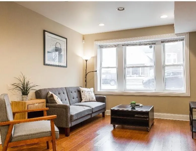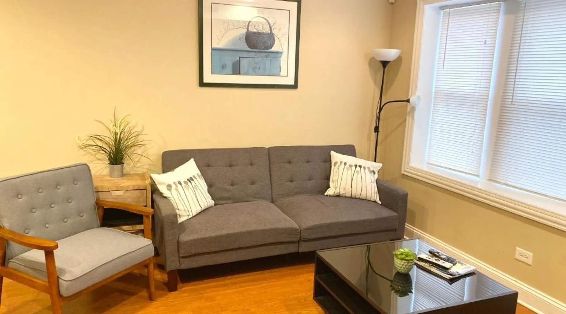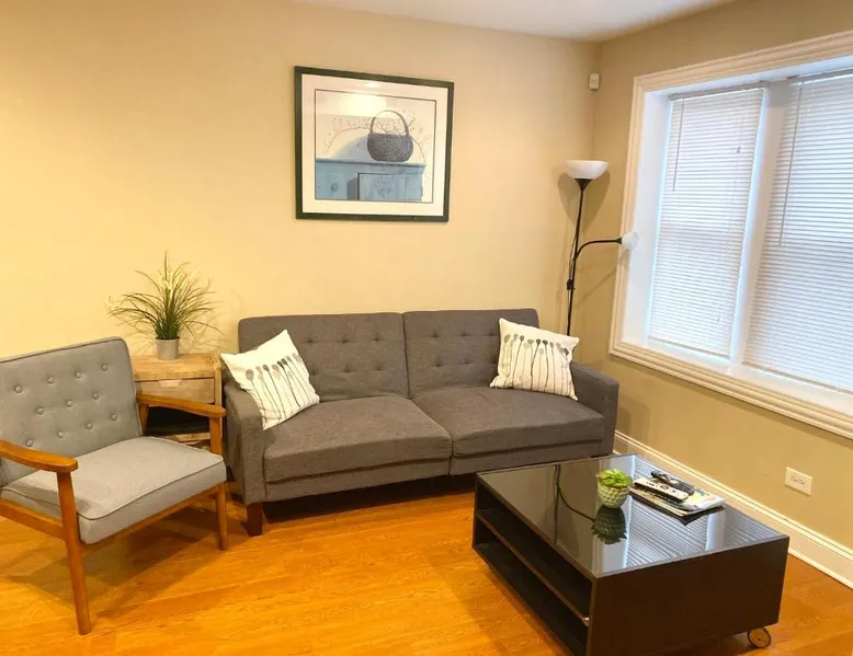 Modern Comforts: Entire Modern 2 Bedroom Apartment in Chicago offers a garden and free WiFi. The apartment includes air-conditioning, streaming services, and a washing machine. A fully equipped kitchen features a refrigerator, oven, stovetop, and microwave. Convenient Facilities: Guests benefit from private check-in and check-out services, family rooms, and paid on-site private parking. The ground-floor unit provides garden views and a quiet street setting. Prime Location: Located 8.1 mi from Chicago O'Hare International Airport, the apartment is near attractions such as United Center (6.8 mi) and Lincoln Park Zoo (6.8 mi). An ice-skating rink is in the surrounding area. Featuring a private entrance, this air-conditioned apartment is consisted of of 1 living room, 2 separate bedrooms and 1 bathroom with a bath and a hairdryer. The fully equipped kitchen features a stovetop, a refrigerator, an oven and a microwave. The apartment offers a washing machine, a tea and coffee maker, a seating area, a flat-screen TV with streaming services, as well as garden views. The unit offers 3 beds.