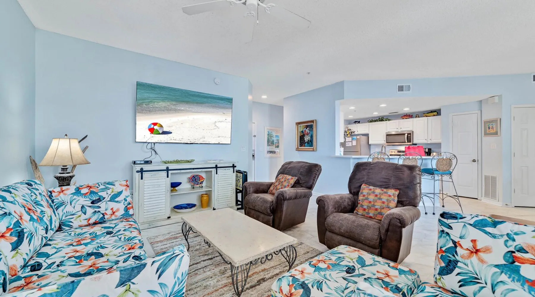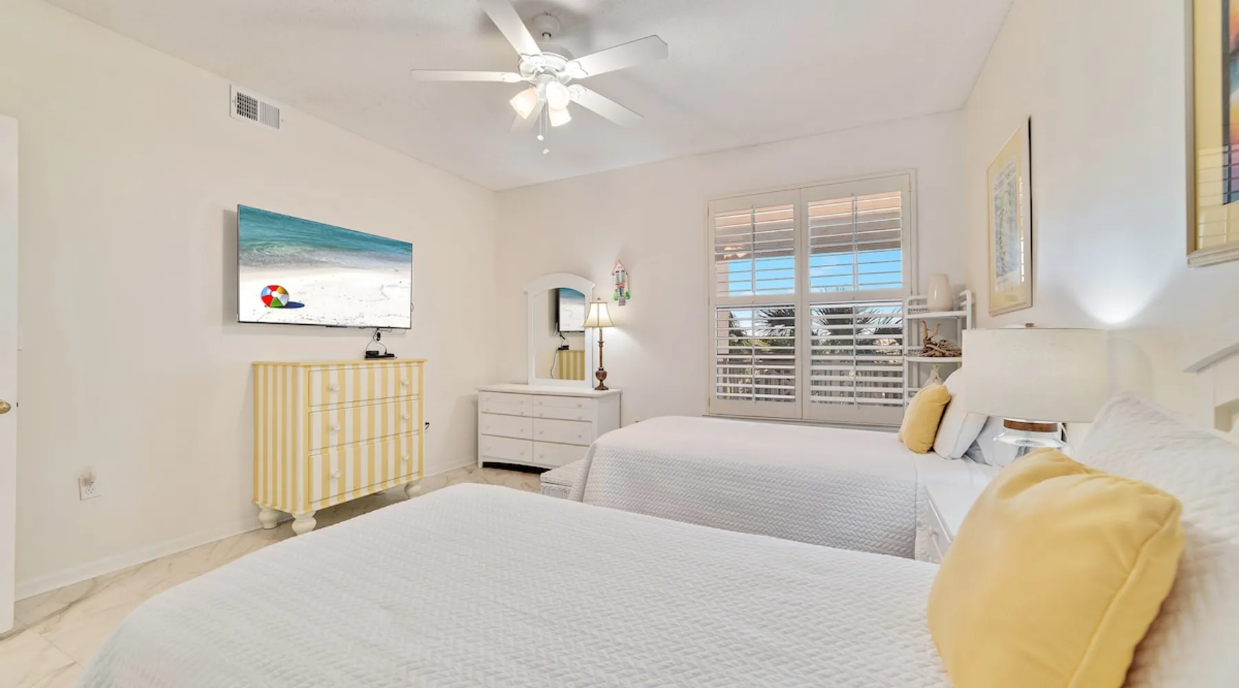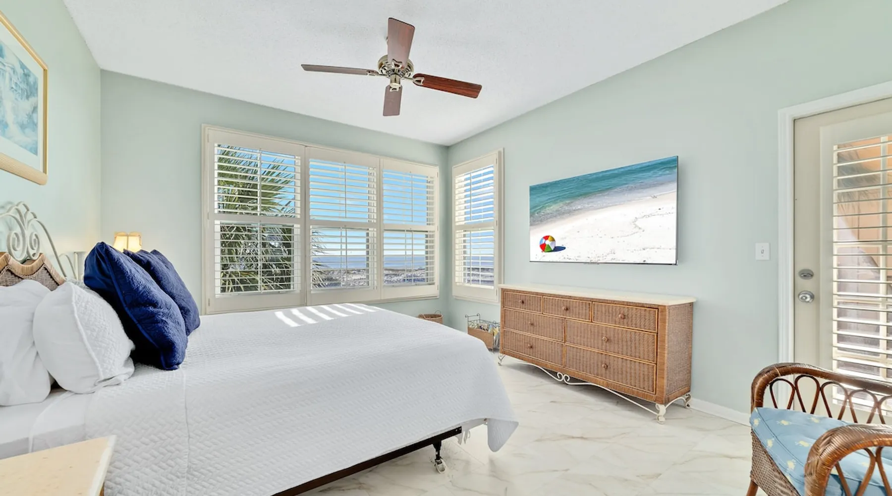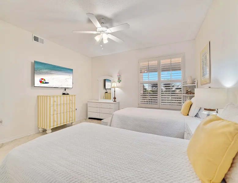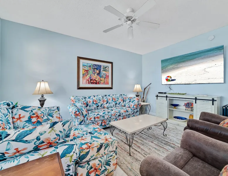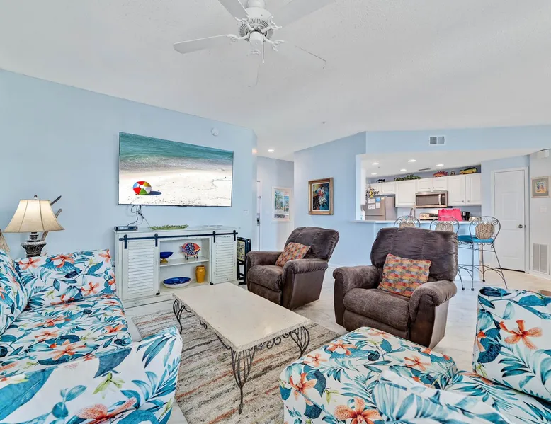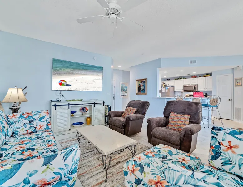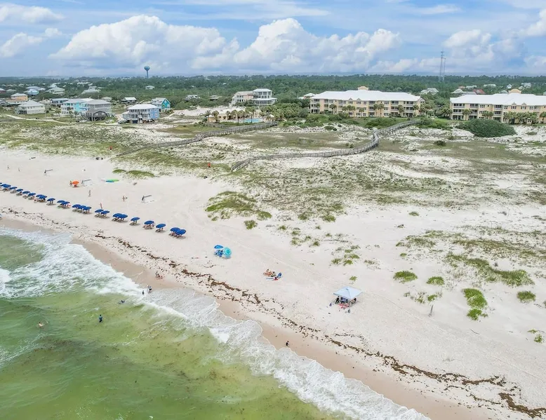 Welcome to Martinique 205 East, a vibrant and cheerful 2-bedroom, 2-bathroom beachfront condo in the exclusive Martinique by the Gulf community. With stunning views of the Gulf of Mexico, cozy interiors, and direct beach access, this colorful escape comfortably sleeps 7 guests and is perfect for families or couples seeking a sunny coastal getaway. The space The Space – Sleeps 7 Comfortably Primary Bedroom: King-size bed with private access to the balcony, flat-screen TV, sitting chair, and an en-suite bathroom featuring a garden tub, walk-in glass shower, and dual-sink vanity. Bedroom 2: Two Twin-size beds, ideal for kids or teens, with dresser storage, a flat-screen TV, and easy access to the hallway guest bathroom. Living Room: Spacious and inviting with tile flooring, two leather recliners, a sleeper sofa, a futon, and a large flat-screen TV—plenty of space to relax after beach adventures. Kitchen: Fully equipped with built-in appliances, ample cabinet space, and essentials like a coffee maker, blender, and toaster. Dining Area: Seats six at the table with three additional stools at the breakfast bar for casual meals. Laundry Closet: Full-sized washer and dryer in the hallway for added convenience. Parking: Two (2) parking passes included with the reservation. Key Features & Amenities Outdoor Pool & Hot Tub – Cool off in the pool, or relax in the hot tub by the beach. Indoor/Outdoor Pool & Hot Tub – Located at the Midpoint (Club du Soleil) on-site, enjoy these amenities at your leisure. Fitness Center & Tennis Court – Exercise in the fitness center or challenge a friend to a game of tennis. Sauna – Relax and unwind in the sauna. Spacious Balcony – Enjoy morning coffee, sunset views, and the coastal breeze. High-Speed WiFi & Smart TVs – Stay connected and entertained. Washer & Dryer – Convenient in-unit laundry for extended stays. Fully Equipped Kitchen – Perfect for home-cooked meals with modern appliances. The Location Martinique 205 East is located at 9350 Marigot Promenade 205E, Gulf Shores, AL, in the peaceful and gated Martinique by the Gulf community. You’re right next to Bon Secour National Wildlife Refuge for tranquil nature walks and unspoiled beaches, while just a short drive from downtown Gulf Shores, where you’ll find great dining, shopping, and local attractions like LuLu’s, The Hangout, and Waterville USA. Book Your Stay Today! Whether you're planning a family beach retreat or a romantic Gulf Coast getaway, Martinique 205 East offers the perfect mix of comfort, views, and tropical charm. Reserve your stay now and experience coastal living in full color! THE BEACHBALL DIFFERENCE: From the Flora-Bama to Fort Morgan, BEACHBALL PROPERTIES is here to help you enjoy your next beach vacation at one of our premier condos, duplexes, or private homes in Gulf Shores, Orange Beach, and Fort Morgan, Alabama. Family-owned and operated, our team works diligently to ensure that your entire Alabama Gulf Coast getaway is hassle-free and fun from reservation to check-out. Every property in our portfolio has been vetted and verified so you can book with confidence. If you have questions prior to your trip, we are happy to assist you. During your stay, a BEACHBALL PROPERTIES representative will be available 24/7 to help with any issues that may arise. Book with us today and get ready to have a BALL at the Beach! BEACHBALL PROPERTIES VACATION RENTAL POLICIES: RENTAL AGREEMENT: Tenant Vacation Rental Agreement must be electronically signed to secure your reservation. Please read carefully. This is a legally binding document. NO SMOKING: All properties are non-smoking. AGE RESTRICTION: Must be at least 25 years older to book a BEACHBALL PROPERTIES vacation rental. A person 25 years or older must be staying at the property for the entire duration of the booking. There will be no refunds issued for anyone booking under false pretenses. CHECK-IN: Check-in is at 4PM. Early check-in is not possible, sorry but no exceptions. CHECK-OUT: Check-out is at 10AM. Check out after 10AM will be charged an additional day. MONTHLY/SNOWBIRD RENTALS: Available from November through February. Call to ask about monthly rates. PARKING PASSES: Two (2) parking passes included in reservation. The cost of parking passes is set by each Homeowner’s Association and is subject to change at any time without notice. U-hauls, trailers, boats, jet skis, buses, etc. are not allowed on property. CANCELLATION POLICY RELAXED: Guests who cancel at least 30 days before check-in shall receive a 100% refund of the amount they have paid. For cancellations between 14 and 30 days before check-in, 50% of the total reservation costs shall be refunded. For cancellations made less than 14 days prior to the beginning date of the reservation, NO REFUNDS will be issued. Refunds shall not be issued for late arrivals, early departures, or inclement weather conditions including hurricanes and named storms. We do offer optional travel insurance which we highly encourage all guests to purchase. WHAT YOU SHOULD BRING: Guests receive a “starter pack” of laundry detergent, dish washing detergent, one trash bag per trash can, and travel-sized shampoo, conditioner, and soap per bathroom. Starter supplies are not intended to last for the duration of your stay. Linens are furnished but please bring your own beach towels. RATES: Rates subject to change up until time of booking. Additional fees and taxes may apply. PROFESSIONALLY HOSTED BY: BEACHBALL PROPERTIES, located at 22989 Perdido Beach Blvd. Orange Beach, AL 36561. Come Have a Ball at the Beach!