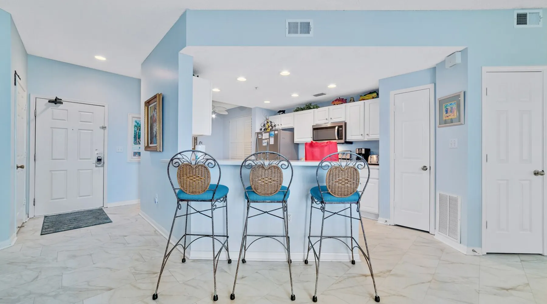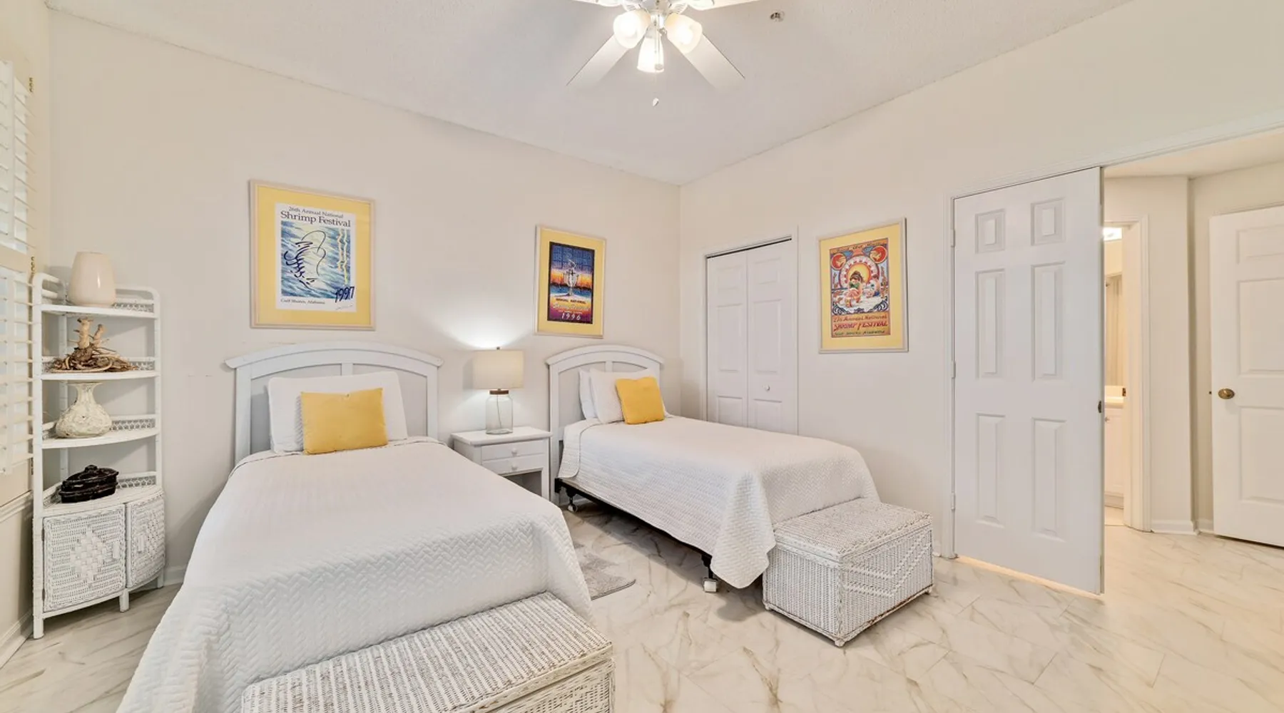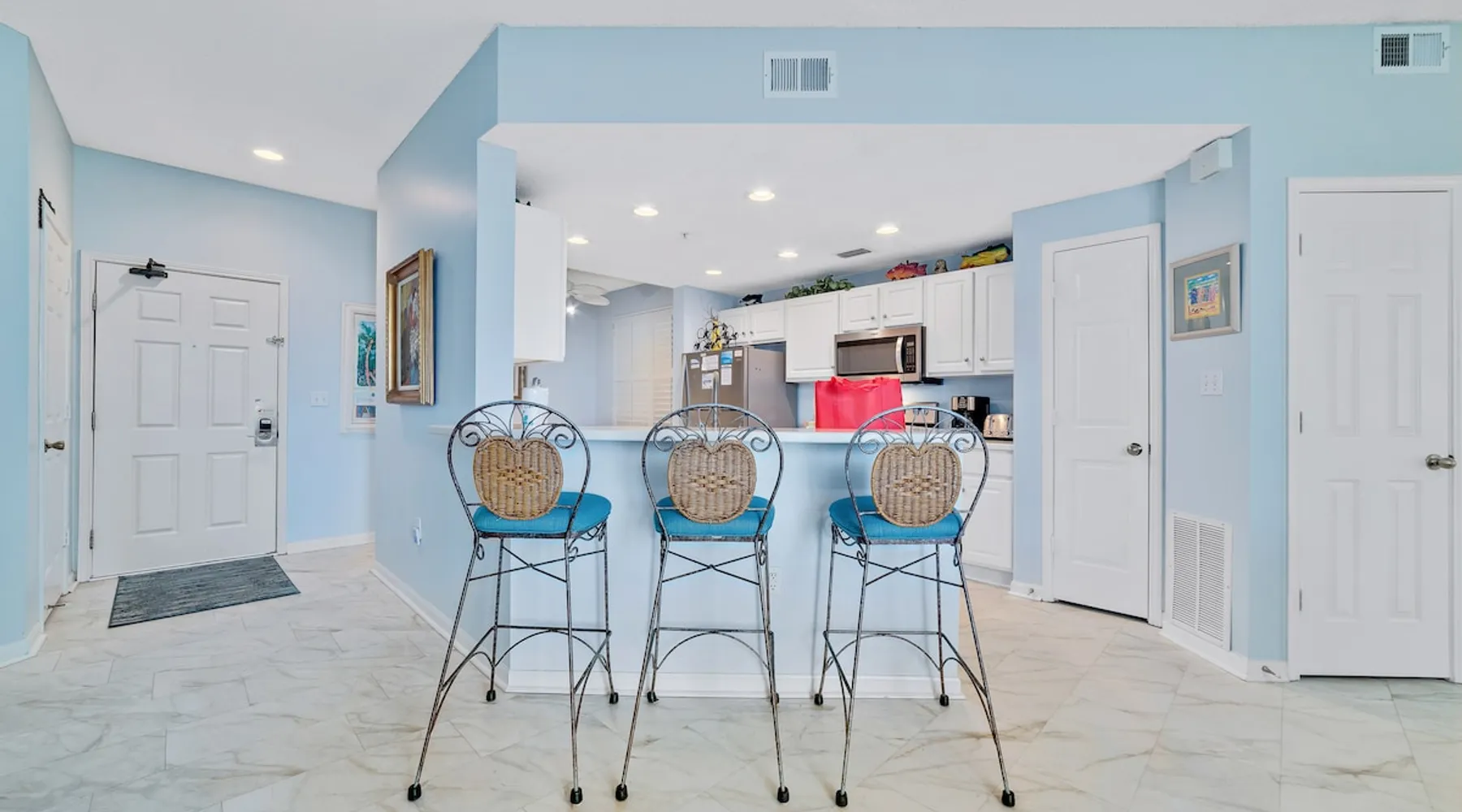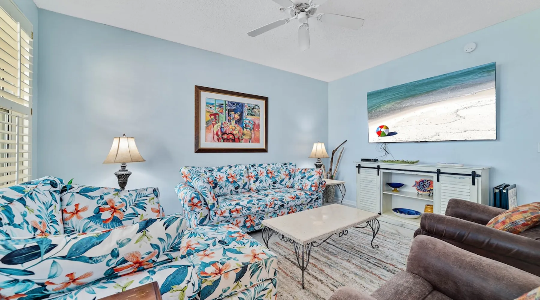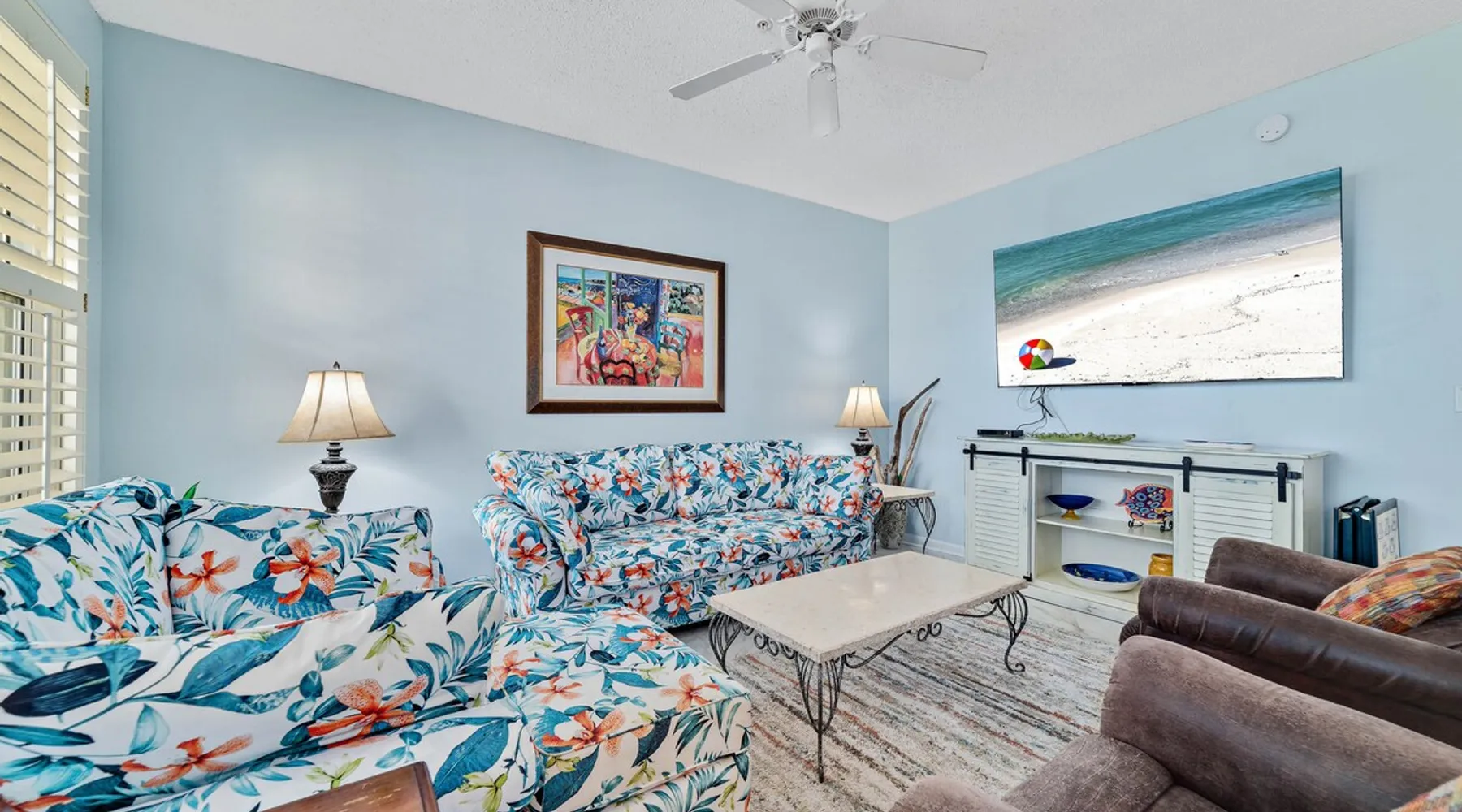 Welcome to Martinique 205 East, a vibrant and cheerful 2-bedroom, 2-bathroom beachfront condo in the exclusive Martinique by the Gulf community. With stunning views of the Gulf of Mexico, cozy interiors, and direct beach access, this colorful escape comfortably sleeps 7 guests and is perfect for families or couples seeking a sunny coastal getaway. The space The Space – Sleeps 7 Comfortably Primary Bedroom: King-size bed with private access to the balcony, flat-screen TV, sitting chair, and an en-suite bathroom featuring a garden tub, walk-in glass shower, and dual-sink vanity. Bedroom 2: Two Twin-size beds, ideal for kids or teens, with dresser storage, a flat-screen TV, and easy access to the hallway guest bathroom. Living Room: Spacious and inviting with tile flooring, two leather recliners, a sleeper sofa, a futon, and a large flat-screen TV—plenty of space to relax after beach adventures. Kitchen: Fully equipped with built-in appliances, ample cabinet space, and essentials like a coffee maker, blender, and toaster. Dining Area: Seats six at the table with three additional stools at the breakfast bar for casual meals. Laundry Closet: Full-sized washer and dryer in the hallway for added convenience. Parking: Two (2) parking passes included with the reservation. Key Features & Amenities Outdoor Pool & Hot Tub – Cool off in the pool, or relax in the hot tub by the beach. Indoor/Outdoor Pool & Hot Tub – Located at the Midpoint (Club du Soleil) on-site, enjoy these amenities at your leisure. Fitness Center & Tennis Court – Exercise in the fitness center or challenge a friend to a game of tennis. Sauna – Relax and unwind in the sauna. Spacious Balcony – Enjoy morning coffee, sunset views, and the coastal breeze. High-Speed WiFi & Smart TVs – Stay connected and entertained. Washer & Dryer – Convenient in-unit laundry for extended stays. Fully Equipped Kitchen – Perfect for home-cooked meals with modern appliances. The Location Martinique 205 East is located at 9350 Marigot Promenade 205E, Gulf Shores, AL, in the peaceful and gated Martinique by the Gulf community. You’re right next to Bon Secour National Wildlife Refuge for tranquil nature walks and unspoiled beaches, while just a short drive from downtown Gulf Shores, where you’ll find great dining, shopping, and local attractions like LuLu’s, The Hangout, and Waterville USA. Book Your Stay Today! Whether you're planning a family beach retreat or a romantic Gulf Coast getaway, Martinique 205 East offers the perfect mix of comfort, views, and tropical charm. Reserve your stay now and experience coastal living in full color! THE BEACHBALL DIFFERENCE: From the Flora-Bama to Fort Morgan, BEACHBALL PROPERTIES is here to help you enjoy your next beach vacation at one of our premier condos, duplexes, or private homes in Gulf Shores, Orange Beach, and Fort Morgan, Alabama. Family-owned and operated, our team works diligently to ensure that your entire Alabama Gulf Coast getaway is hassle-free and fun from reservation to check-out. Every property in our portfolio has been vetted and verified so you can book with confidence. If you have questions prior to your trip, we are happy to assist you. During your stay, a BEACHBALL PROPERTIES representative will be available 24/7 to help with any issues that may arise. Book with us today and get ready to have a BALL at the Beach! BEACHBALL PROPERTIES VACATION RENTAL POLICIES: RENTAL AGREEMENT: Tenant Vacation Rental Agreement must be electronically signed to secure your reservation. Please read carefully. This is a legally binding document. NO SMOKING: All properties are non-smoking. AGE RESTRICTION: Must be at least 25 years older to book a BEACHBALL PROPERTIES vacation rental. A person 25 years or older must be staying at the property for the entire duration of the booking. There will be no refunds issued for anyone booking under false pretenses. CHECK-IN: Check-in is at 4PM. Early check-in is not possible, sorry but no exceptions. CHECK-OUT: Check-out is at 10AM. Check out after 10AM will be charged an additional day. MONTHLY/SNOWBIRD RENTALS: Available from November through February. Call to ask about monthly rates. PARKING PASSES: Two (2) parking passes included in reservation. The cost of parking passes is set by each Homeowner’s Association and is subject to change at any time without notice. U-hauls, trailers, boats, jet skis, buses, etc. are not allowed on property. CANCELLATION POLICY RELAXED: Guests who cancel at least 30 days before check-in shall receive a 100% refund of the amount they have paid. For cancellations between 14 and 30 days before check-in, 50% of the total reservation costs shall be refunded. For cancellations made less than 14 days prior to the beginning date of the reservation, NO REFUNDS will be issued. Refunds shall not be issued for late arrivals, early departures, or inclement weather conditions including hurricanes and named storms. We do offer optional travel insurance which we highly encourage all guests to purchase. WHAT YOU SHOULD BRING: Guests receive a “starter pack” of laundry detergent, dish washing detergent, one trash bag per trash can, and travel-sized shampoo, conditioner, and soap per bathroom. Starter supplies are not intended to last for the duration of your stay. Linens are furnished but please bring your own beach towels. RATES: Rates subject to change up until time of booking. Additional fees and taxes may apply. PROFESSIONALLY HOSTED BY: BEACHBALL PROPERTIES, located at 22989 Perdido Beach Blvd. Orange Beach, AL 36561. Come Have a Ball at the Beach!