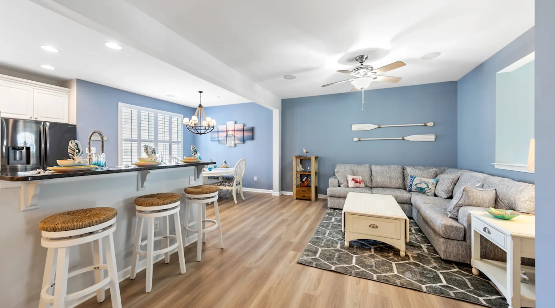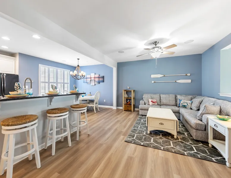 JUST OVER 2 MILES TO BETHANY BEACH! Airbnb service fee paid by host! Your family will be close to everything when you stay at this centrally located home. Linens and Bath Towels Included. The space This Coastal themed home will provide the perfect spot to relax after a day at the beach or exploring the local area. Last Pool Day - The outside pool will be closed for the season beginning 9-15-25. Guest access Guests are provided a secure door code by email 2 -5 days prior to arrival. The code changes with each guest. The entire homes is available for use except one storage room off the garage. Other things to note Fresh towels and linens are included with your stay. Daily use items (paper towels, toilet paper, soap, shampoo, etc.) are NOT provided. All the TVs are streaming only. Guests need to have their user name and password for their own accounts. Applications (Netflix, Prime, HULU, YouTube TV, etc.) are available to log onto with your account. Please be sure to log off prior to your departure so the next guest does not have access to you account. The community has great amenities available for an additional fee. These amenities include a large clubhouse, indoor/outdoor pools, grills, kayak launch, game room, fitness center, hot tub, children's playground, tennis and pickle ball courts. The outdoor pool is open between 5-24-25 thru 9-15-25. On very rare occasions, the pools may be closed for repairs and there is no guarantee the pools will be open during your stay. The fee schedule for the community amenities is as follows: Per person rental fee for age 6 and older $6.50 per day per person. Minimum of 3 days. Must be sequential days. A $50 fee (per FOB - 2 total and/or garage remote -1 total) will charged to the guest if the FOB/Remote is lost/not returned. A rental agreement (which will include the BAYSIDE AT BETHANY LAKES RULES AND REGULATIONS) will be sent by email (a link to e-sign the agreement) after booking and must be signed within 10 days. The form will take about 5 minutes to complete.