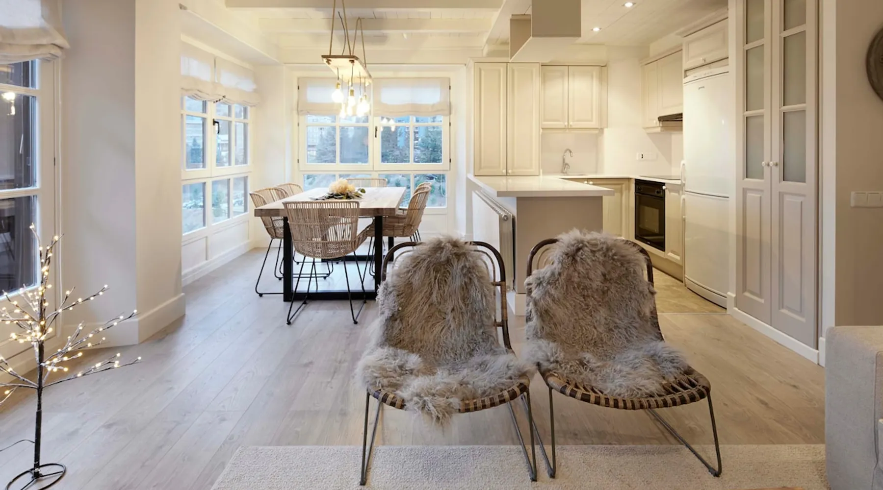 The Val de Ruda Luxe 49 apartment is located in the exclusive private complex known as “Urbanización Ruda”, right at the foot of the slopes at the 1,500-meter level in Baqueira. Access to the ski slopes is unbeatable: from the apartment, you can take the lift down to the garage, where the heated ski storage is located, and from there, another lift takes you directly to the exit of the new gondola lift. The space Val de Ruda Luxe 49 is the ideal accommodation for a large family or group of friends looking for comfort and an unbeatable location. It offers a spacious living-dining room with an open-plan kitchen, three cozy bedrooms, and two modern, fully equipped bathrooms. Upon entering the apartment, you’ll find the generous main living area. The lounge features a comfortable L-shaped sofa facing the fireplace and a Smart TV. Next to the large windows and the balcony exit is the dining area, along with the modern open-plan kitchen, fully equipped with high-end appliances, complete kitchenware, and a practical breakfast bar. The spacious master bedroom at Val de Ruda Luxe 49 includes a large double bed and an en-suite bathroom with a shower. The other two bedrooms each offer two single bunk beds and share the apartment’s second bathroom, which is equipped with a bathtub. The apartment also offers Wi-Fi, two parking spaces, and two heated ski storage units – all included in the rental price. You’ll find more apartments managed by FeelFree in the best locations of the valley, ideal for enjoying the Baqueira Beret ski resort, as well as the mountains and hiking trails of the Aran Valley. Tourist Rental Registration Number: ESFCTU0000250090003589360000000000000 HUTVA-000650-308 Other things to note To access your apartment, it is mandatory to complete the online check-in with the details of all travelers over 14 years old and provide a credit card to the host. Registration Details Catalonia - Regional registration number HUTVA-000650