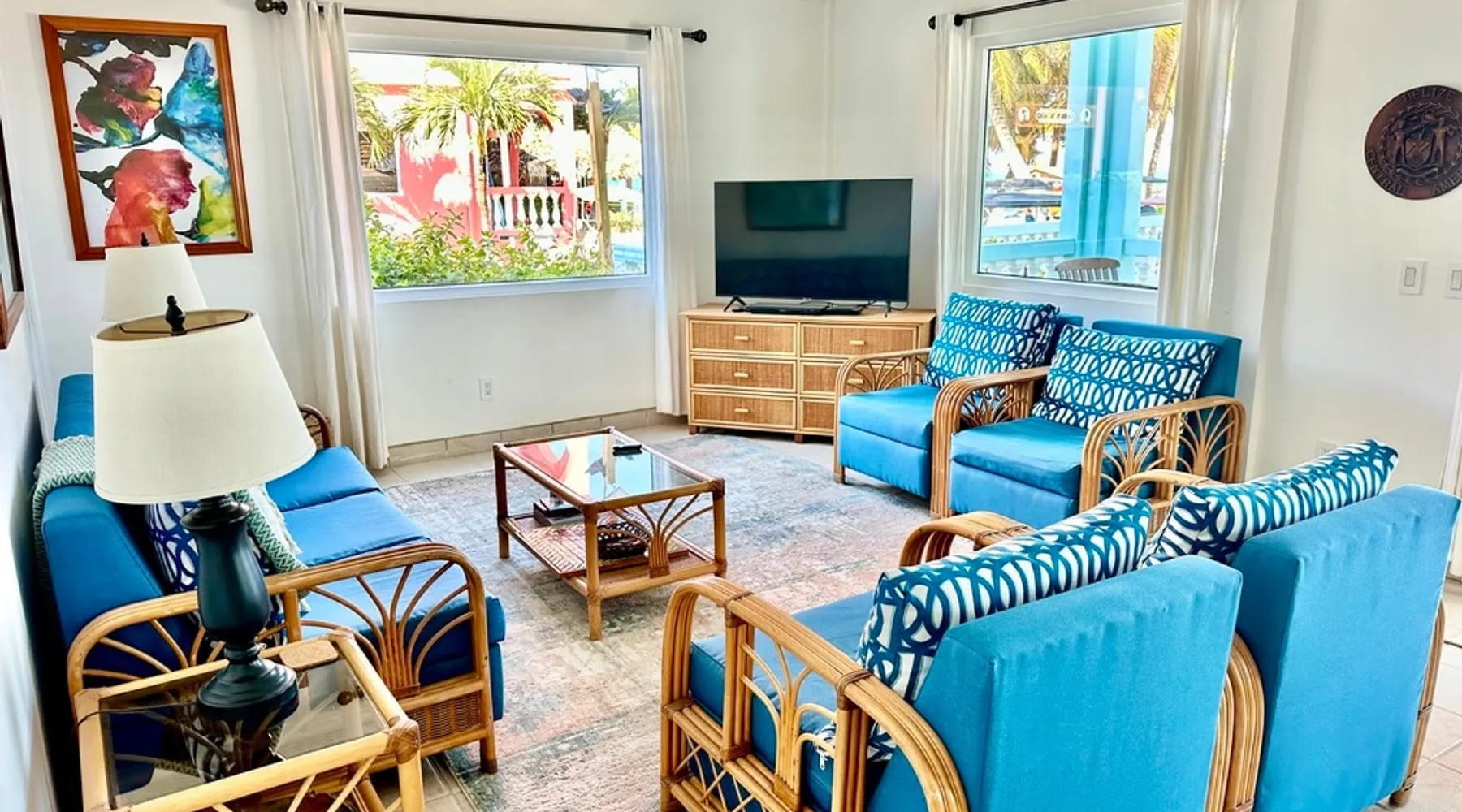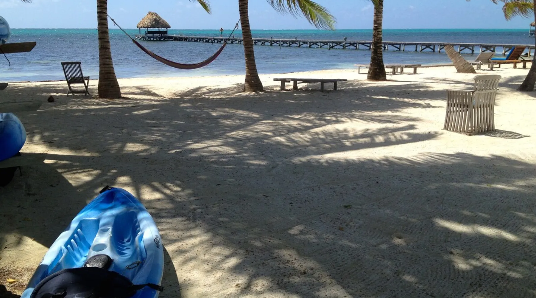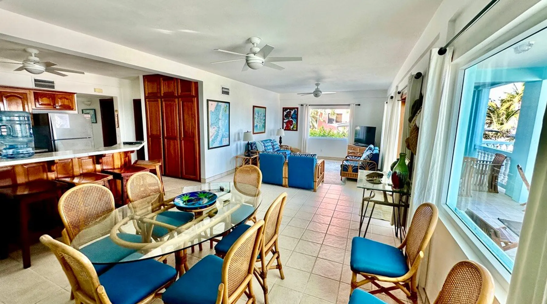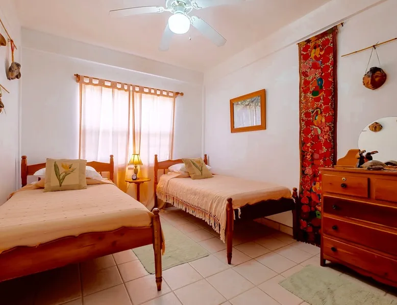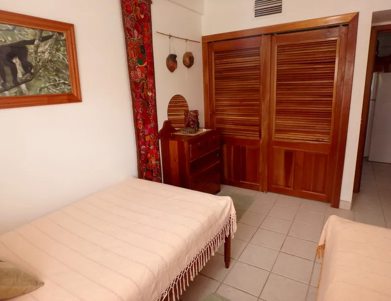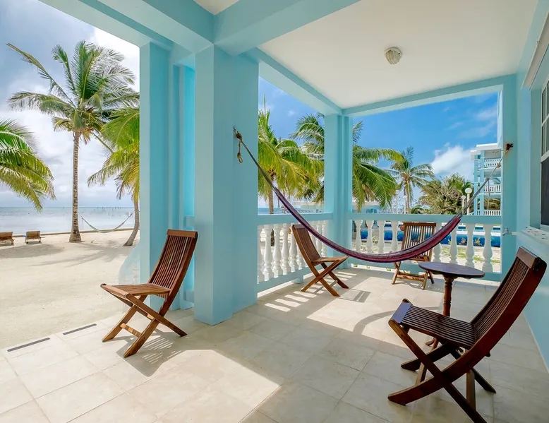 This condo is in a quiet, 13 unit beachfront complex just south of San Pedro on Ambergris Caye -- enjoy a view out to the Barrier Reef, a sandy beach, pool, pier, complimentary bikes & kayaks, & more! Perfect for a family, a group of friends, or three couples, you'll love the personalized decor and fabulous views! With a larger group? Ask about booking multiple condos! The space Ground floor Condo C1 has a large porch that faces the sea and puts you right on the beach. The principal bedroom has a king bed and en suite bathroom; the second bedroom has a king, and the 3rd bedroom has twin beds (which can convert to a king). There is also a living room (with queen sleeper sofa), dining area, and a fully equipped kitchen. Condo amenities: *Wifi (limited streaming) *Central AC *Ceiling fans *Cable TV *Bed linens *Towels: dish, hand, bath & beach *Full kitchen (no dishwasher) *Starter pack of paper goods (toilet paper, paper towels) *Iron *Hair dryer *Safe *5 gallon water jug (delivered refills US$5) Guest access Resort amenities: •200 feet of sandy beach •pier with “palapa”, swim ladder, and swim/snorkel area with small artificial reef (most tour operators will pick you up/drop you off at our pier for excursions) •fresh water pool with cool water bubbler & “bar stools” •hammocks & hardwood beach lounging furniture •outdoor grills •Covered outdoor dining area •Games such as volleyball, horseshoes, corn hole •Complimentary bikes** •Complimentary kayaks (single & double)** **first come/first served for resort guests; day use only; must sign waiver Included services: •Answer any & all questions both pre-arrival and on-site •Booking of Tropic Air island flights Recommendations/contacts for: •golf carts and excursions/tours •Local cook •Pre-arrival grocery stocking •Massage •Babysitter •Pick up/drop off laundry service Other things to note Base nightly rate is for 4 guests; US$30/night/guest fee for each additional guest up to the maximum allowed in the unit. If you enter your guest number correctly when booking, your total rate will calculate correctly including 9% tax and AirBNB fee. *One complimentary housecleaning for each 10 days booked! If you have a group, ask me about booking multiple condos—we have 1, 2 & 3 bedroom units. If this unit isn't available for the dates you want, check out other Ambergris Caye houses & condos under my profile: https://www.airbnb. com/users/1120393/listings We look forward to having you!