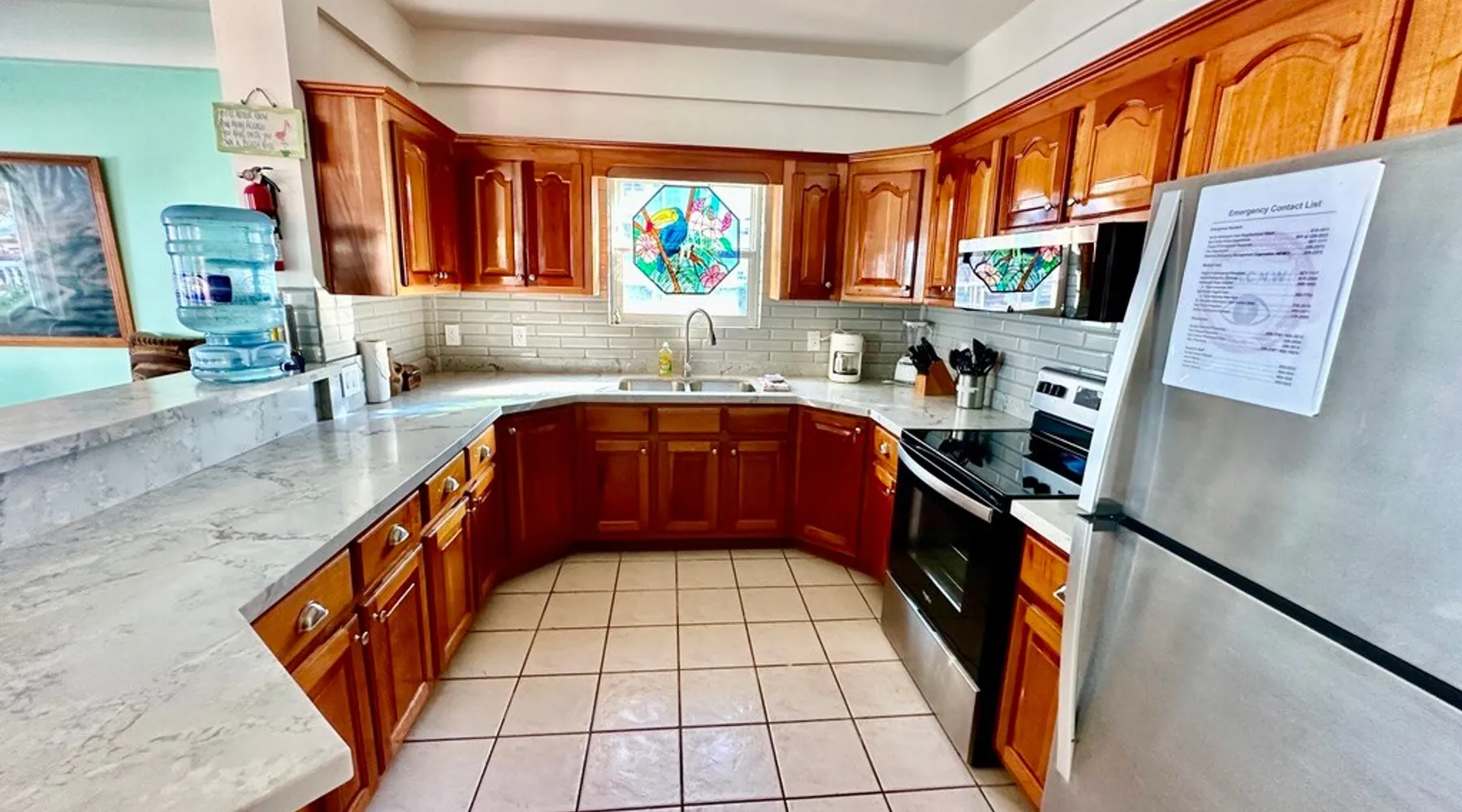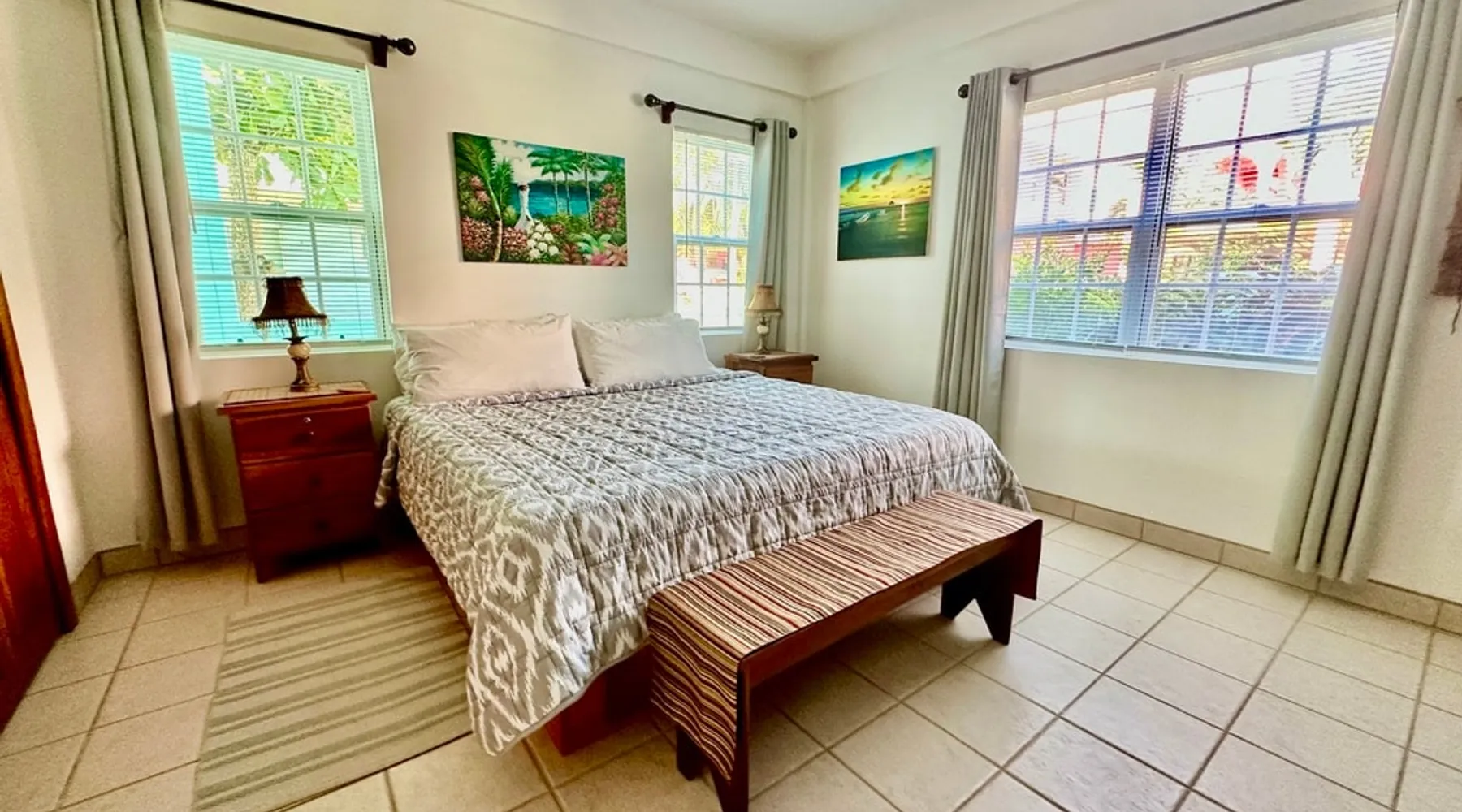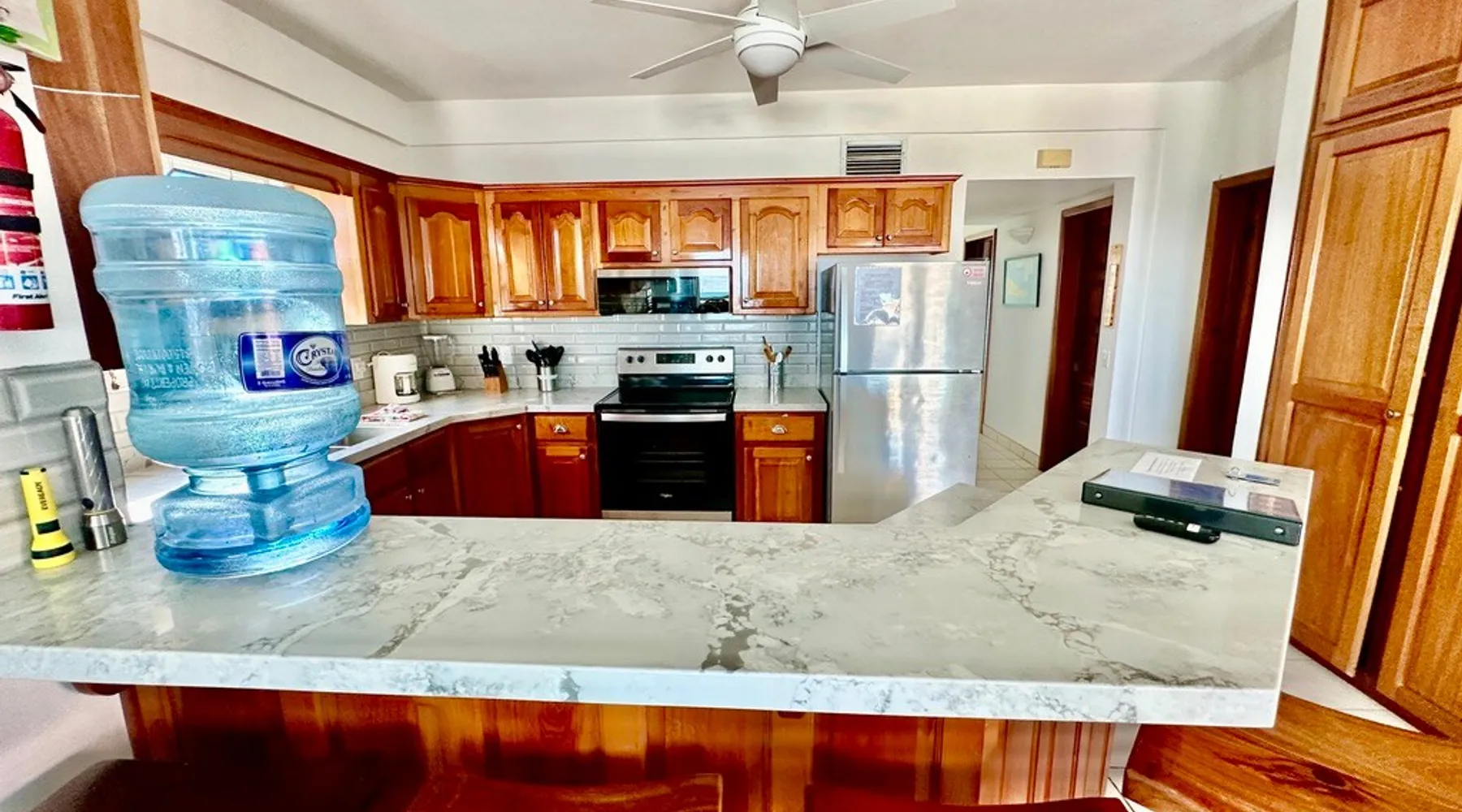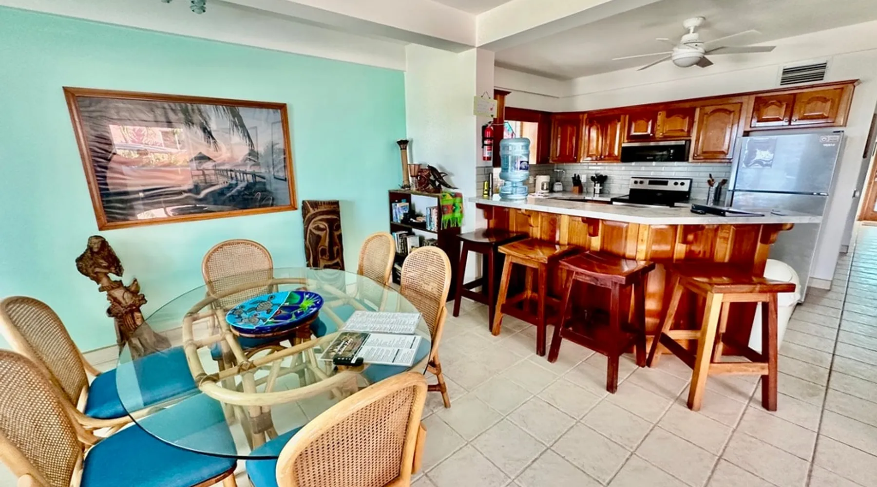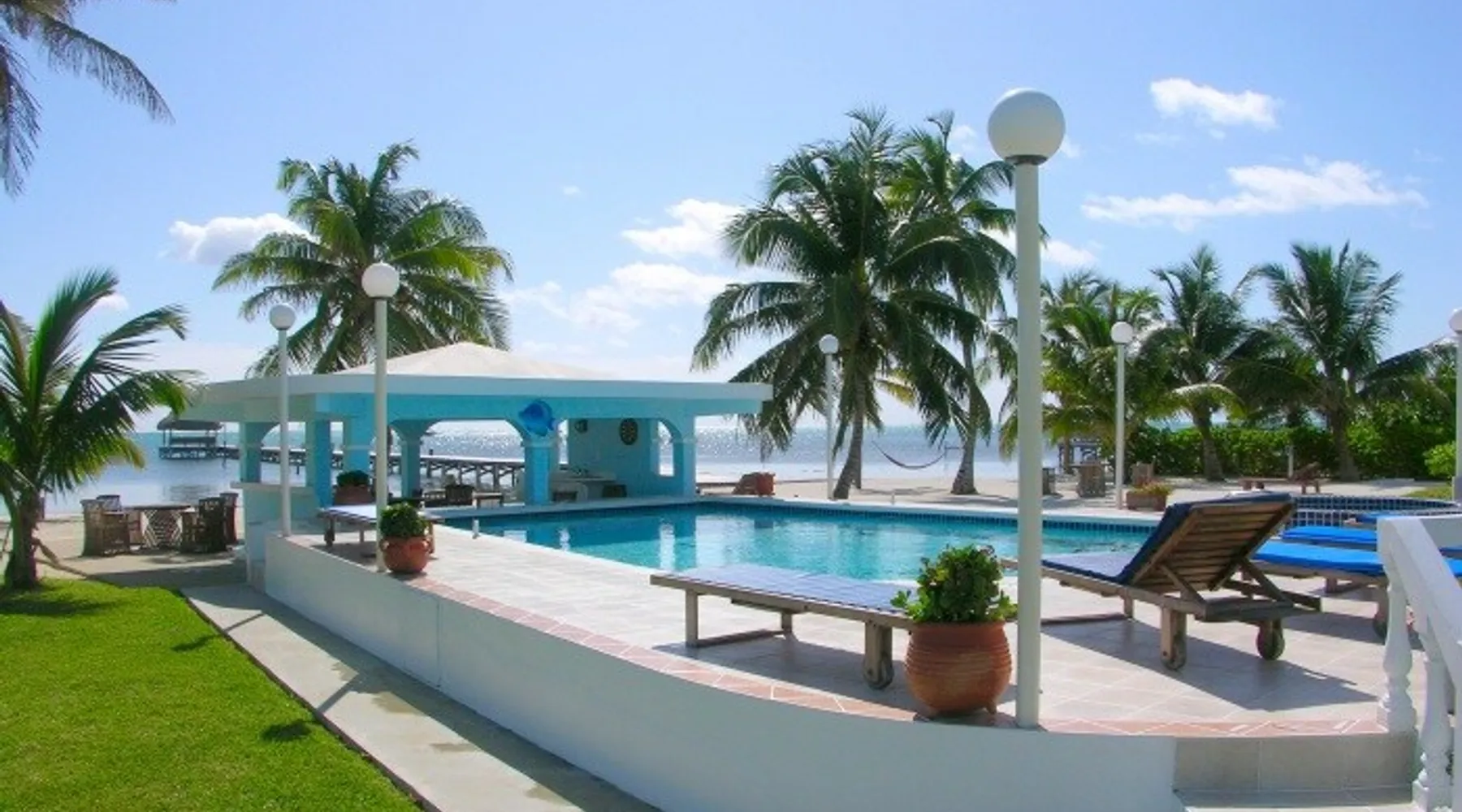 This condo is in a quiet, 13 unit beachfront complex just south of San Pedro on Ambergris Caye -- enjoy a view out to the Barrier Reef, a sandy beach, pool, pier, complimentary bikes & kayaks, & more! Perfect for a family, a group of friends, or three couples, you'll love the personalized decor and fabulous views! With a larger group? Ask about booking multiple condos! The space Ground floor Condo C1 has a large porch that faces the sea and puts you right on the beach. The principal bedroom has a king bed and en suite bathroom; the second bedroom has a king, and the 3rd bedroom has twin beds (which can convert to a king). There is also a living room (with queen sleeper sofa), dining area, and a fully equipped kitchen. Condo amenities: *Wifi (limited streaming) *Central AC *Ceiling fans *Cable TV *Bed linens *Towels: dish, hand, bath & beach *Full kitchen (no dishwasher) *Starter pack of paper goods (toilet paper, paper towels) *Iron *Hair dryer *Safe *5 gallon water jug (delivered refills US$5) Guest access Resort amenities: •200 feet of sandy beach •pier with “palapa”, swim ladder, and swim/snorkel area with small artificial reef (most tour operators will pick you up/drop you off at our pier for excursions) •fresh water pool with cool water bubbler & “bar stools” •hammocks & hardwood beach lounging furniture •outdoor grills •Covered outdoor dining area •Games such as volleyball, horseshoes, corn hole •Complimentary bikes** •Complimentary kayaks (single & double)** **first come/first served for resort guests; day use only; must sign waiver Included services: •Answer any & all questions both pre-arrival and on-site •Booking of Tropic Air island flights Recommendations/contacts for: •golf carts and excursions/tours •Local cook •Pre-arrival grocery stocking •Massage •Babysitter •Pick up/drop off laundry service Other things to note Base nightly rate is for 4 guests; US$30/night/guest fee for each additional guest up to the maximum allowed in the unit. If you enter your guest number correctly when booking, your total rate will calculate correctly including 9% tax and AirBNB fee. *One complimentary housecleaning for each 10 days booked! If you have a group, ask me about booking multiple condos—we have 1, 2 & 3 bedroom units. If this unit isn't available for the dates you want, check out other Ambergris Caye houses & condos under my profile: https://www.airbnb. com/users/1120393/listings We look forward to having you!