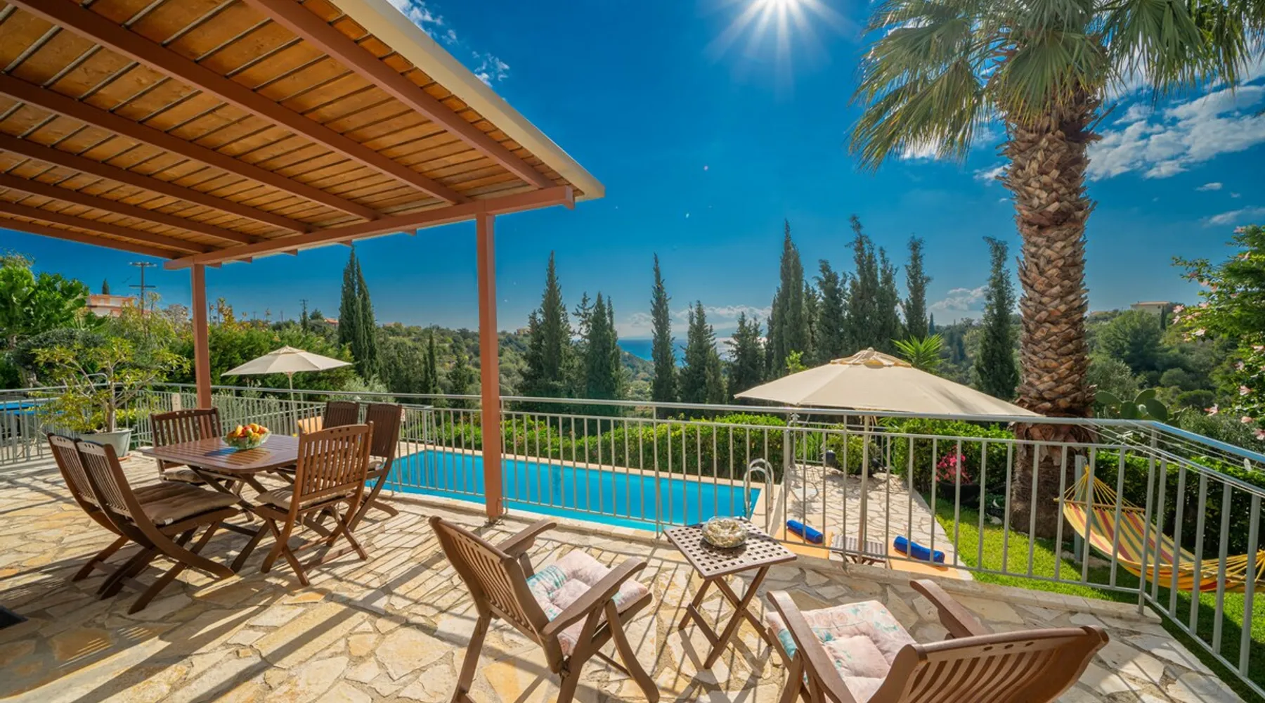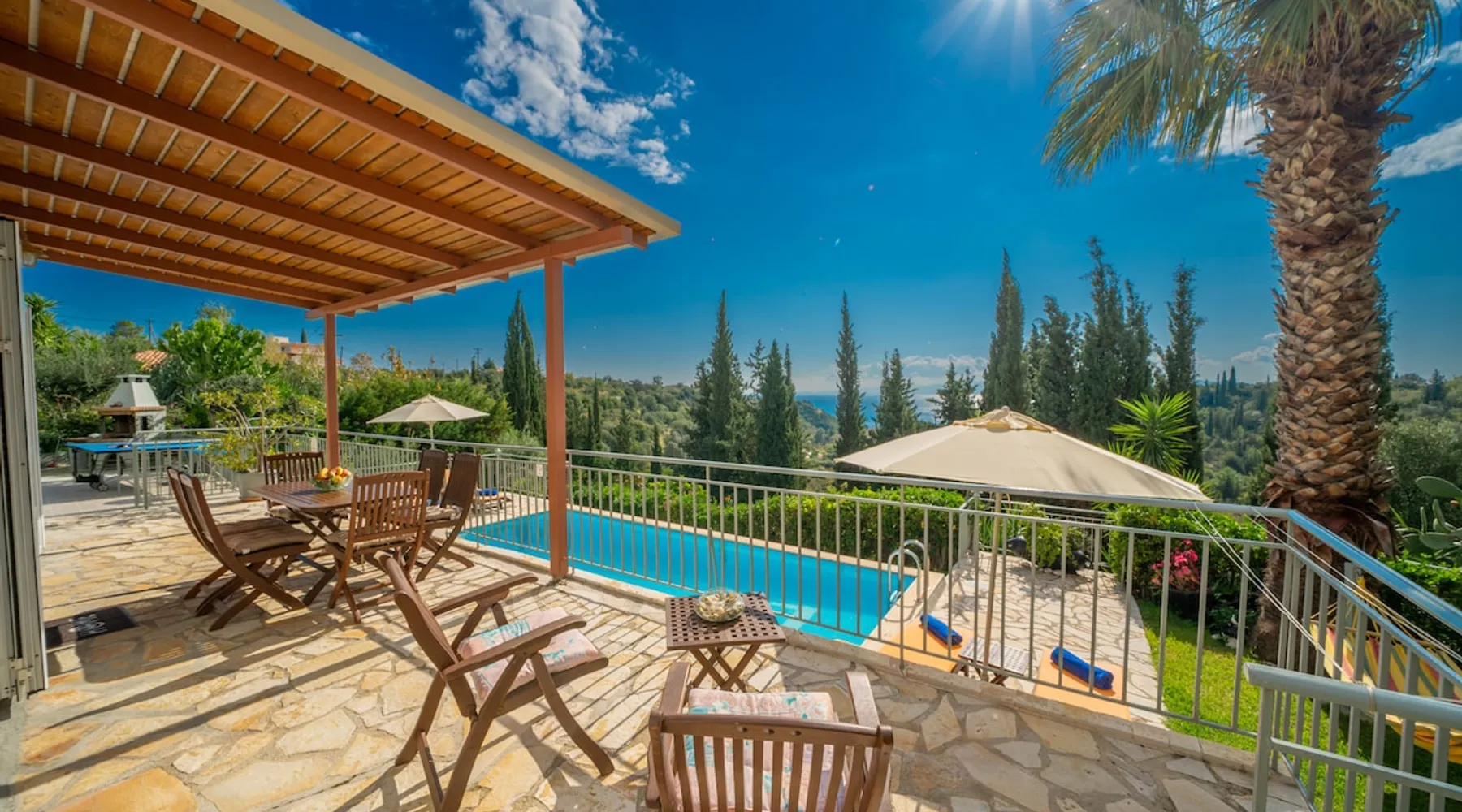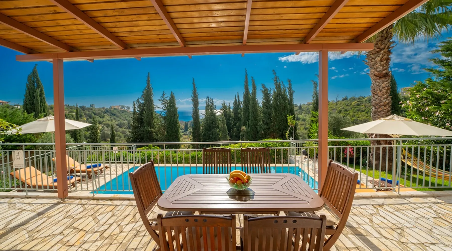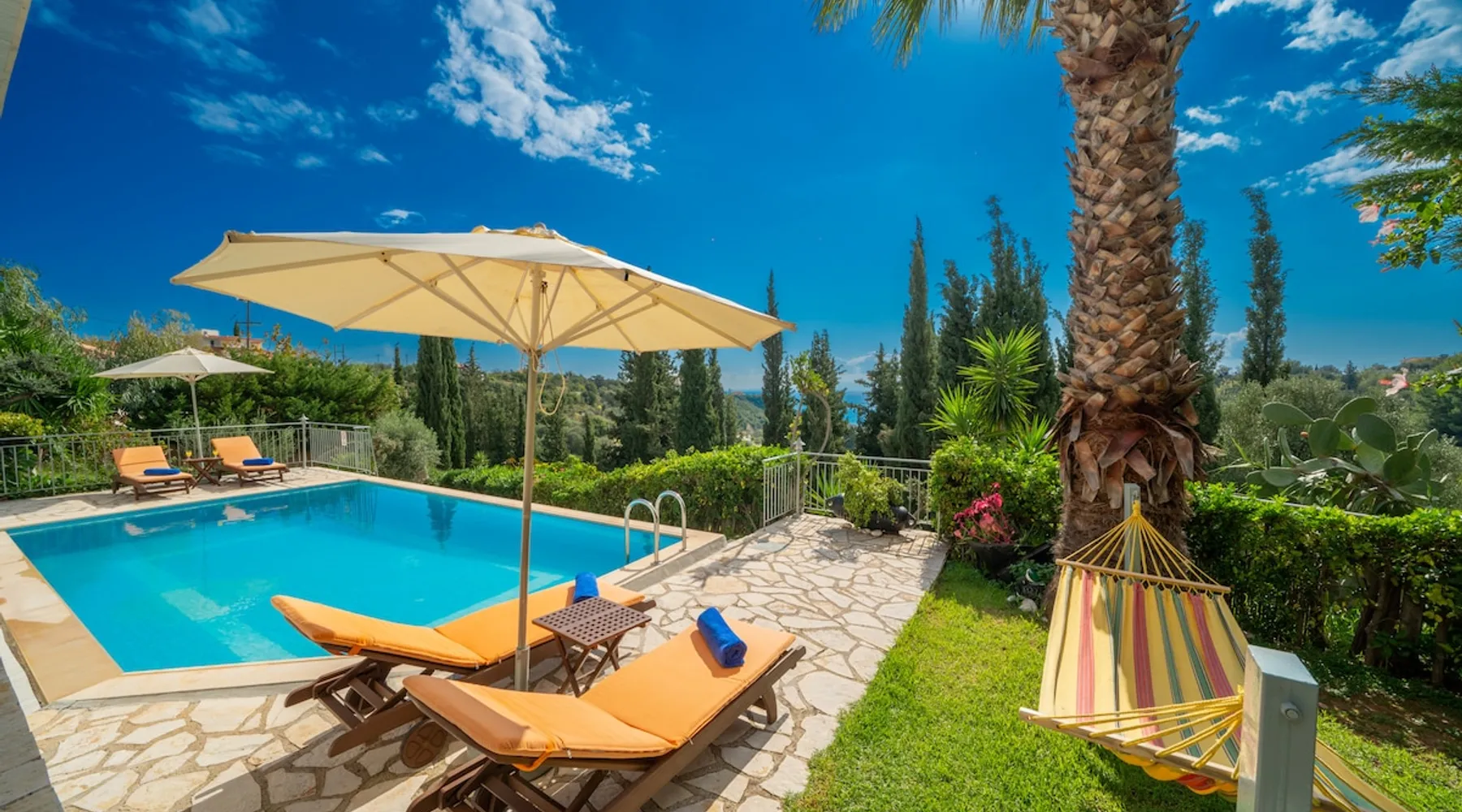 Location Perched at the top of the wooded valley overlooking the long sandy beach just 800m away, Villa Mounda Poseidon enjoys views that stretch across the Ionian Sea to the island of Zante. The long soft sands shelve gently into the clear waters, and with just a few sunbeds and a couple of tavernas & snack bars, Mounda beach has a near-deserted and natural feel to it. The space Location Perched at the top of the wooded valley overlooking the long sandy beach just 800m away, Villa Mounda Poseidon enjoys views that stretch across the Ionian Sea to the island of Zante. The long soft sands shelve gently into the clear waters, and with just a few sunbeds and a couple of tavernas & snack bars, Mounda beach has a near-deserted and natural feel to it. Indeed, in both directions this stretch of coastline takes in several protected areas where the endangered loggerhead turtles come to nest. Just a short drive away, the village of Skala offers a number of good tavernas & cafes, shops, quiet nightlife, and even watersports from the fabulous beach for the more adventurous. The added convenience of several supermarkets means you are never far from everything you might need for a relaxed holiday. From the villa, a short walk brings you to the small village of Ratzikli with a cafe and plenty of traditional character. Outside Villa Mounda Poseidon Sea View Swimming Pool (Gated) - 4m x 7.5m tiled swimming pool. Depths 0.85m to 1.90m. Ladder entry. Sea View Sun terrace - sunbeds and parasols. Sea View Covered Dining terrace - pergola with dining table and chairs. Garden - Small lawn with trees and hammock plus children's area with slide and swings. Brick BBQ and table tennis. Two Sea View Balconies - both with wonderful sea views and have coffee tables and chairs. Inside Villa Mounda Poseidon Ground Floor - Open plan living area. Air Con unit Kitchen area - Fitted cupboards, dishwasher, electric oven with ceramic hobs, fridge freezer, microwave, Nespresso coffee machine and sink. Small table with two chairs. Sitting area - Two comfy sofas and L shaped sofa, plasma TV with satellite (limited English channels) and DVD player, wifi and doors to covered terrace and garden. Dining area - Wooden dining table and chairs. Shower room - Shower with glass door, hand basin, WC and washing machine. Double Bedroom - One double bed, fitted wardrobes, mirror with dressing table and doors to sea view terrace leading to garden and pool area. Air Con Unit. First Floor Double Bedroom with en suite shower room - 1 double bed, fitted wardrobes, mirror with dressing table, doors to sea view balcony. En suite shower room, hand basin, WC. Air Con Unit. Twin Bedroom with en suite shower room - 2 twin beds, fitted wardrobes, mirror and dressing table, doors to sea view balcony. En suite shower room, hand basin, WC. Air Con Unit. Housekeeping Your Villa will be prepared for you on arrival with fresh bath and hand towels and all beds made up. For stays of 7 nights or more - house towels will be changed every 3 - 4 days. For stays of 14 nights or more - bed linen will be changed every 7 days. Pool/beach towels - one per person for the duration of your stay. Parking area just outside the door of the villa. Other things to note Included services: - Enhanced Clean : Price: included in the booking - ABTA Member Y1824: Price: included in the booking - Bed Linen & Bathroom Towels: Price: included in the booking - Pool/Beach Towels: Price: included in the booking - Welcome Bag (Greece): Price: included in the booking - Swimming pool: Opening date: 01/05 Closing date: 31/10 Price: included in the booking Services available according to season: From 01/05 to 31/10. Optional chargeable services: - Second High Chair - Second Cot Registration Details 0830K10000863401