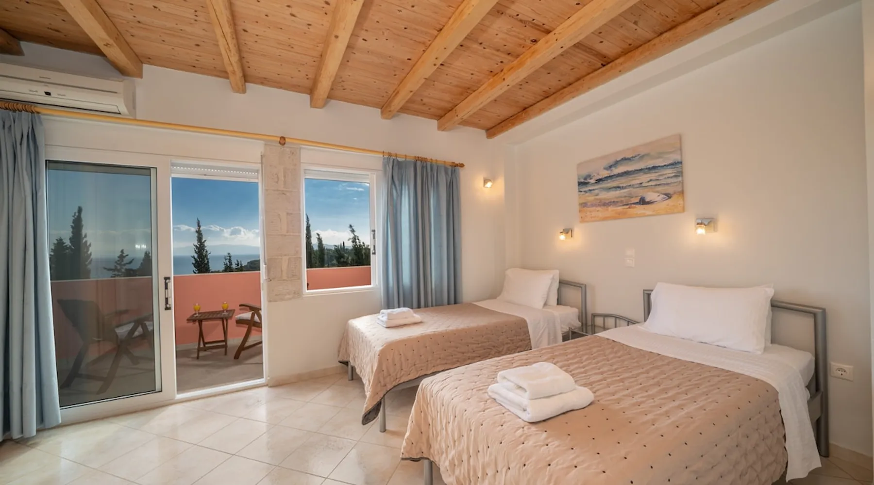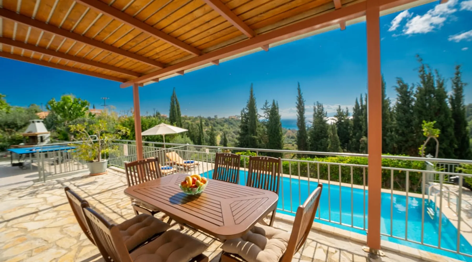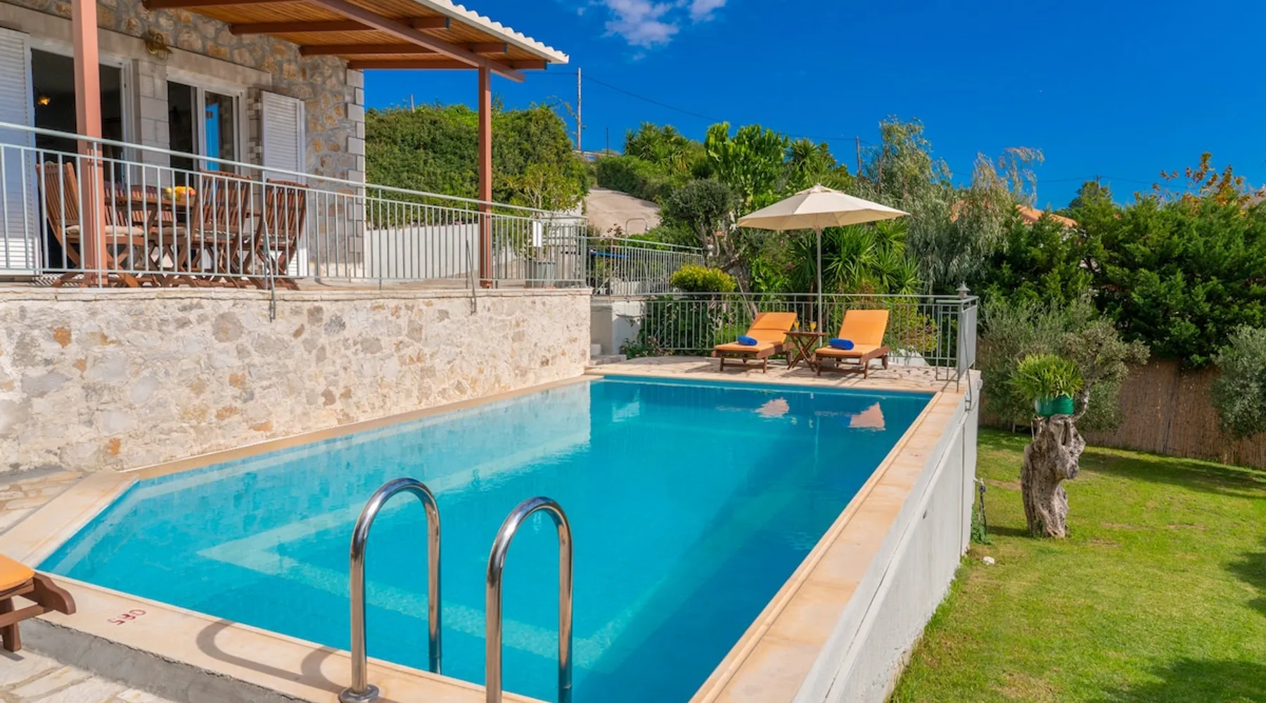 Location Perched at the top of the wooded valley overlooking the long sandy beach just 800m away, Villa Mounda Poseidon enjoys views that stretch across the Ionian Sea to the island of Zante. The long soft sands shelve gently into the clear waters, and with just a few sunbeds and a couple of tavernas & snack bars, Mounda beach has a near-deserted and natural feel to it. The space Location Perched at the top of the wooded valley overlooking the long sandy beach just 800m away, Villa Mounda Poseidon enjoys views that stretch across the Ionian Sea to the island of Zante. The long soft sands shelve gently into the clear waters, and with just a few sunbeds and a couple of tavernas & snack bars, Mounda beach has a near-deserted and natural feel to it. Indeed, in both directions this stretch of coastline takes in several protected areas where the endangered loggerhead turtles come to nest. Just a short drive away, the village of Skala offers a number of good tavernas & cafes, shops, quiet nightlife, and even watersports from the fabulous beach for the more adventurous. The added convenience of several supermarkets means you are never far from everything you might need for a relaxed holiday. From the villa, a short walk brings you to the small village of Ratzikli with a cafe and plenty of traditional character. Outside Villa Mounda Poseidon Sea View Swimming Pool (Gated) - 4m x 7.5m tiled swimming pool. Depths 0.85m to 1.90m. Ladder entry. Sea View Sun terrace - sunbeds and parasols. Sea View Covered Dining terrace - pergola with dining table and chairs. Garden - Small lawn with trees and hammock plus children's area with slide and swings. Brick BBQ and table tennis. Two Sea View Balconies - both with wonderful sea views and have coffee tables and chairs. Inside Villa Mounda Poseidon Ground Floor - Open plan living area. Air Con unit Kitchen area - Fitted cupboards, dishwasher, electric oven with ceramic hobs, fridge freezer, microwave, Nespresso coffee machine and sink. Small table with two chairs. Sitting area - Two comfy sofas and L shaped sofa, plasma TV with satellite (limited English channels) and DVD player, wifi and doors to covered terrace and garden. Dining area - Wooden dining table and chairs. Shower room - Shower with glass door, hand basin, WC and washing machine. Double Bedroom - One double bed, fitted wardrobes, mirror with dressing table and doors to sea view terrace leading to garden and pool area. Air Con Unit. First Floor Double Bedroom with en suite shower room - 1 double bed, fitted wardrobes, mirror with dressing table, doors to sea view balcony. En suite shower room, hand basin, WC. Air Con Unit. Twin Bedroom with en suite shower room - 2 twin beds, fitted wardrobes, mirror and dressing table, doors to sea view balcony. En suite shower room, hand basin, WC. Air Con Unit. Housekeeping Your Villa will be prepared for you on arrival with fresh bath and hand towels and all beds made up. For stays of 7 nights or more - house towels will be changed every 3 - 4 days. For stays of 14 nights or more - bed linen will be changed every 7 days. Pool/beach towels - one per person for the duration of your stay. Parking area just outside the door of the villa. Other things to note Included services: - Enhanced Clean : Price: included in the booking - ABTA Member Y1824: Price: included in the booking - Bed Linen & Bathroom Towels: Price: included in the booking - Pool/Beach Towels: Price: included in the booking - Welcome Bag (Greece): Price: included in the booking - Swimming pool: Opening date: 01/05 Closing date: 31/10 Price: included in the booking Services available according to season: From 01/05 to 31/10. Optional chargeable services: - Second High Chair - Second Cot Registration Details 0830K10000863401