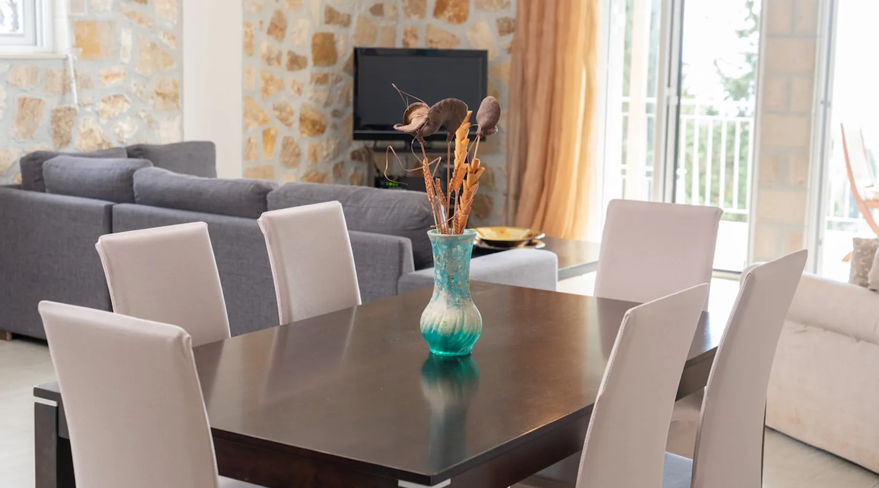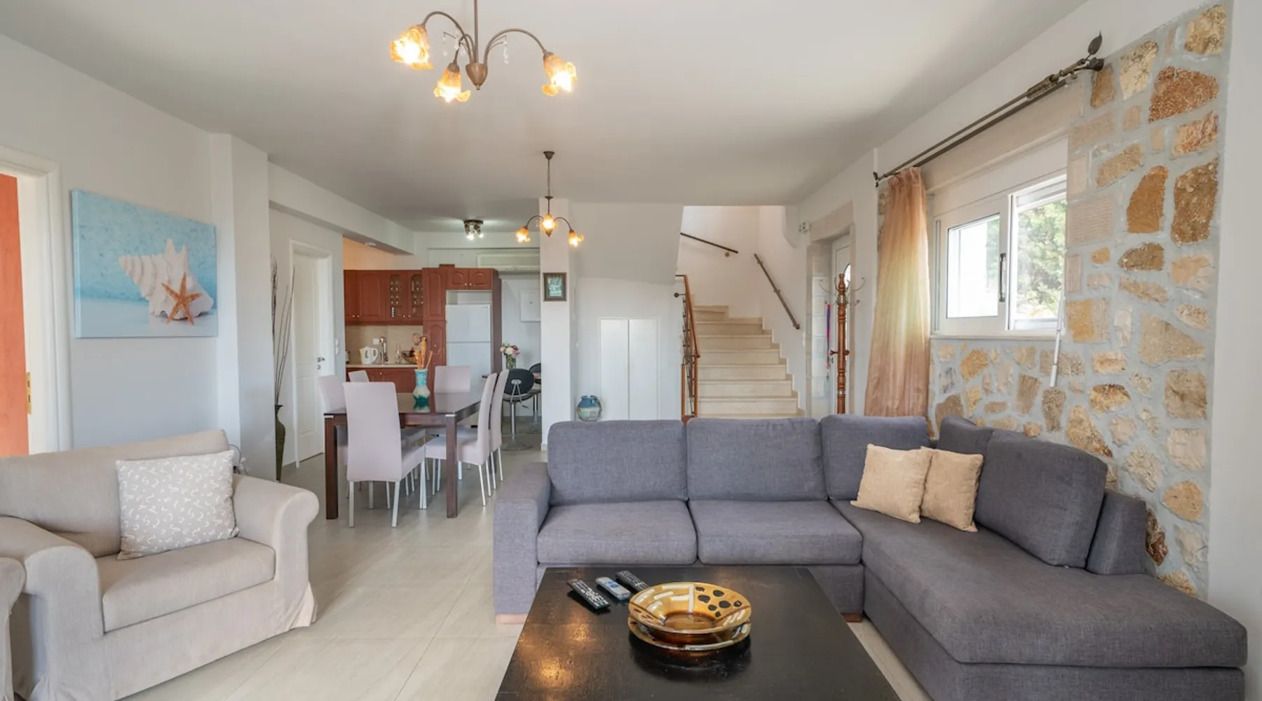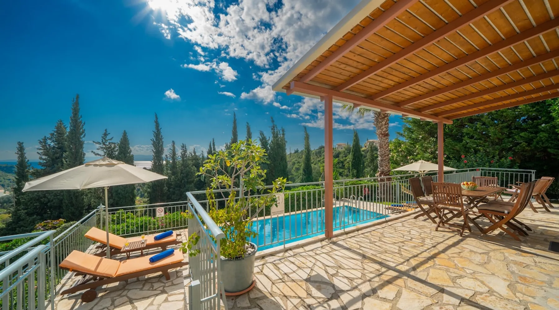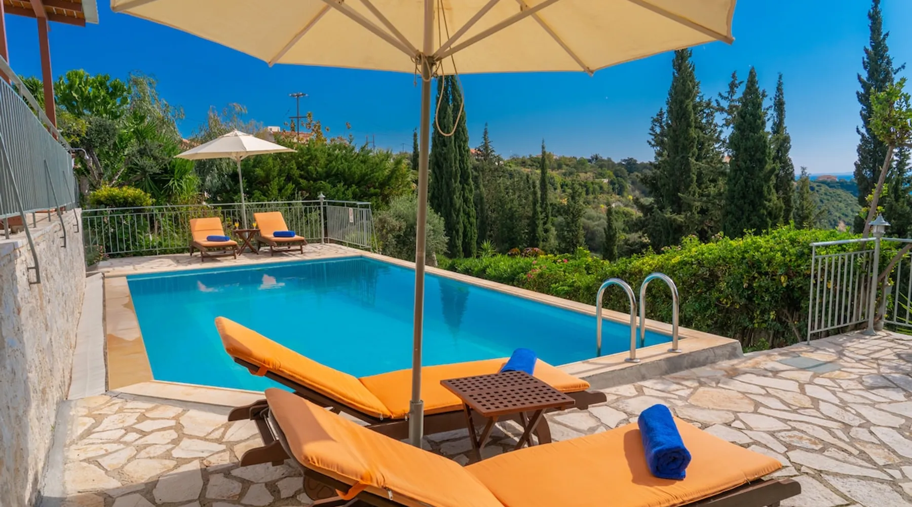 Location Perched at the top of the wooded valley overlooking the long sandy beach just 800m away, Villa Mounda Poseidon enjoys views that stretch across the Ionian Sea to the island of Zante. The long soft sands shelve gently into the clear waters, and with just a few sunbeds and a couple of tavernas & snack bars, Mounda beach has a near-deserted and natural feel to it. The space Location Perched at the top of the wooded valley overlooking the long sandy beach just 800m away, Villa Mounda Poseidon enjoys views that stretch across the Ionian Sea to the island of Zante. The long soft sands shelve gently into the clear waters, and with just a few sunbeds and a couple of tavernas & snack bars, Mounda beach has a near-deserted and natural feel to it. Indeed, in both directions this stretch of coastline takes in several protected areas where the endangered loggerhead turtles come to nest. Just a short drive away, the village of Skala offers a number of good tavernas & cafes, shops, quiet nightlife, and even watersports from the fabulous beach for the more adventurous. The added convenience of several supermarkets means you are never far from everything you might need for a relaxed holiday. From the villa, a short walk brings you to the small village of Ratzikli with a cafe and plenty of traditional character. Outside Villa Mounda Poseidon Sea View Swimming Pool (Gated) - 4m x 7.5m tiled swimming pool. Depths 0.85m to 1.90m. Ladder entry. Sea View Sun terrace - sunbeds and parasols. Sea View Covered Dining terrace - pergola with dining table and chairs. Garden - Small lawn with trees and hammock plus children's area with slide and swings. Brick BBQ and table tennis. Two Sea View Balconies - both with wonderful sea views and have coffee tables and chairs. Inside Villa Mounda Poseidon Ground Floor - Open plan living area. Air Con unit Kitchen area - Fitted cupboards, dishwasher, electric oven with ceramic hobs, fridge freezer, microwave, Nespresso coffee machine and sink. Small table with two chairs. Sitting area - Two comfy sofas and L shaped sofa, plasma TV with satellite (limited English channels) and DVD player, wifi and doors to covered terrace and garden. Dining area - Wooden dining table and chairs. Shower room - Shower with glass door, hand basin, WC and washing machine. Double Bedroom - One double bed, fitted wardrobes, mirror with dressing table and doors to sea view terrace leading to garden and pool area. Air Con Unit. First Floor Double Bedroom with en suite shower room - 1 double bed, fitted wardrobes, mirror with dressing table, doors to sea view balcony. En suite shower room, hand basin, WC. Air Con Unit. Twin Bedroom with en suite shower room - 2 twin beds, fitted wardrobes, mirror and dressing table, doors to sea view balcony. En suite shower room, hand basin, WC. Air Con Unit. Housekeeping Your Villa will be prepared for you on arrival with fresh bath and hand towels and all beds made up. For stays of 7 nights or more - house towels will be changed every 3 - 4 days. For stays of 14 nights or more - bed linen will be changed every 7 days. Pool/beach towels - one per person for the duration of your stay. Parking area just outside the door of the villa. Other things to note Included services: - Enhanced Clean : Price: included in the booking - ABTA Member Y1824: Price: included in the booking - Bed Linen & Bathroom Towels: Price: included in the booking - Pool/Beach Towels: Price: included in the booking - Welcome Bag (Greece): Price: included in the booking - Swimming pool: Opening date: 01/05 Closing date: 31/10 Price: included in the booking Services available according to season: From 01/05 to 31/10. Optional chargeable services: - Second High Chair - Second Cot Registration Details 0830K10000863401
