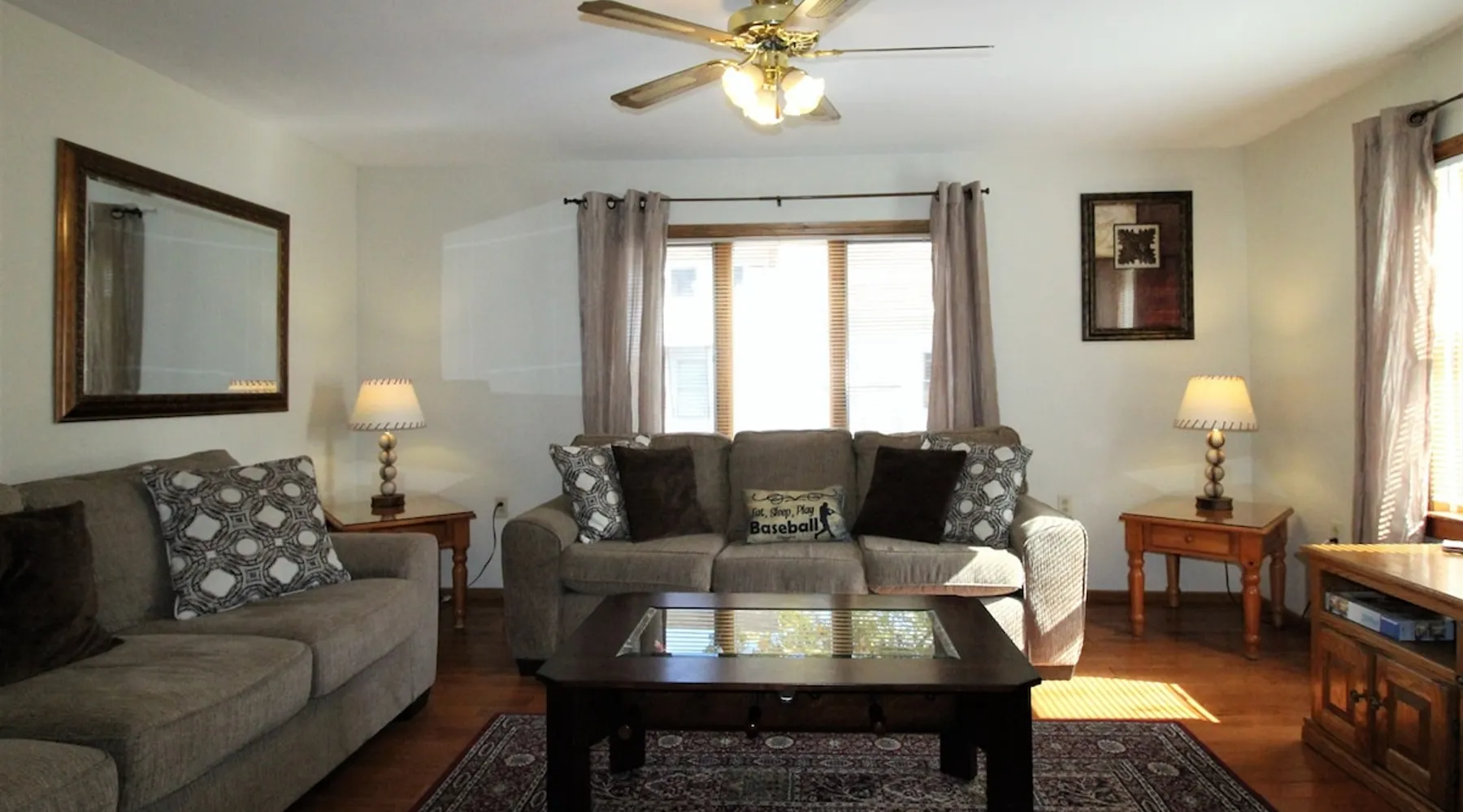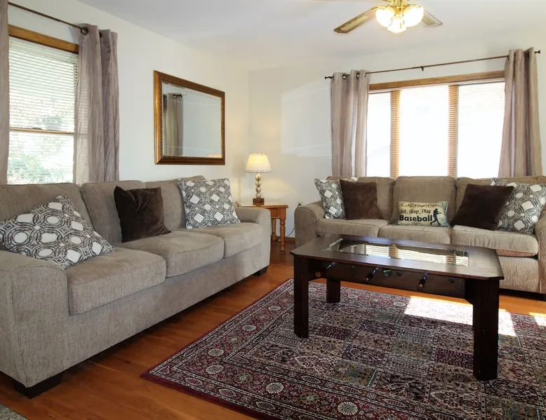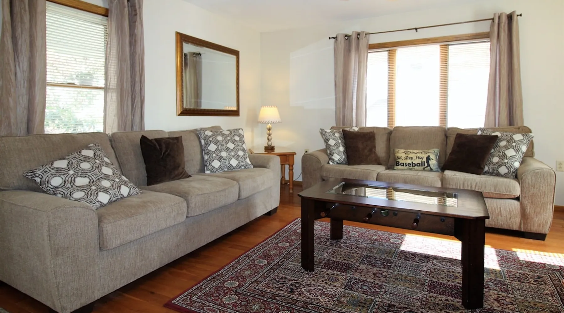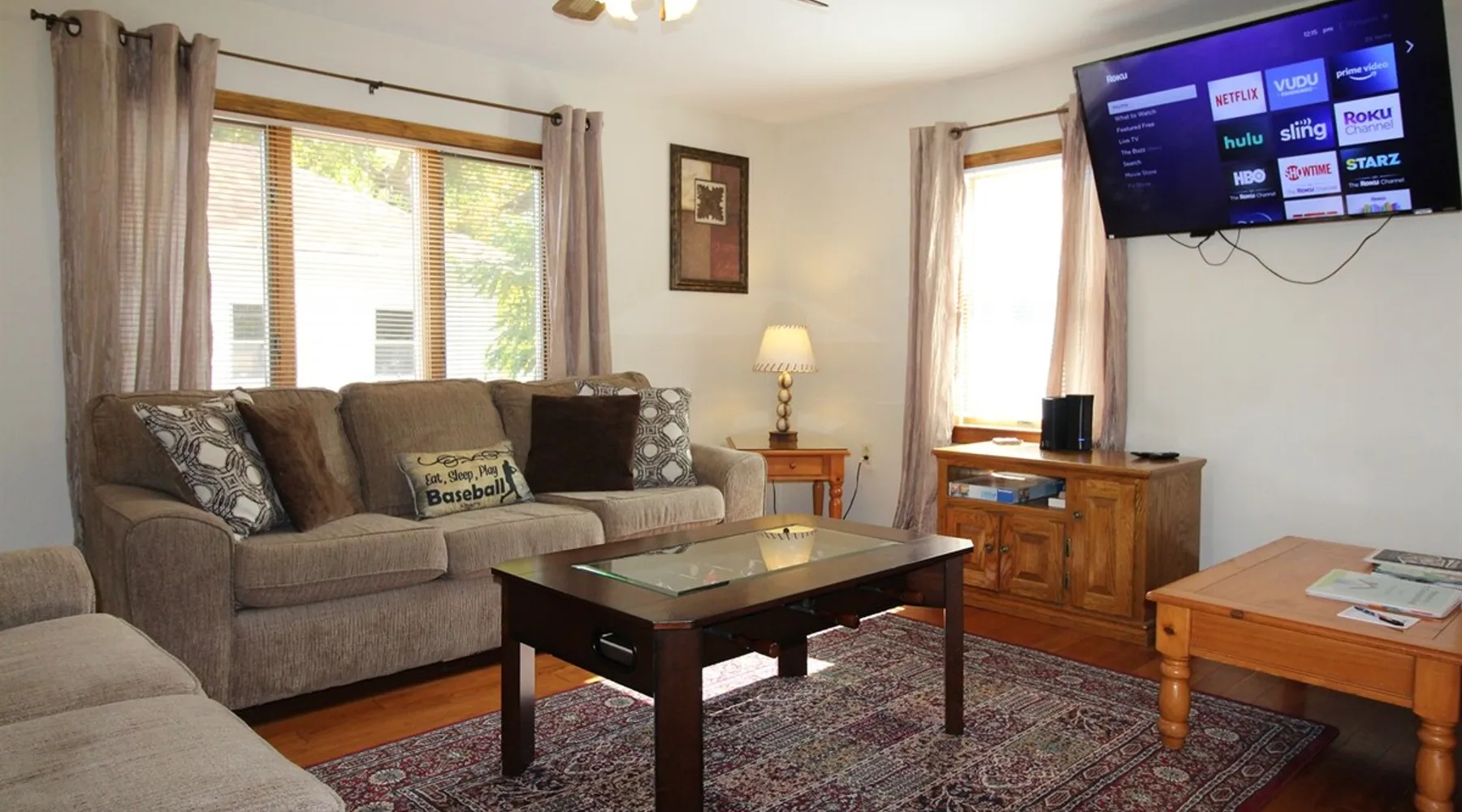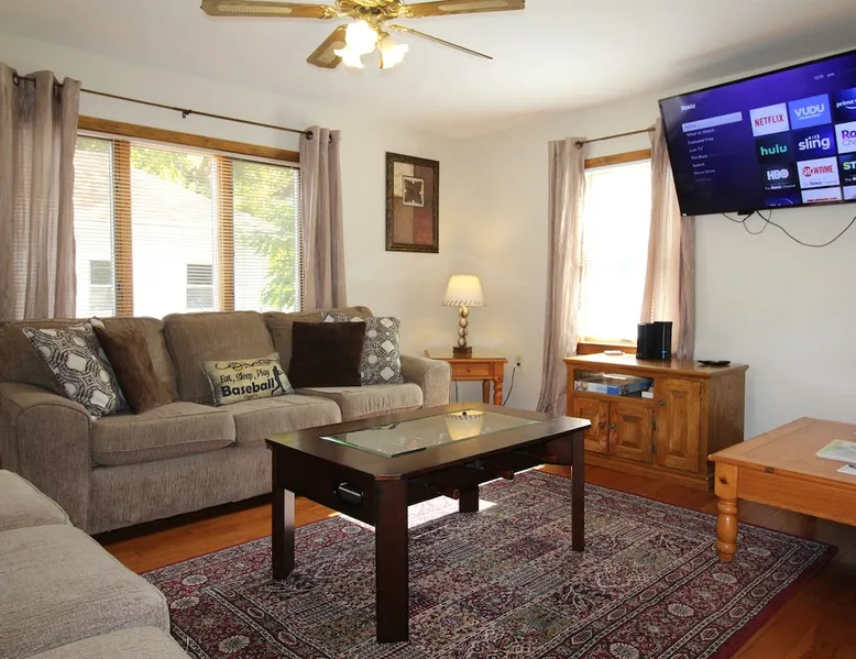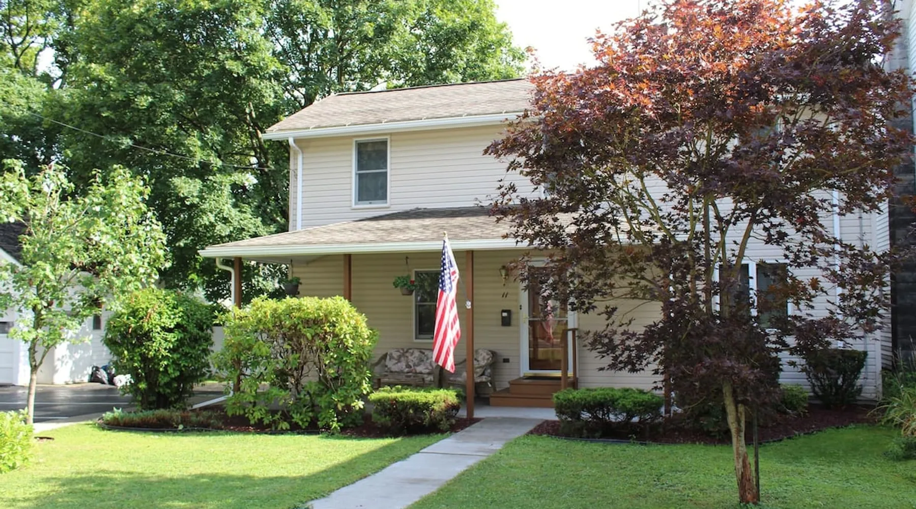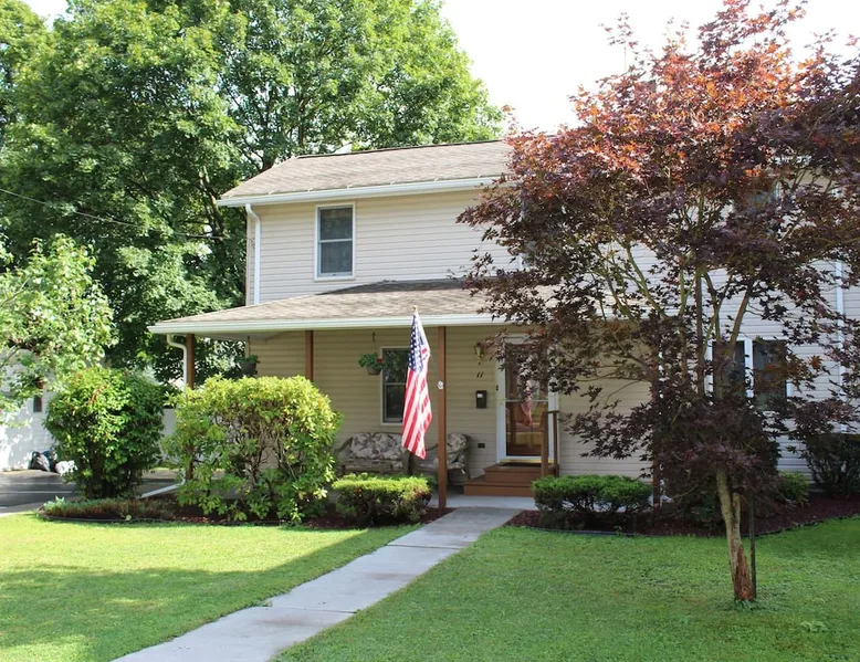 Columbia House is located in Oneonta and is convenient to Cooperstown All Star Village and the Cooperstown Baseball World youth baseball tournaments. This two-story, 1,150 square foot home features central air-conditioning, a contemporary eat-in kitchen with dishwasher, and updated tiled and hardwood floors throughout. This home also has 2 sets of in-unit washers and dryers. The space There are three bedrooms, all on the second floor. One bedroom has a king size bed, one has a full size bed and the third has a queen size bed. Every bedroom has a 43" (or larger) flat screen smart Roku TV. Just bring your favorite app for your TV watching! There are 2 bathrooms, a half bath on the first floor and a full bath on the second floor. All linens and towels are provided for your convenience. Guest access This home has off-street parking, and a private back patio, complete with a gas grill. The patio provides a comfortable outdoor space for conversation, dining and relaxation. For your entertainment, there are 4 flat screen smart Roku TV's - a 55" (or larger) flat screen TV with DVD player in the living room, and a flat screen TV in each bedroom, as well as high speed wireless internet (Wi-Fi). Other things to note PLEASE NOTE: This is a one-way street, so you need to be mindful of that when driving.