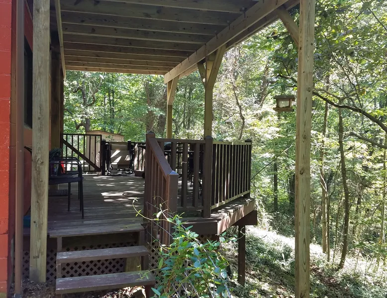 Private cabin in the woods bordering HH State Forest. Hike to Old Man's Cave or other rock formations from the back door. We love the area and our dogs and want to provide a place for you to bring your best four legged friends! We have no size or breed restrictions. We just ask that they are well behaved and you pick up after them. No additional charge for your dog(s). No pet deposit. Thanks for considering us! Justin and Cookie Transient Occupancy Registration #00282 The space We have 3 cabins located within 1/2 mile of each other. All are dog friendly with fenced in areas off the deck so that you don't need to go outside to let your dogs out. We provide dog beds, bowls, towels, and some treats! Now for the human amenities....All cabins are within walking distance of the BuckeyeTrail, less than 2 miles from Old Man's Cave, have full kitchens and 2 separate bedrooms, have outdoor hammock chairs on covered decks, games, DVDs, and more! Here is a brief description of each cabin: Take A Hike-Secluded with a large deck in the trees, small interior, wood burning fireplace. Paws & Unwind-Larger interior, less secluded, gas fireplace. Get Lost-Brand new and the best of the other two. Seclusion, a 40 foot covered deck, hammock chairs in front of a gas fireplace. We have a cooler, backpack, 4 sets of trekking poles, and 4 pair of ice grippers for your shoes for use during your stay. We are an unplugged destination. There is no Wi-Fi. (Cabin #2, Get Lost does have Wi-Fi.) Cell service is limited in the area. T-Mobile has decent service inside. ATT and Verizon have spotty service inside. Your cell phone will work to call 911 from Take A Hike. The closest wifi is at the Old Man's Cave Visitor Center. We live 5 minutes away. You can give our number to family to reach us in the event of an emergency. We have a DVD player and recommend that you bring your own DVDs if desired. Our TV has HDMI input. Bring your own HDMI cable if you would like to connect your mobile device. We have a variety of games, books, and DVDs for you to enjoy during your stay. There are stairs down to the cabin. We are not handicap accessible. For winter bookings: We do have heat that should be sufficient to keep you warm. We have a wood burning stove in the main room. We will have a fire ready to be lit, but we do not supply firewood. There are many road side stands nearby where you can purchase wood. Grandma Faye’s is the closest.