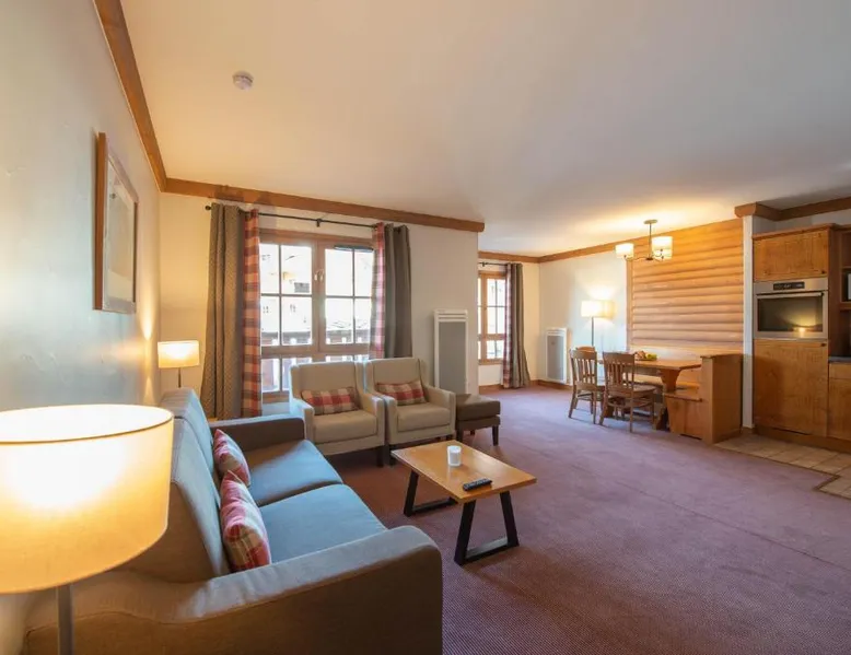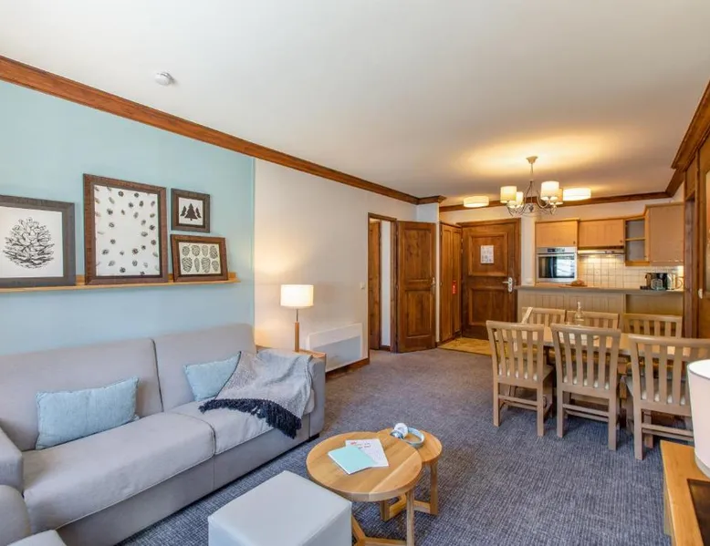 Résidence Pierre & Vacances Premium Arc 1950 Le Village is located in the Paradiski ski area, close to the ski elevators, between the Vanoise National Park and Mont Blanc. The residence offers depending on the building you are staying : an indoor pool, an outdoor Mont Blanc view pool, three other outdoor pools with no view, a spa and a hot tub. The spacious apartments at Résidence Pierre & Vacances Premium Arc 1950 Le Village have a cottage style decor. They include free WiFi and a fully equipped kitchenette. Additional facilities including an indoor swimming pool, a sauna, a steam room and a fitness room are available for some apartments and at an additional cost. Guest can relax by the fire place in the cozy lounge or have a treatment at the Deep Nature Spa, with an extra cost. Upon prior reservation, guests can purchase ski passes and rent ski equipment at the property. Several restaurants, bars and boutiques, as well a supermarket are located in the surrounding area. Guests receive preferential rates on a range of activities organized by Résidence Pierre & Vacances Premium Arc 1950 Le Village's partners. Green Key-awarded If you come by train, funicular is offered. Open every day from 7.30am to 9pm and until 11pm on Thursday. Funicular to Arc 1600 then free shuttles to the other sites in the resort of Les Arcs the outdoor pool is accessible only in summer Please note that THE BALCONIES OF THE RESIDENCE ARE CLOSED FOR SECURITY REASONS FOR AN INDEFINITE PERIOD. This apartment has direct access to the Prince des Cimes indoor pool. It has a living area with a double sofa bed. There is a bedroom with a double bed and a bedroom with 2 single beds. Beds are made prior to arrival. There are 2 bathrooms, one of which has a shower and the other has a bath. The fully equipped kitchenette opens onto the living area and has a Nespresso® coffee machine. This apartment is located in the Hameau du Glacier building. It has access to the following facilities: indoor pool (the only one in the residence), 2 gyms, 1 hammam and 1 sauna. Some apartments are duplexes. You are kindly requested to clean the kitchen area before departure. This apartment is located in the Hameau du Glacier building and Prince des Cimes