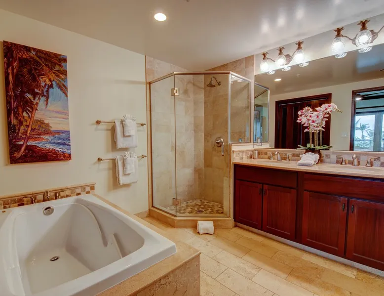 Hawaii Life Rentals present Hale Tiare Located in one of the newest resorts on Kauai, H-402 is a 2 bedroom, 3 bathroom Oceanfront Penthouse Condo. You will enjoy relaxing sounds of waves hitting the sand from almost every room! The space Your Sunrise Vacation Home™ Enjoy your Kauai Vacation at the beautiful Oceanfront Waipouli Beach Resort & Spa. Located in one of the newest resorts on Kauai, H-402 is a 2 bedroom, 3 bathroom Oceanfront Penthouse Condo. You will enjoy relaxing sounds of waves hitting the sand from almost every room! Enjoy a spacious living area with ocean views from the lanai, cable television, and air conditioning. This upscale unit includes a full gourmet kitchen featuring Wolf glass cooktop and oven, Sub-Zero refrigerator, GE microwave, Bosch dishwasher, granite countertop and African Mahogany cabinets. Two Master suites feature King beds, Cable TV, full bathroom with soaking tubs and showers, and of course ocean views. For extra guests, there is a comfortable queen sofa sleeper in the living room. Additional features of this unit and also include ceiling fans, linens and bedding, interior full size stackable washer and dryer, and elevator access. The 13+ acre resort property boasts lush tropical landscaping surrounding a freshwater pool complete with water slides, waterfalls, 3 sandy bottom hot tubs, with a sandy bottom children's pool. Waipouli Beach Resort & Spa Rated #1 Hawaiian Island by Travel & Leisure magazine and designated as the most outstanding resort in Hawaii by the Parade Of Homes. ***Please note that a daily resort fee of $32+GET per day will be added to your reservation. The Resort boosts Trip Advisor Certificate of Excellence Winner 4 years in a row: 2012, 2013, 2014, 2015. The resort also offers the Spa by the Sea, the Oasis Bar & Grill Restaurant and the newly built Fitness Center. Hawaii Life Rentals is a locally owned, licensed real estate company with rentals on Kauai, Maui, Oahu, and Hawaii. We offer on-island personal assistance and Concierge services. TA-039-129-1904-01 TMK-430080010022 Rates do not include taxes, cleaning and applicable fees. VRBO/Hawaii Life bookings: Guests must sign a rental contract within 48 hours of booking to confirm the reservation. Registration Details 430080010022, TA-039-129-1904-01