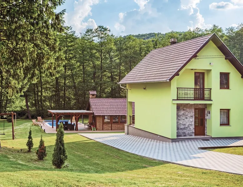 Beautiful vacation home with pool and stunning views of the countryside and nature. The space Beautiful vacation home with pool and stunning views of the countryside and nature. The house has a beautiful open gallery overlooking the living room. Relax in the hot tub or Finnish sauna. In the house is a lounge for 16 people with billiards, table soccer, a large TV with a premium sound system and a large open fireplace. Visit the unique geological natural monument Rupnica and arboretum Lisicine, with its wealth of different species of trees and shrubs. 400 m long gravel road leads to the house. Minimum ceiling height 120 cm. Neighboring houses CCS020 and CCS022. Can comfortably fit up to 6 people Other things to note Please note that: Bed linen and towels are included in the room rate in 2025. Consumption costs are included in the room rate. Up to one pet is allowed. Outdoor private pool on site is open May - end September.