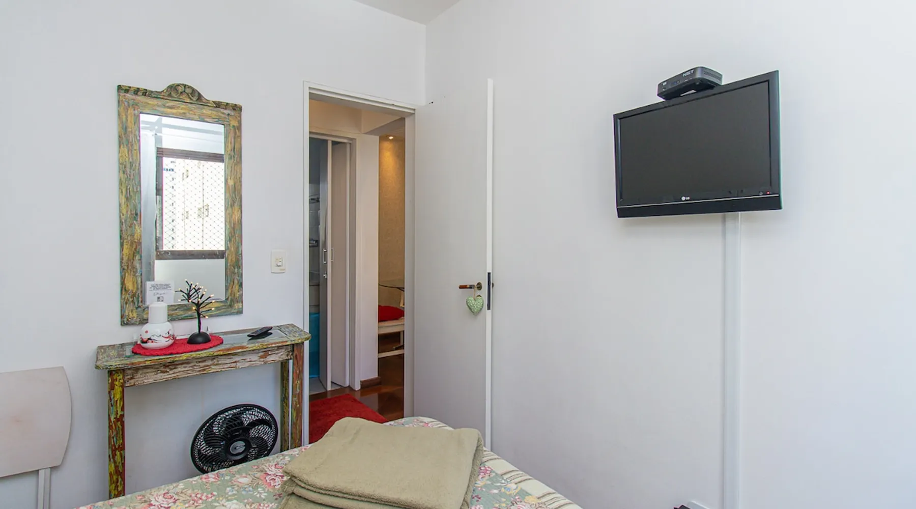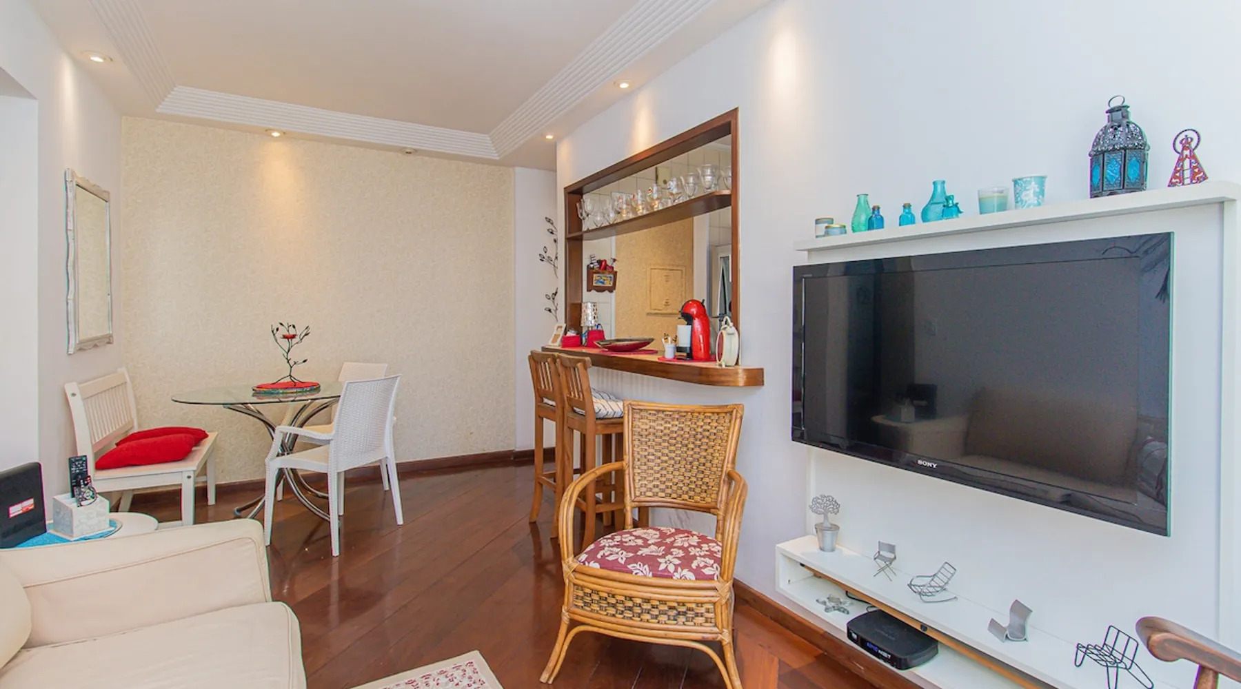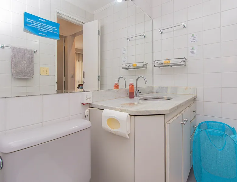 Have a comfortable stay and stay in an amazing apartment with a great location. You will find in the property 2 bedrooms, a bathroom, a living room, a service area, a beautiful balcony and a parking space for your convenience. For your leisure, we offer Wi-Fi, a fitness center and a sports court. When it's time to rest, relax in a rocking chair overlooking the city. Book your stay in São Paulo now. The space - Shopping Morumbi and Market Place: A few minutes' drive away, these malls offer a wide variety of shops, restaurants, cinemas and entertainment options - Bars and Restaurants: Brooklin is known for its sophisticated nightlife. You can explore renowned bars and restaurants such as Bar do Juarez and Coco Bambu - Parque do Povo: About 15 minutes by car, it is a great place for outdoor activities such as hiking, jogging or simply relaxing in a green environment - Berrini: Nearby Avenida Engenheiro Luís Carlos Berrini is one of the city's most important financial centers, with many restaurants and cafes for a business lunch or meeting - Culture and Art: The Tomie Ohtake Institute and the Brazilian House Museum are within driving distance, offering contemporary art and design exhibitions - WiFi - Home Office Space - 1 parking space (not fixed) - Bedrooms equipped with comfortable double beds, closet, cable TV and ceiling fan - The bathroom is equipped with a shower and glass shower stall - The living room has a sofa, cable TV and a table - The kitchen is American and complete to serve you. It is equipped with a fridge, stove, coffee maker, toaster, and various utensils - Washing machine and clothes iron - Bed and bath linens upon payment of an extra fee (set of sheets, blanket and bath towel) - 110 V outlets - No children allowed - No noise in the property (fine applicable) - We take this opportunity to say that the stay is for the number of people informed at the time of booking. Any difference in the number of guests and/or visitors may incur an extra cost and must always be reported to the property manager prior to check-in Guest access The guest has the entire apartment at their disposal.
