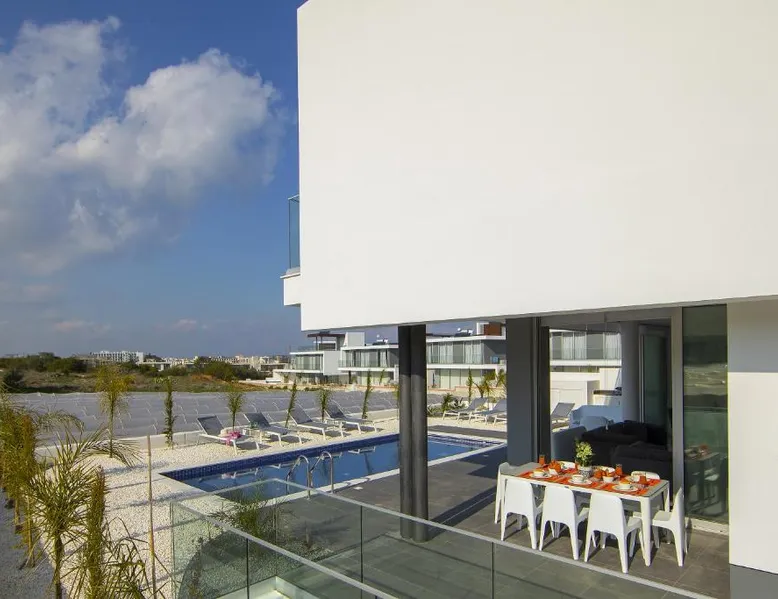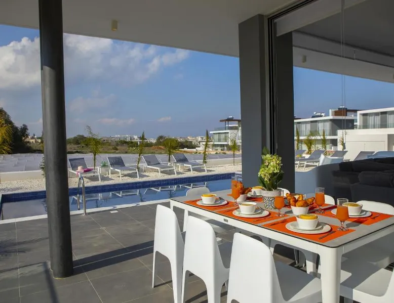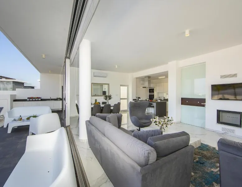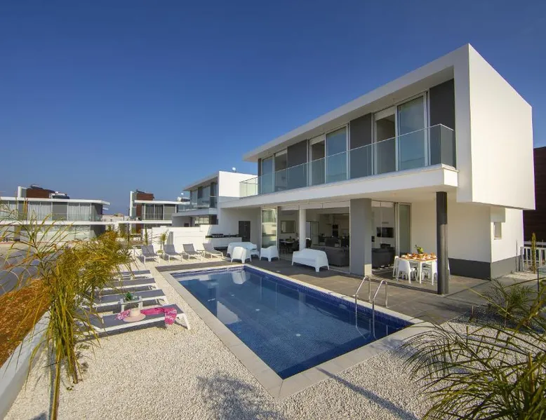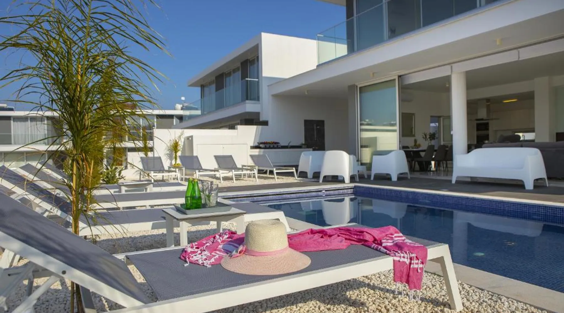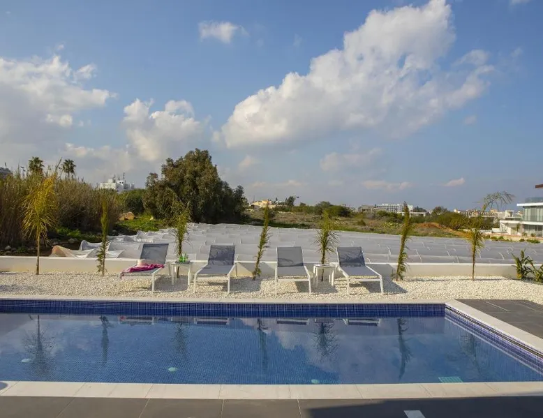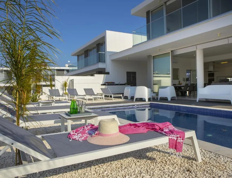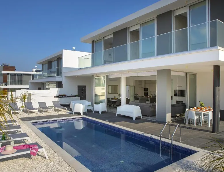 Elegant Accommodations: Protaras Olivine Pearl in Protaras offers a villa with five bedrooms and five bathrooms. The property features a spacious living room, balcony, and patio. Outstanding Facilities: Guests enjoy an outdoor swimming pool, heated pool, and barbecue facilities. Additional amenities include air-conditioning, washing machine, and free on-site private parking. Convenient Location: Located 36 mi from Larnaca International Airport, the villa is a 9-minute walk from Vryssi Beach. Nearby attractions include National Forest Park Cavo Greco (4.3 mi) and Cyprus Casinos - Ayia Napa (7.5 mi). Highly Rated by Guests: Protaras Olivine Pearl receives high ratings for its excellent service and comfortable accommodations. This villa's standout features are the private pool and fireplace. Boasting a private entrance, this air-conditioned villa features 1 living room, 5 separate bedrooms and 5 bathrooms with a shower and a hairdryer. Guests will find a stovetop, a refrigerator, a dishwasher and kitchenware in the fully equipped kitchen. The villa also comes with a barbecue. This villa has a washing machine, flat-screen TV with satellite channels, pool views, as well as wine/champagne for guests. The unit has 6 beds.