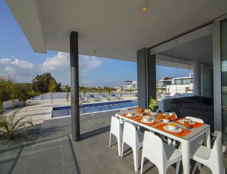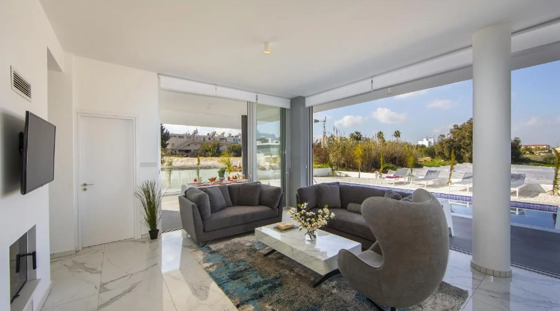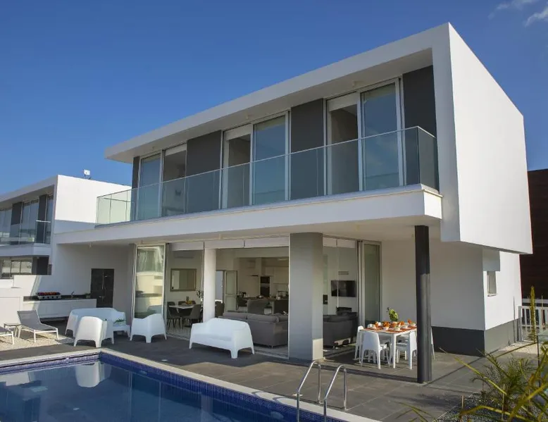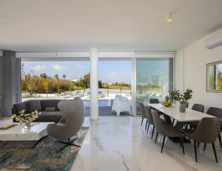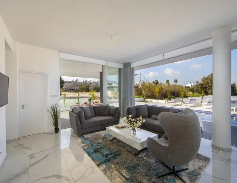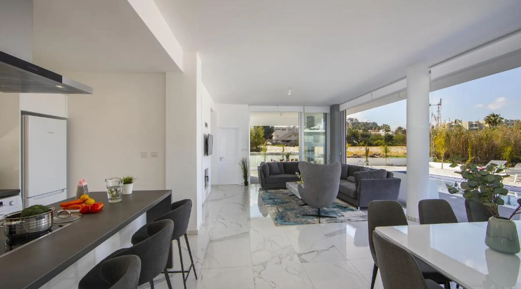 Elegant Accommodations: Protaras Olivine Pearl in Protaras offers a villa with five bedrooms and five bathrooms. The property features a spacious living room, balcony, and patio. Outstanding Facilities: Guests enjoy an outdoor swimming pool, heated pool, and barbecue facilities. Additional amenities include air-conditioning, washing machine, and free on-site private parking. Convenient Location: Located 36 mi from Larnaca International Airport, the villa is a 9-minute walk from Vryssi Beach. Nearby attractions include National Forest Park Cavo Greco (4.3 mi) and Cyprus Casinos - Ayia Napa (7.5 mi). Highly Rated by Guests: Protaras Olivine Pearl receives high ratings for its excellent service and comfortable accommodations. This villa's standout features are the private pool and fireplace. Boasting a private entrance, this air-conditioned villa features 1 living room, 5 separate bedrooms and 5 bathrooms with a shower and a hairdryer. Guests will find a stovetop, a refrigerator, a dishwasher and kitchenware in the fully equipped kitchen. The villa also comes with a barbecue. This villa has a washing machine, flat-screen TV with satellite channels, pool views, as well as wine/champagne for guests. The unit has 6 beds.