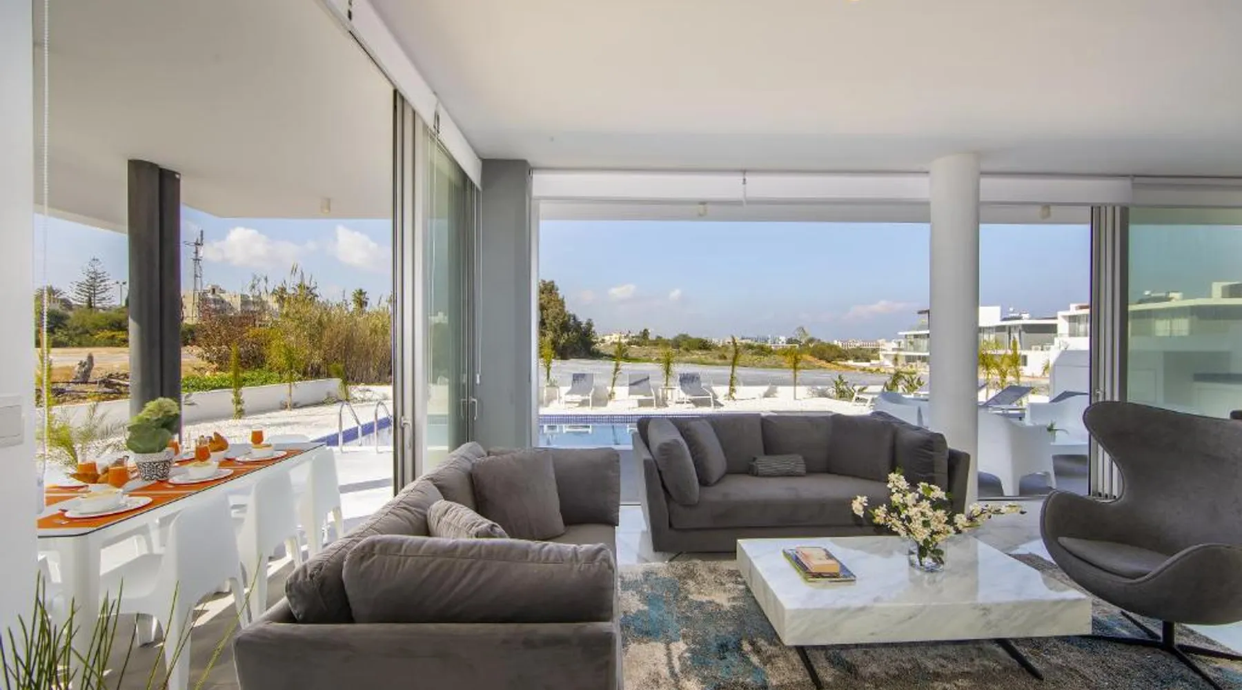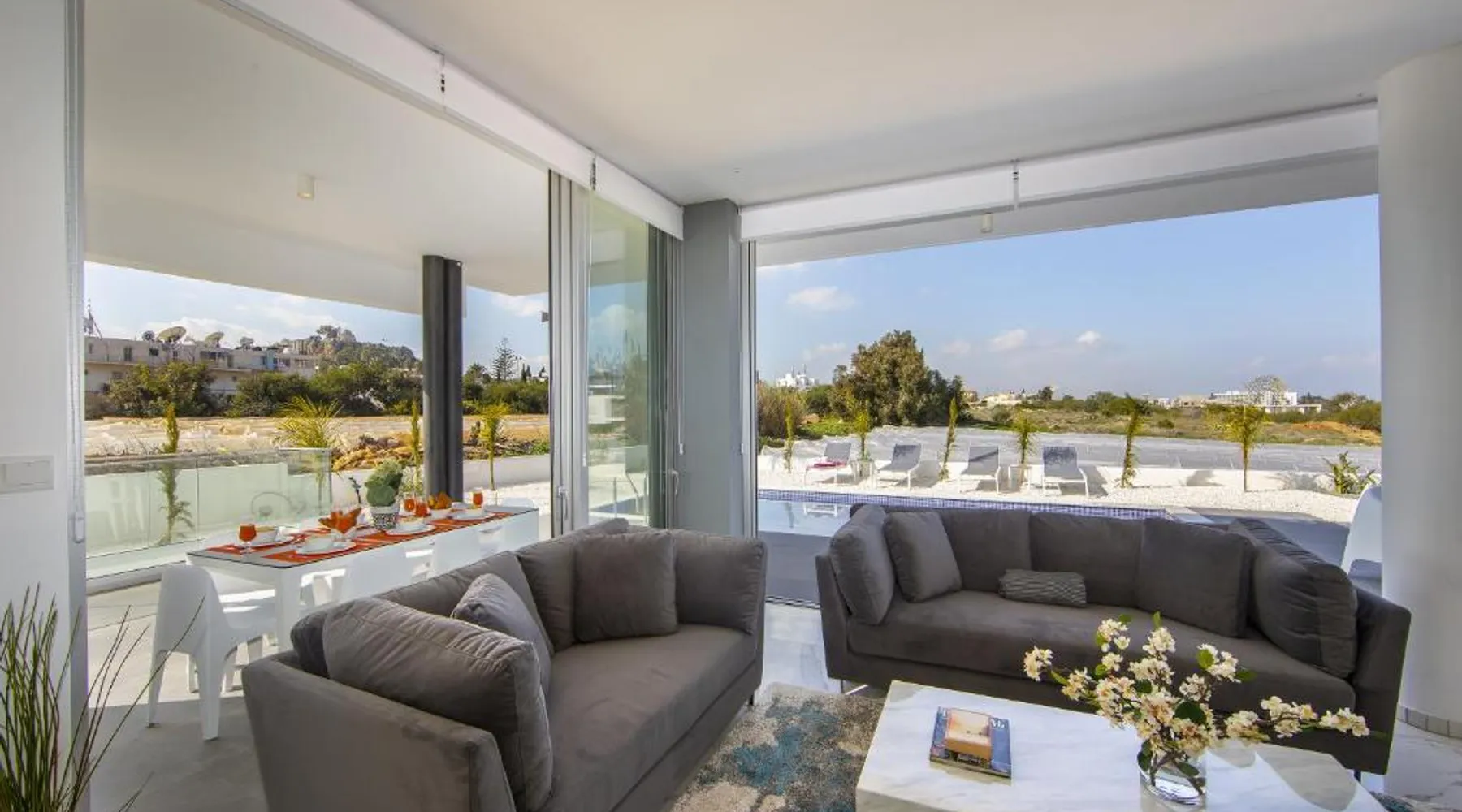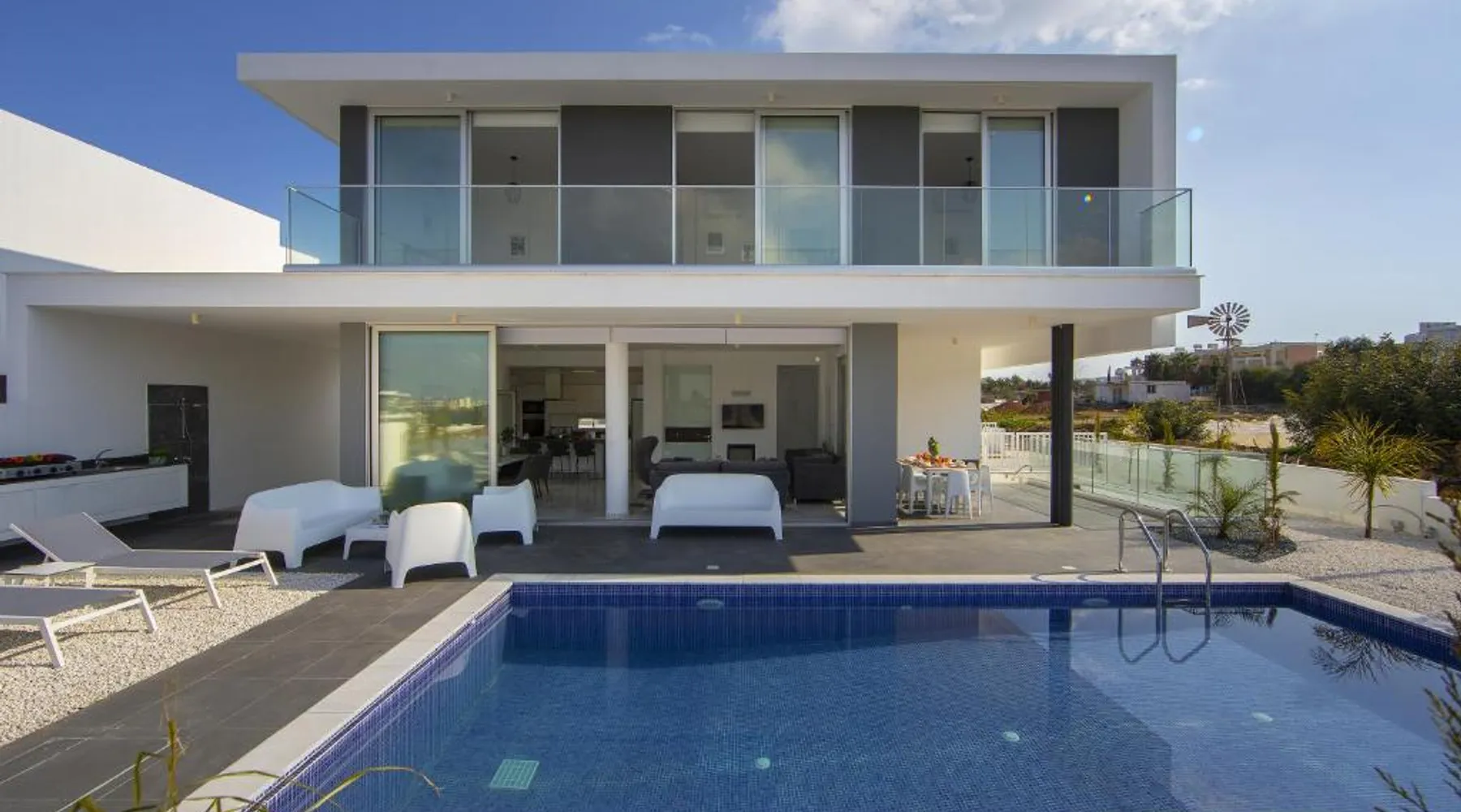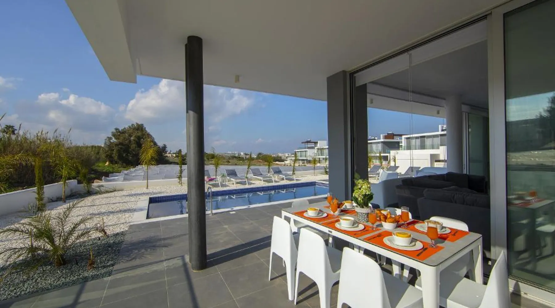 Elegant Accommodations: Protaras Olivine Pearl in Protaras offers a villa with five bedrooms and five bathrooms. The property features a spacious living room, balcony, and patio. Outstanding Facilities: Guests enjoy an outdoor swimming pool, heated pool, and barbecue facilities. Additional amenities include air-conditioning, washing machine, and free on-site private parking. Convenient Location: Located 36 mi from Larnaca International Airport, the villa is a 9-minute walk from Vryssi Beach. Nearby attractions include National Forest Park Cavo Greco (4.3 mi) and Cyprus Casinos - Ayia Napa (7.5 mi). Highly Rated by Guests: Protaras Olivine Pearl receives high ratings for its excellent service and comfortable accommodations. This villa's standout features are the private pool and fireplace. Boasting a private entrance, this air-conditioned villa features 1 living room, 5 separate bedrooms and 5 bathrooms with a shower and a hairdryer. Guests will find a stovetop, a refrigerator, a dishwasher and kitchenware in the fully equipped kitchen. The villa also comes with a barbecue. This villa has a washing machine, flat-screen TV with satellite channels, pool views, as well as wine/champagne for guests. The unit has 6 beds.