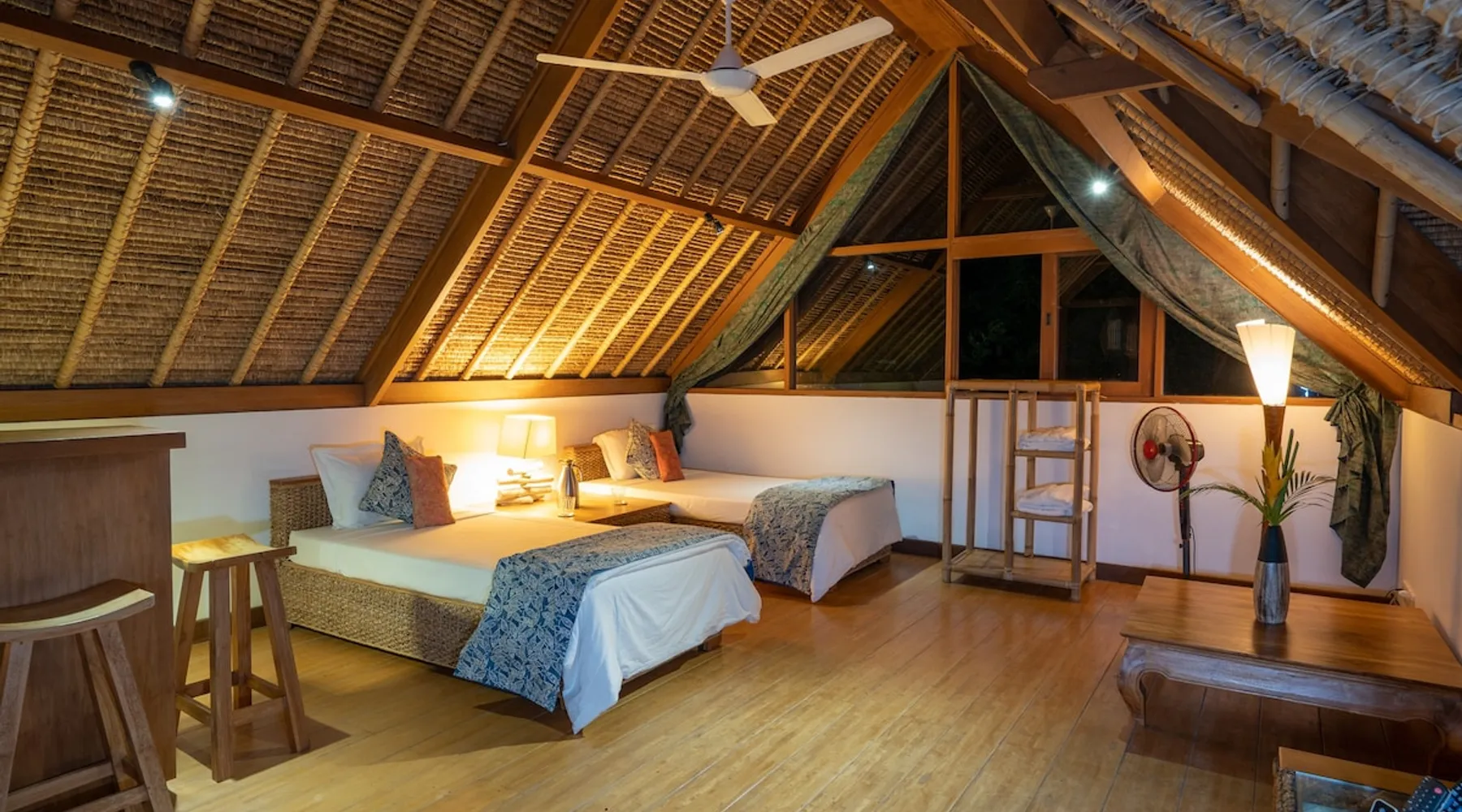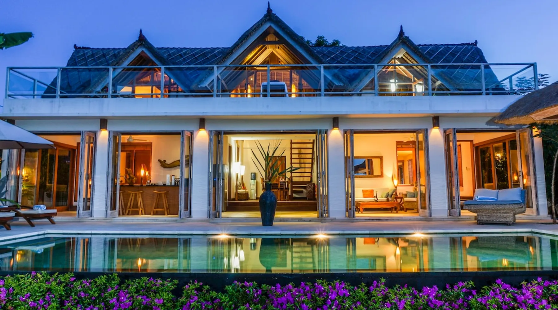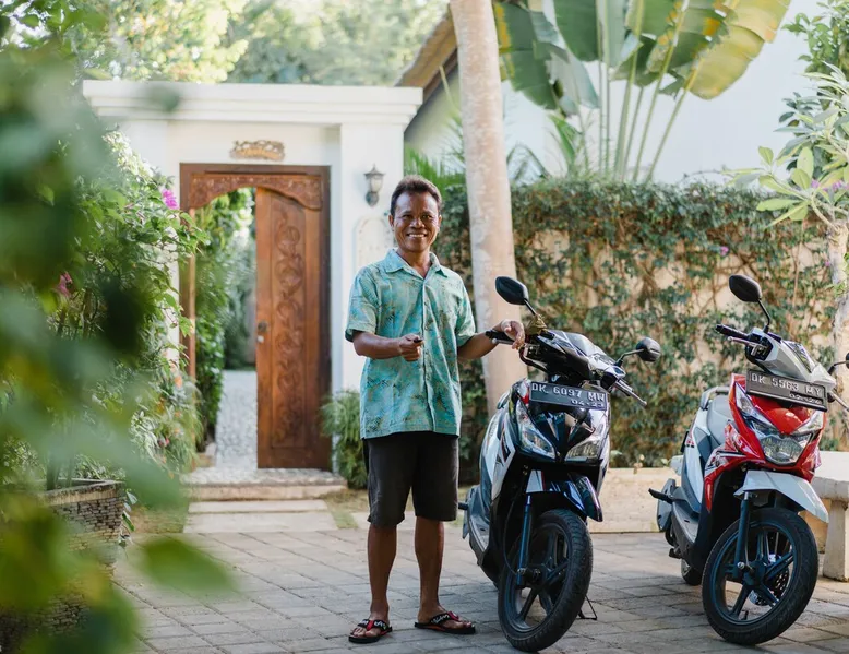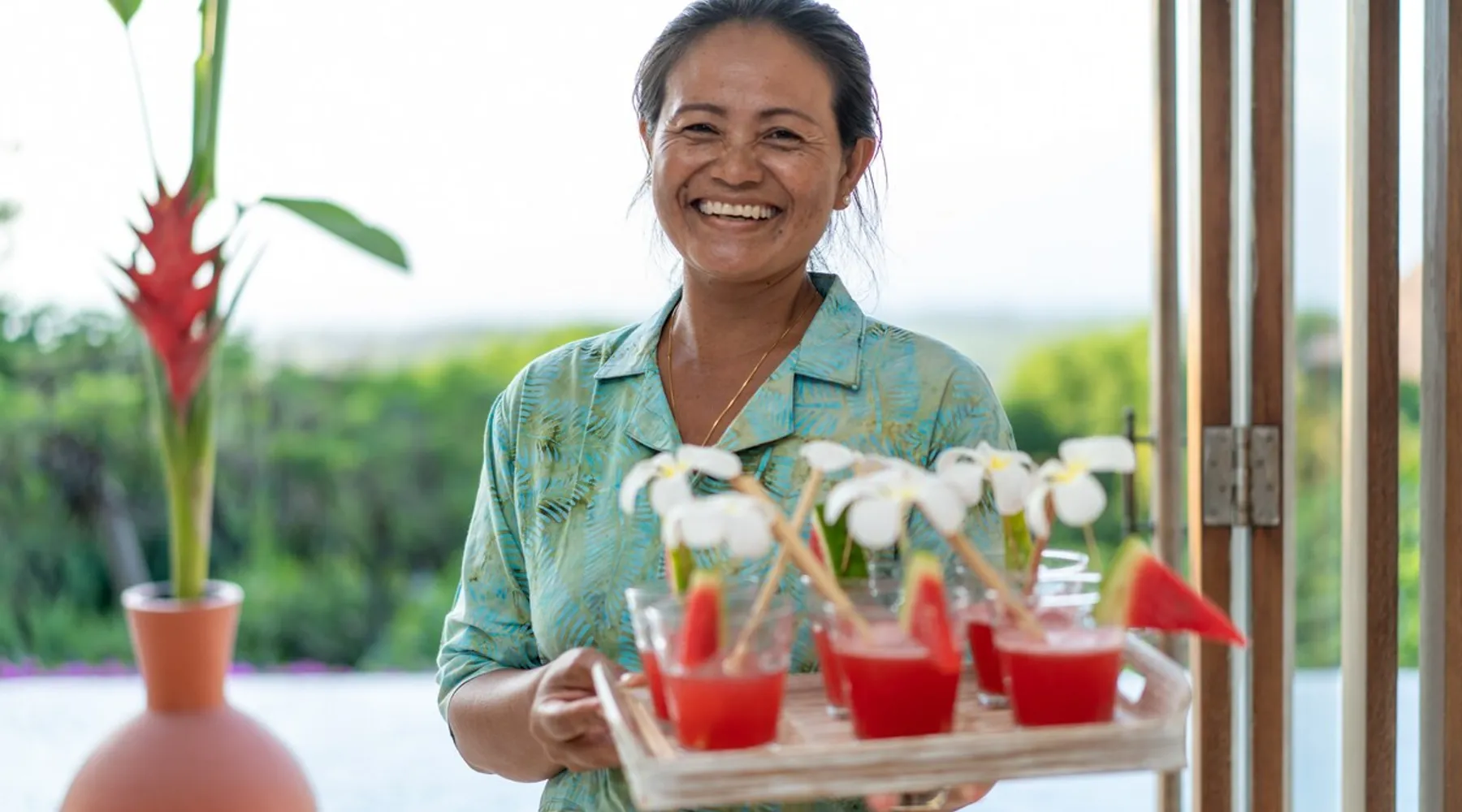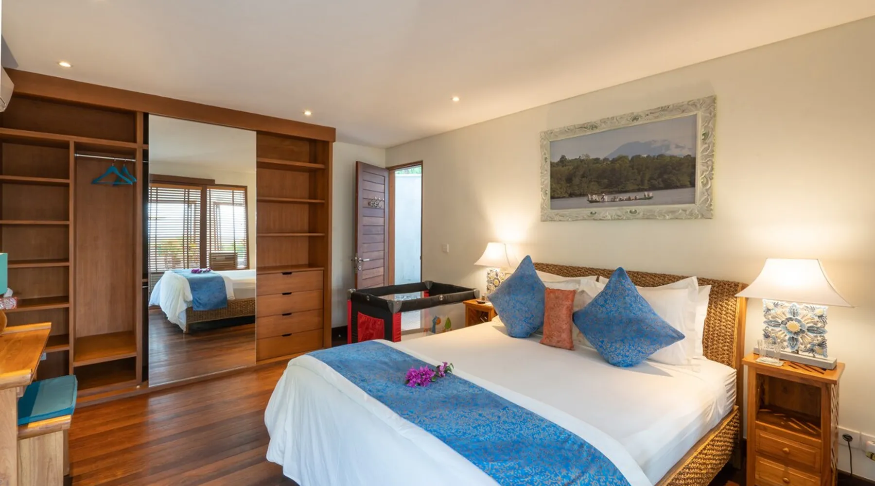Villa Nusa is located on the most exclusive hillside on Nusa Lembongan and offers stylish, versatile, accommodation. This peaceful, paradise hideaway has a 10 meter infinity pool, tropical garden and amazing views of the island, ocean and east coast of Bali. Villa Nusa is perfect for families, groups of friends or couples who want privacy. The flexible space means the Villa can accommodate up to 8 guests. Experience Lembongan with exceptional service and a touch of luxury at Villa Nusa. The space Villa Nusa offers guests their own spacious, luxury, well designed, and equipped peaceful haven on the beautiful laid back island of Nusa Lembongan. The infinity pool, comfortable lazy gazebo, sunloungers and snuggle chairs invite guests to relax and enjoy the views in their own piece of private paradise. There are two ground floor master suites with indoor and outdoor bath and shower rooms plus a mezzanine level bedroom that has air conditioning, screened doors to ensure privacy and an ensuite shower room. Additionally on the mezzanine level is a large informal lounge area with bar, 43" flat SMART TV, fridge, and two large sofas that can be made into another two single beds or another kingsize double (fan cooled). The kitchen is fully equipped for guests to use. We can stock the fridge for you, restaurants on the island will deliver direct to the villa, we can arrange for pick ups and drop offs if you want to dine out anywhere on the island or we can have a personal chef cater for you in-house! You choose and we can make it happen. Guest access The Villa is rented as a single unit and guests have their own private access to all the facilities. Other things to note Our wonderful Housekeeper Komang gives incredible Balinese massages on the villa's 1st floor veranda with stunning island views. If you would like to book a massage during your stay, let us know!