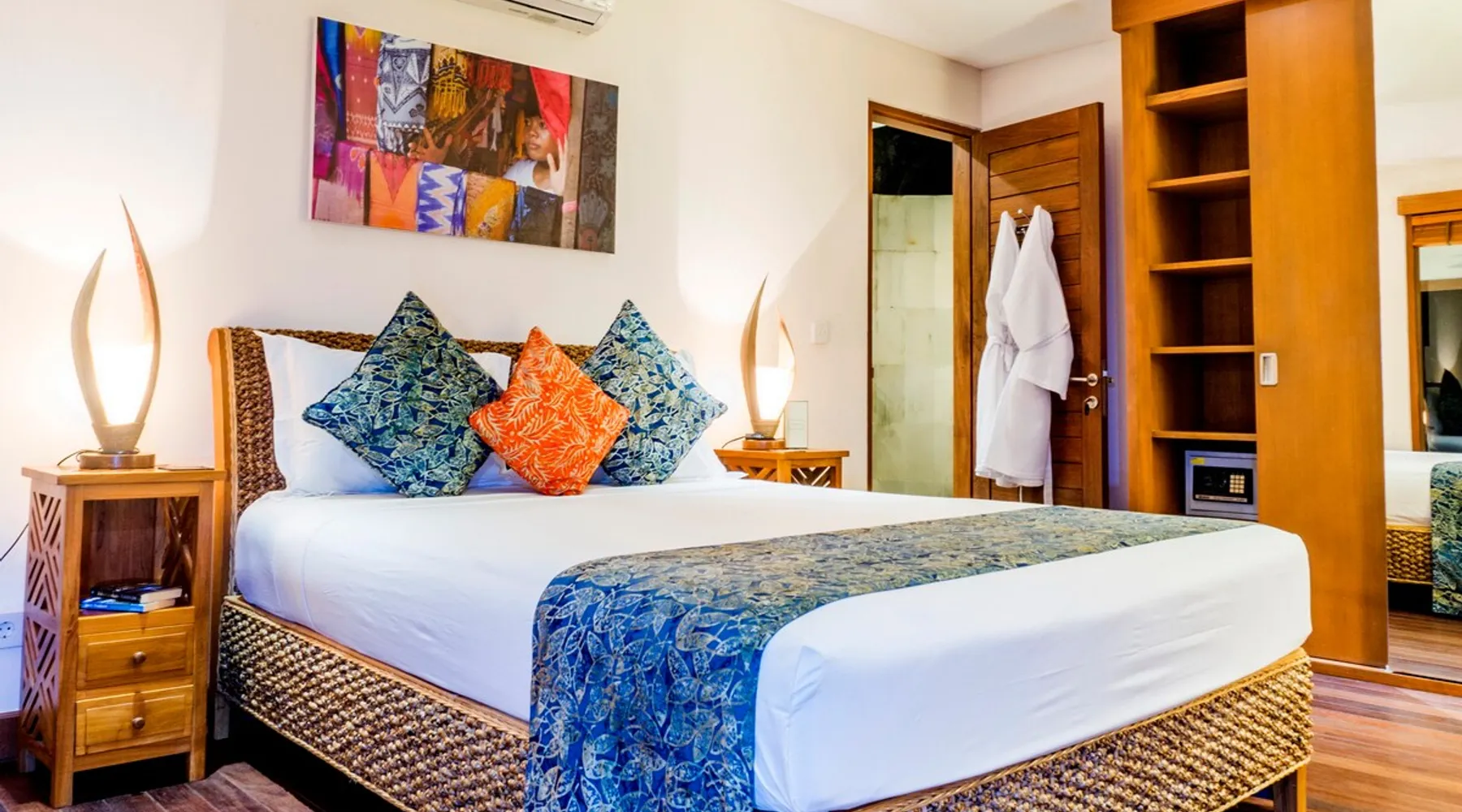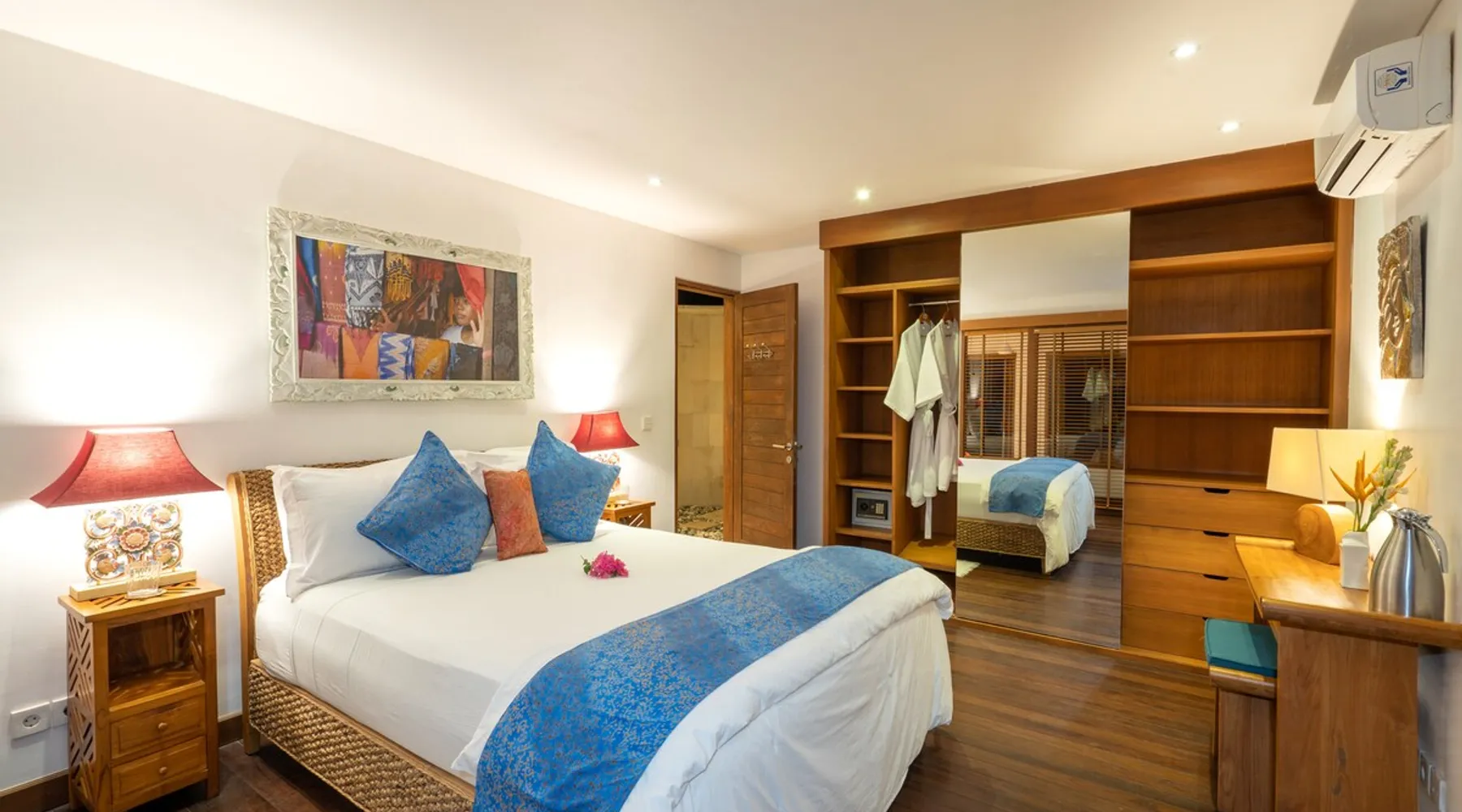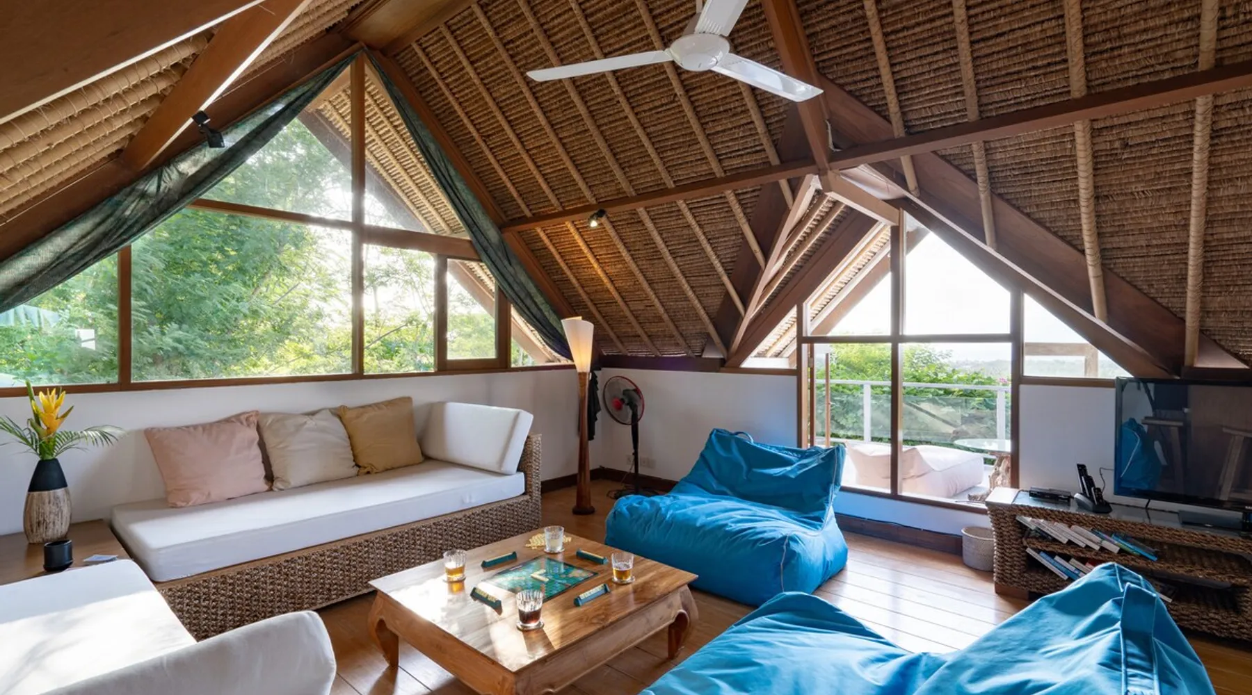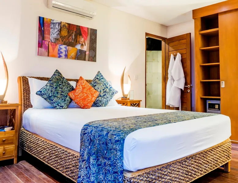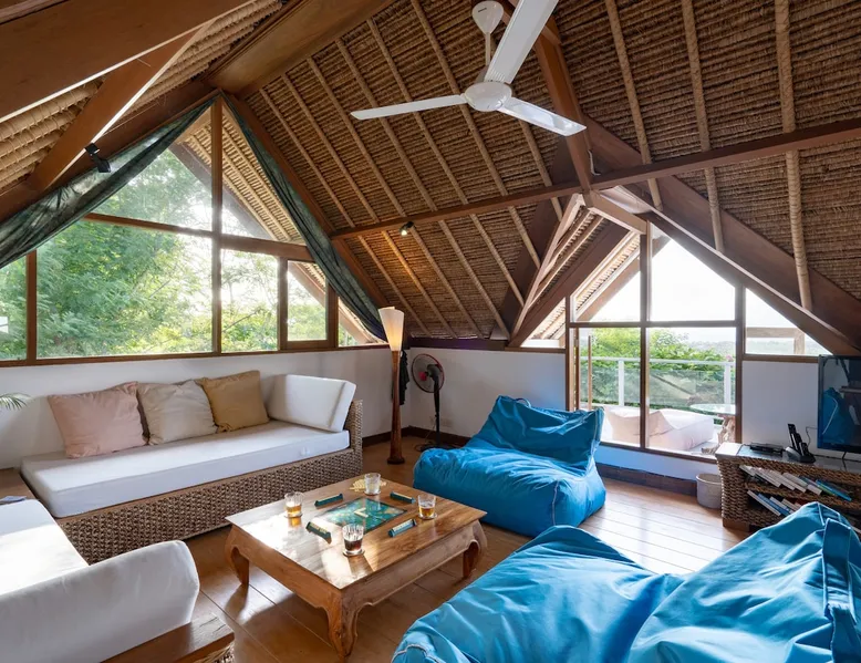 Villa Nusa is located on the most exclusive hillside on Nusa Lembongan and offers stylish, versatile, accommodation. This peaceful, paradise hideaway has a 10 meter infinity pool, tropical garden and amazing views of the island, ocean and east coast of Bali. Villa Nusa is perfect for families, groups of friends or couples who want privacy. The flexible space means the Villa can accommodate up to 8 guests. Experience Lembongan with exceptional service and a touch of luxury at Villa Nusa. The space Villa Nusa offers guests their own spacious, luxury, well designed, and equipped peaceful haven on the beautiful laid back island of Nusa Lembongan. The infinity pool, comfortable lazy gazebo, sunloungers and snuggle chairs invite guests to relax and enjoy the views in their own piece of private paradise. There are two ground floor master suites with indoor and outdoor bath and shower rooms plus a mezzanine level bedroom that has air conditioning, screened doors to ensure privacy and an ensuite shower room. Additionally on the mezzanine level is a large informal lounge area with bar, 43" flat SMART TV, fridge, and two large sofas that can be made into another two single beds or another kingsize double (fan cooled). The kitchen is fully equipped for guests to use. We can stock the fridge for you, restaurants on the island will deliver direct to the villa, we can arrange for pick ups and drop offs if you want to dine out anywhere on the island or we can have a personal chef cater for you in-house! You choose and we can make it happen. Guest access The Villa is rented as a single unit and guests have their own private access to all the facilities. Other things to note Our wonderful Housekeeper Komang gives incredible Balinese massages on the villa's 1st floor veranda with stunning island views. If you would like to book a massage during your stay, let us know!