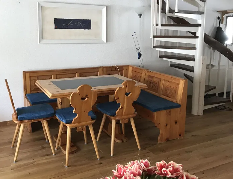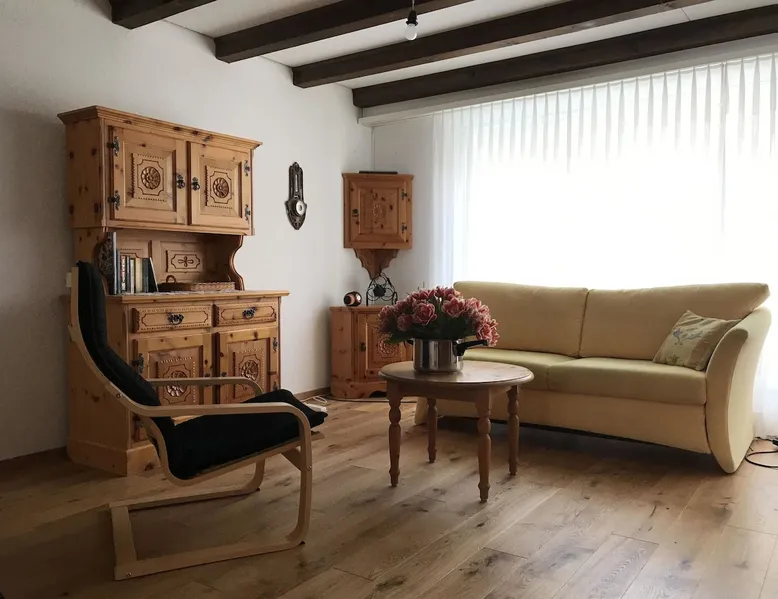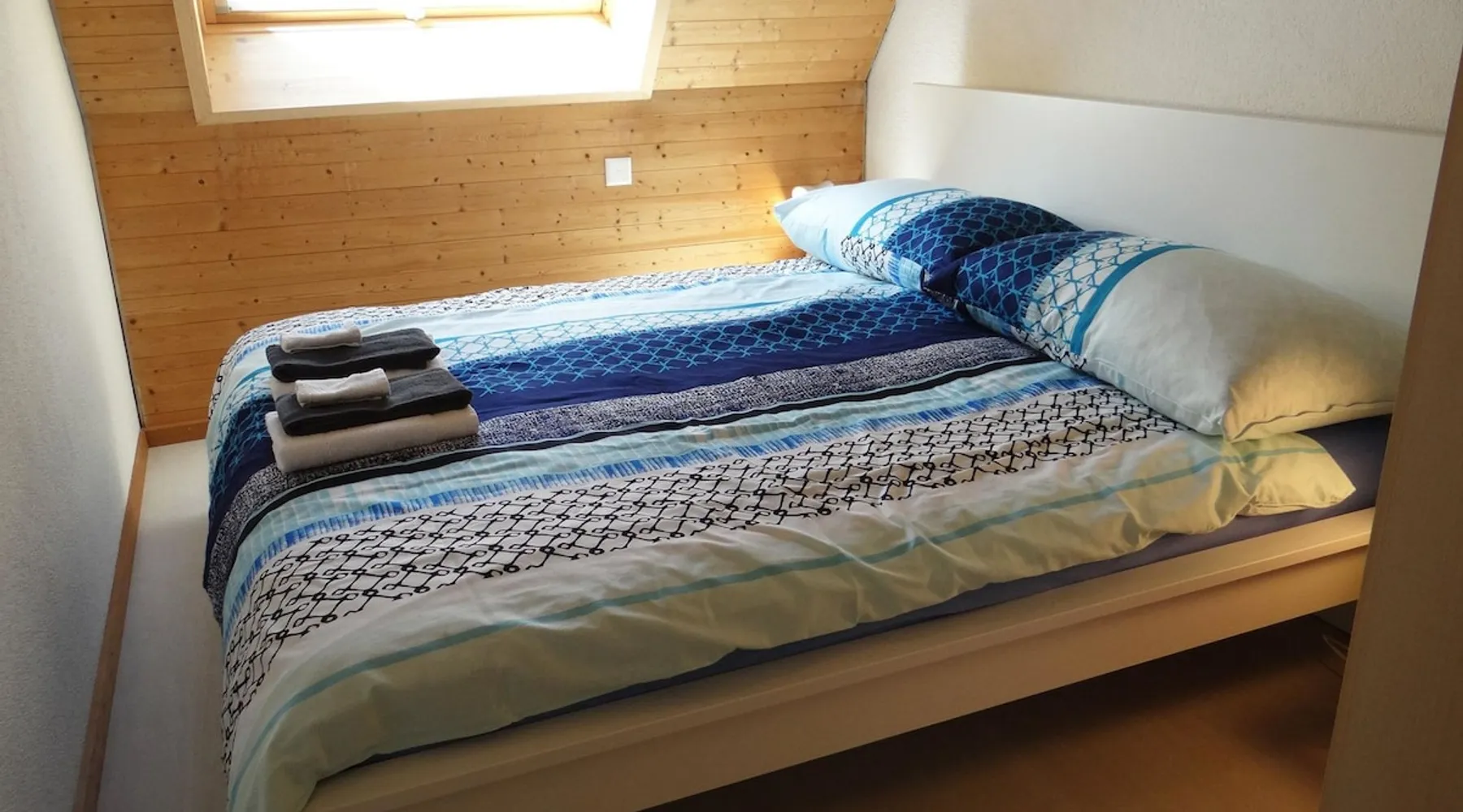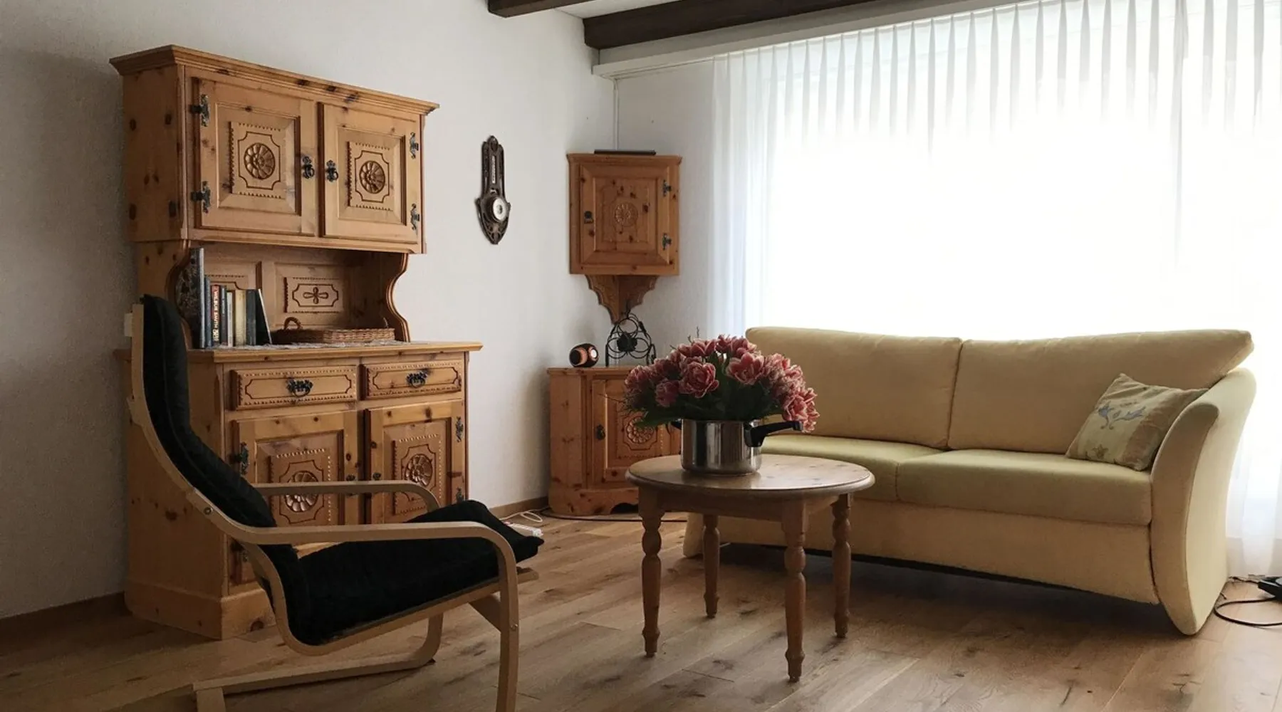 All discounts are already included, please go ahead and book the property if your travel dates are available. Below please see all the listing details 90 m2. More information by the provider: Bright and cosy 3-room flat on 2 floors (90 m2) in terraced house in quiet location. Garden seating area. In winter ski bus stop nearby. The apartment for max. The space 4 persons is comfortably furnished and offers a living room with dining area, TV, free WIFI, sofa and Swedish stove, an open kitchen with Nespesso coffee machine and dishwasher. Small toilet. On the upper floor (accessible via open spiral staircase) there is 1 double room (160cm, 1 duvet) and a sleeping room with 2 single beds, bathroom/WC. Washing machine. Garden seating place (88 m2). 1 parking space in underground garage. NON-SMOKING APARTMENT. Pets not allowed. 3-room apartment on 2 floors in terraced house: living room, kitchen, WC, 1 room with french bed (160cm, 1 duvet), 1 room with 2 single beds, bathroom/WC. Included: Bath- and kitchen towels, local tax. Excluded: Baby cot CHF 20.00, key deposit CHF 300.00 by credit card. - Included services: Bed linen (initial supply) (Valid until 2027 May 15) Final cleaning (Basic cleaning is always carried out by the guest) (Valid until 2027 May 15) Local tax Additional service charges may have to be paid locally on-site, see house rules and house manual for details. Please don't hesitate to contact us should you have any questions. Thank you. Other things to note 1. Availability All open periods are instantly bookable. Please choose your dates and confirm your reservation without waiting for host approval. 2. Pricing We always offer you our best price and are unable to offer additional discounts. Please select your preferred travel dates to view the final price. Optional services described in the house rules can be booked after successful reservation by contacting us directly. 3. Check-in information You will receive the travel information with the exact address of the listing, the location for key collection and the contact details of your keyholder 28 days before arrival only if the pre check-in has been completed. In order to ensure a smooth handover of keys, we kindly ask you to contact the key holder by email 7 days before arrival, especially if your arrival takes place outside the stated check-in times. Please note, without an appointment, arrivals outside the stated check-in times will not be possible. 4. House Rules We share all property details in the full description. Please read both the description and the house rules. If available you will find optional amenities described in the house rules, which can be requested by contacting us directly.