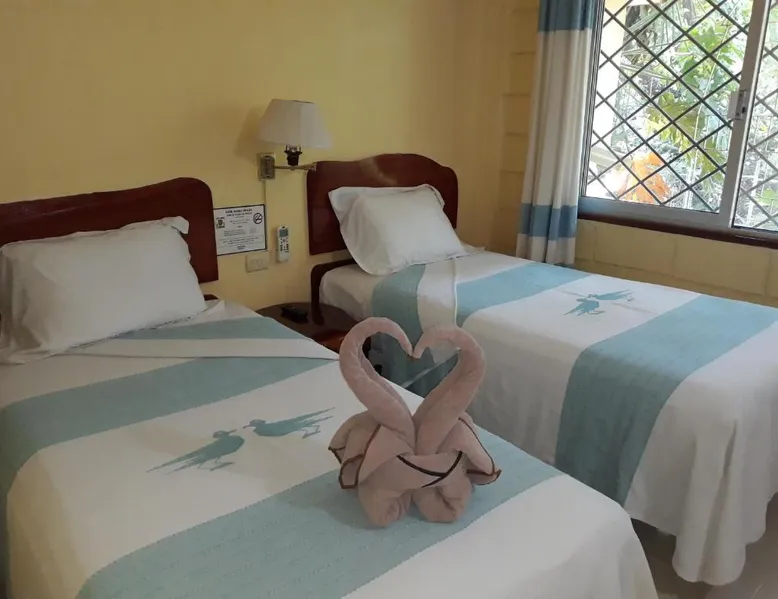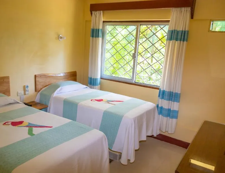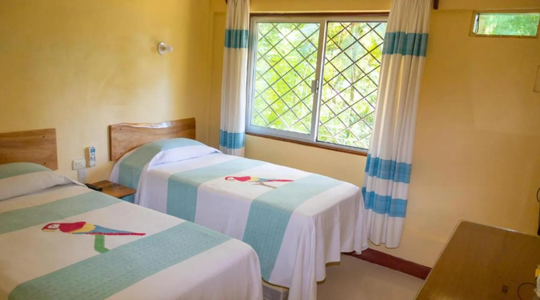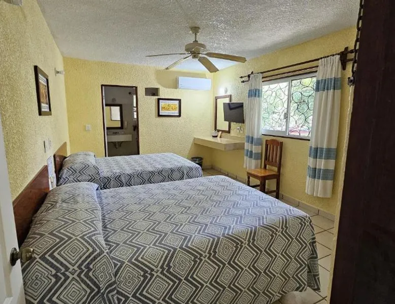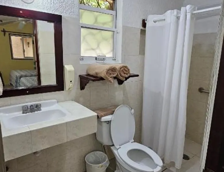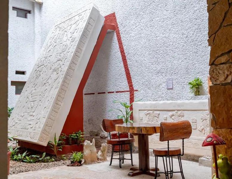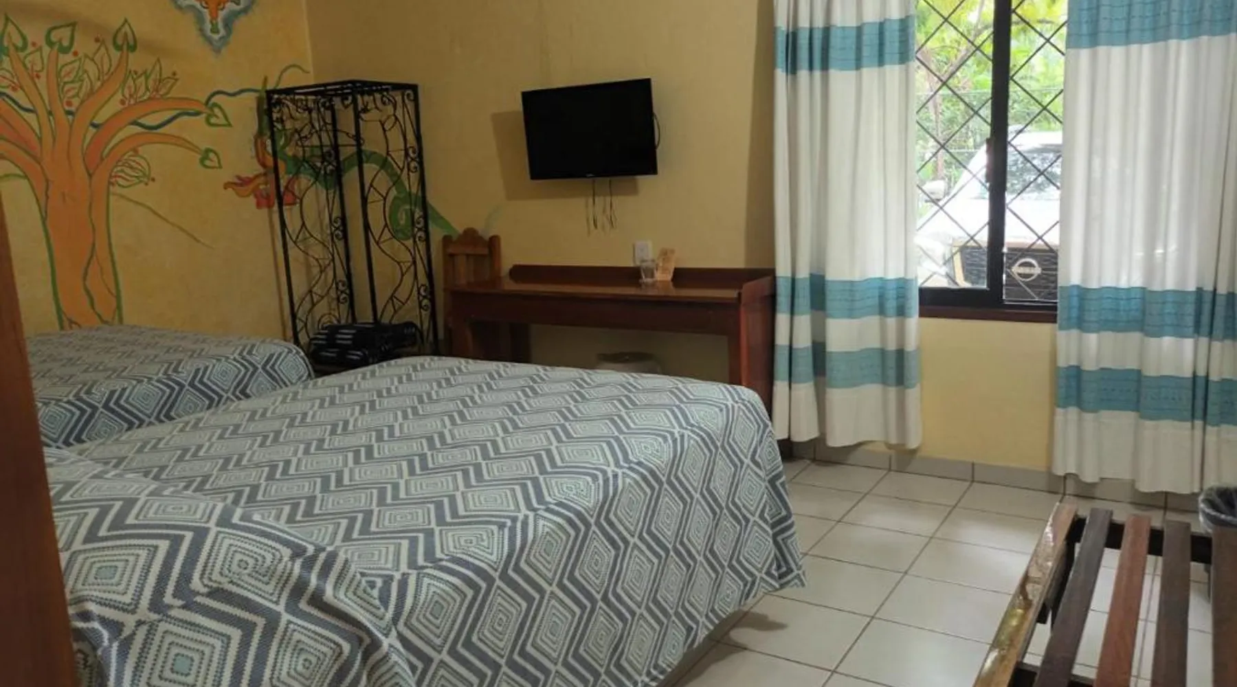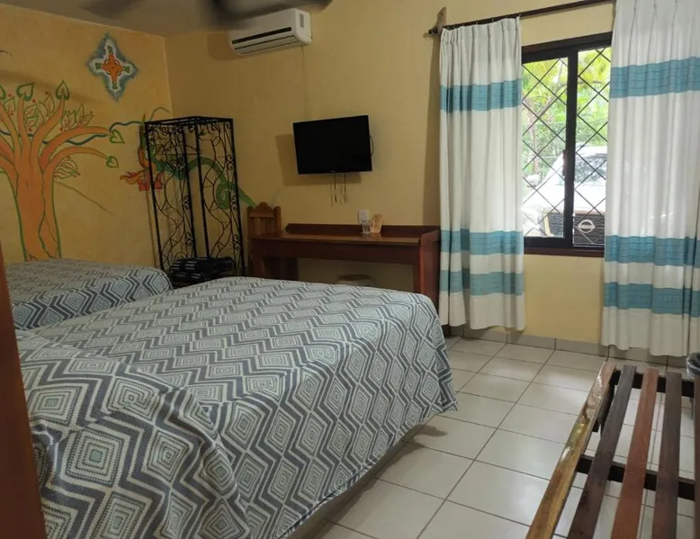 Comfortable Accommodations: Hotel - Museo Xibalba in Palenque offers family rooms with air-conditioning, private bathrooms, and free WiFi. Each room includes a balcony or terrace with garden views, ensuring a pleasant stay. Dining Experience: The modern, family-friendly restaurant serves Mexican cuisine for lunch. Guests can also enjoy breakfast in the room or dine at the outdoor seating area. Convenient Facilities: The hotel features a sun terrace, coffee shop, and free on-site private parking. Additional services include a 24-hour front desk, daily housekeeping, and a tour desk. Nearby Attractions: Palenque Ruins are 5 mi away, Aluxes EcoPark & Zoo 2.2 mi, and Misol-Ha Waterfalls 12 mi from the property. Central Bus Station foreign busses are a 6-minute walk. This spacious room includes free Wi-Fi, cable TV and a ceiling fan. The private bathroom includes toiletries, a hairdryer and 24-hour hot water.