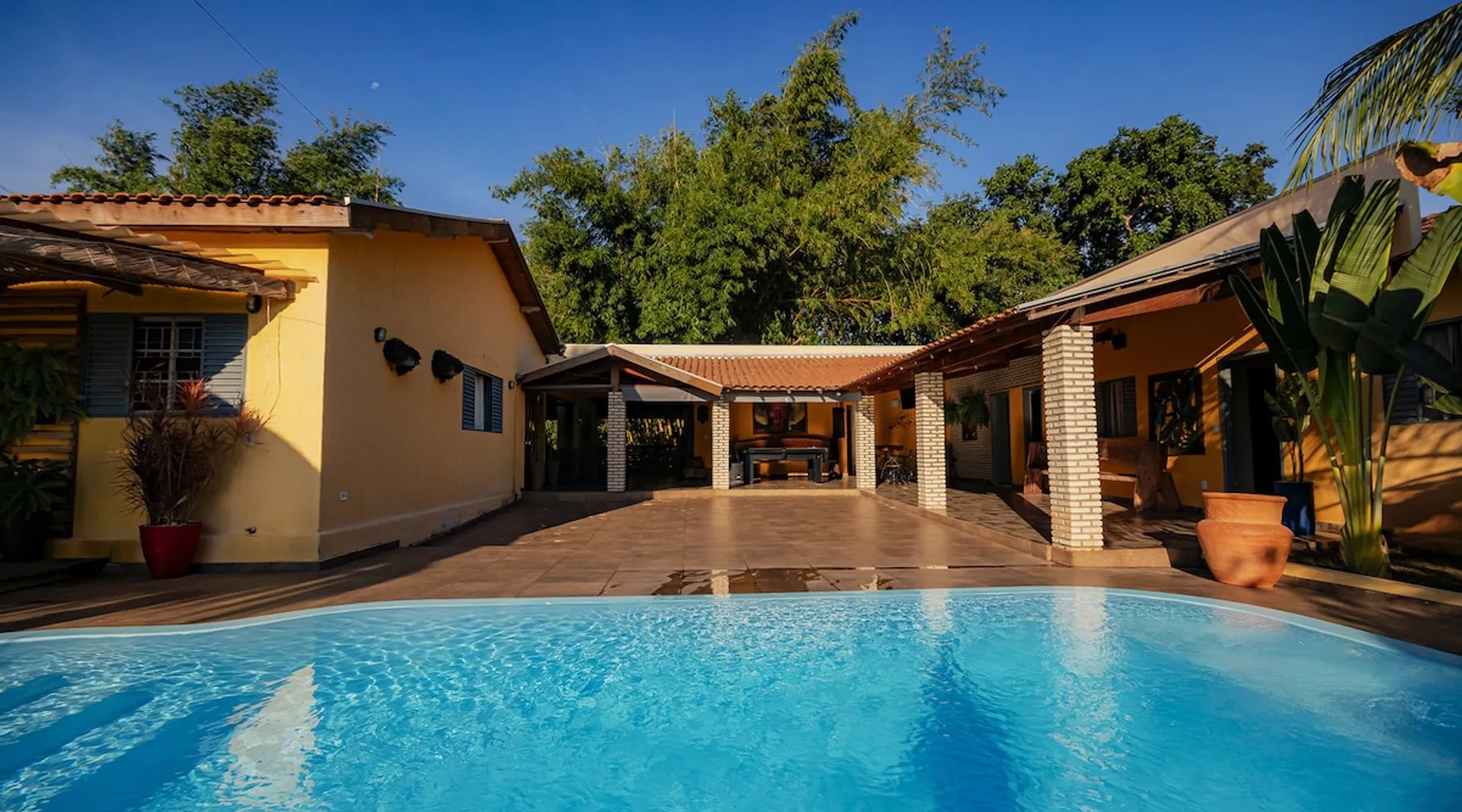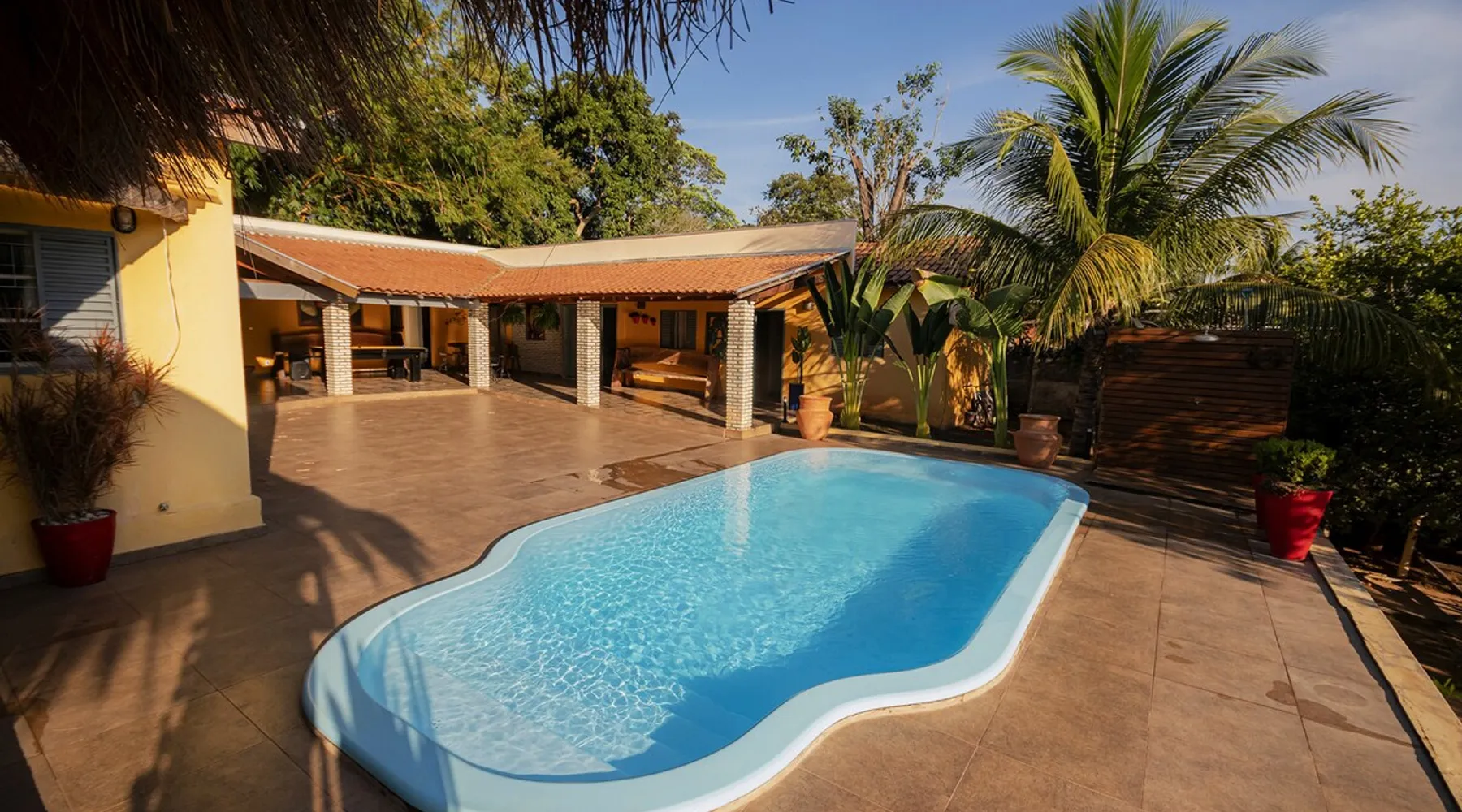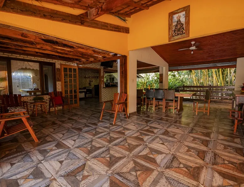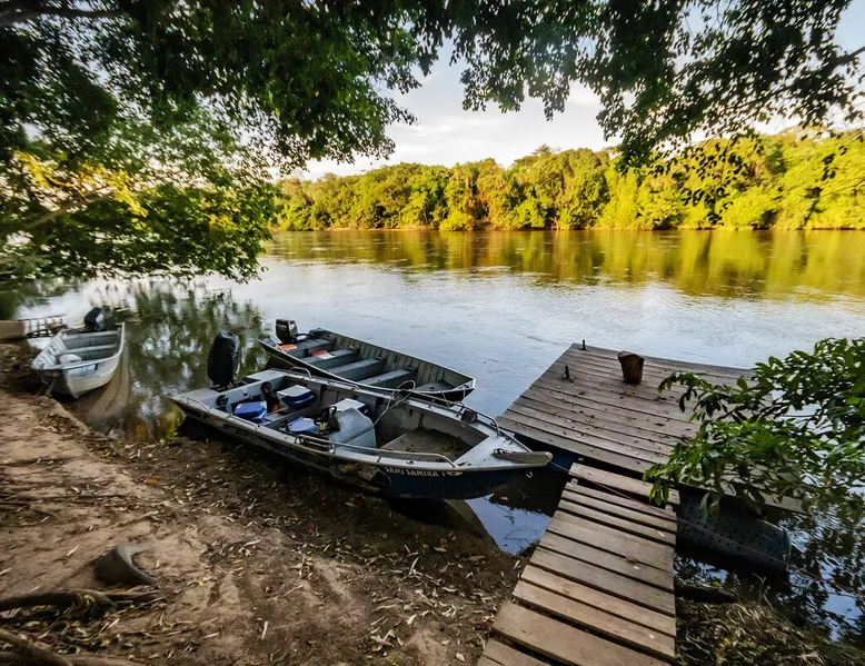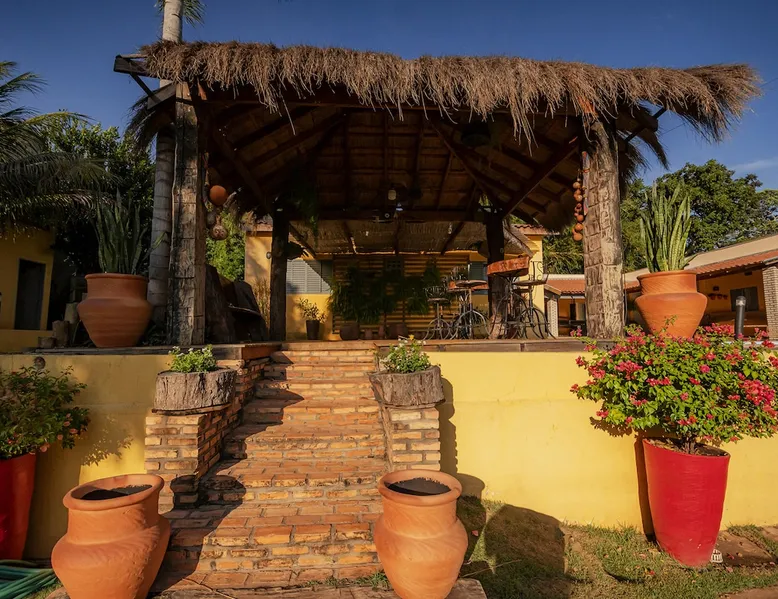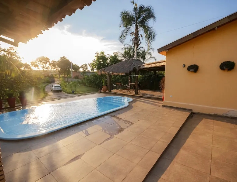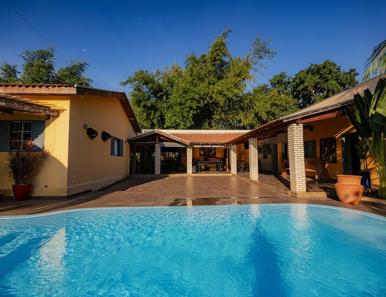 Your trip will be complete by staying at this cozy fishing ranch in Coxim, Mato Grosso do Sul, a pantaneira town, where you have the famous “Pé de Cedro”, which borders the Taquari River. Located in a quiet environment, by the river and surrounded by vegetation, the fishing grounds has 5 bedrooms, 3 bathrooms, as well as a swimming pool, sun loungers, barbecue, covered terrace, boat and speedboat for you to relax and have fun. Your pet is more than welcome here. Book your stay now! The space Your trip will be complete by staying at this cozy fishing ranch in Coxim, Mato Grosso do Sul, a pantaneira town, where you have the famous “Pé de Cedro”, which borders the Taquari River. Located in a quiet environment, by the river and surrounded by vegetation, the fishing grounds has 5 bedrooms, 3 bathrooms, as well as a swimming pool, sun loungers, barbecue, covered terrace, boat and speedboat for you to relax and have fun. Your pet is more than welcome here. Book your stay now! - Gourmet area with barbecue grill, wood stove, duplex refrigerator, vertical freezer and picnic table - Wifi 50 Mb - 5 uncovered parking spots - Air conditioning - Bedrooms have a closet, duvet / blanket, and mattress protector - In bedrooms 1 to 3 there is 1 double bed and 2 single beds (each) - In room 4 there is 1 double bed - In room 5 there is 1 double bed and 1 single bed - The bathrooms have an electric shower, 2 with a glass box - Highly equipped, the kitchen has several utensils for preparing meals, including stove, fridge, toaster and counter - Dining tables - The living room is outside and very large, it is on the covered balcony of the ranch, in it you can find TV, pool table, several benches, tables and wooden chairs - Bed linen and bath linens - Washing machine, iron and ironing board - Outdoor shower - We provide cook and barbecue services. In addition to boat, speedboat and pirangueiro rental, which are charged separately (see conditions) - In front of the property there is a river, where it is possible to do sport fishing and find fish of more than 1.5 meters high and 50 kg. It is also possible to visit waterfalls and take buoy rides (additional cost) - 110 V sockets - We take the opportunity to say that the stay is for the number of people informed at the time of booking. Any difference in the amount of guest and/or visit can be extra cost and must always be informed to the property manager before the time of check-in