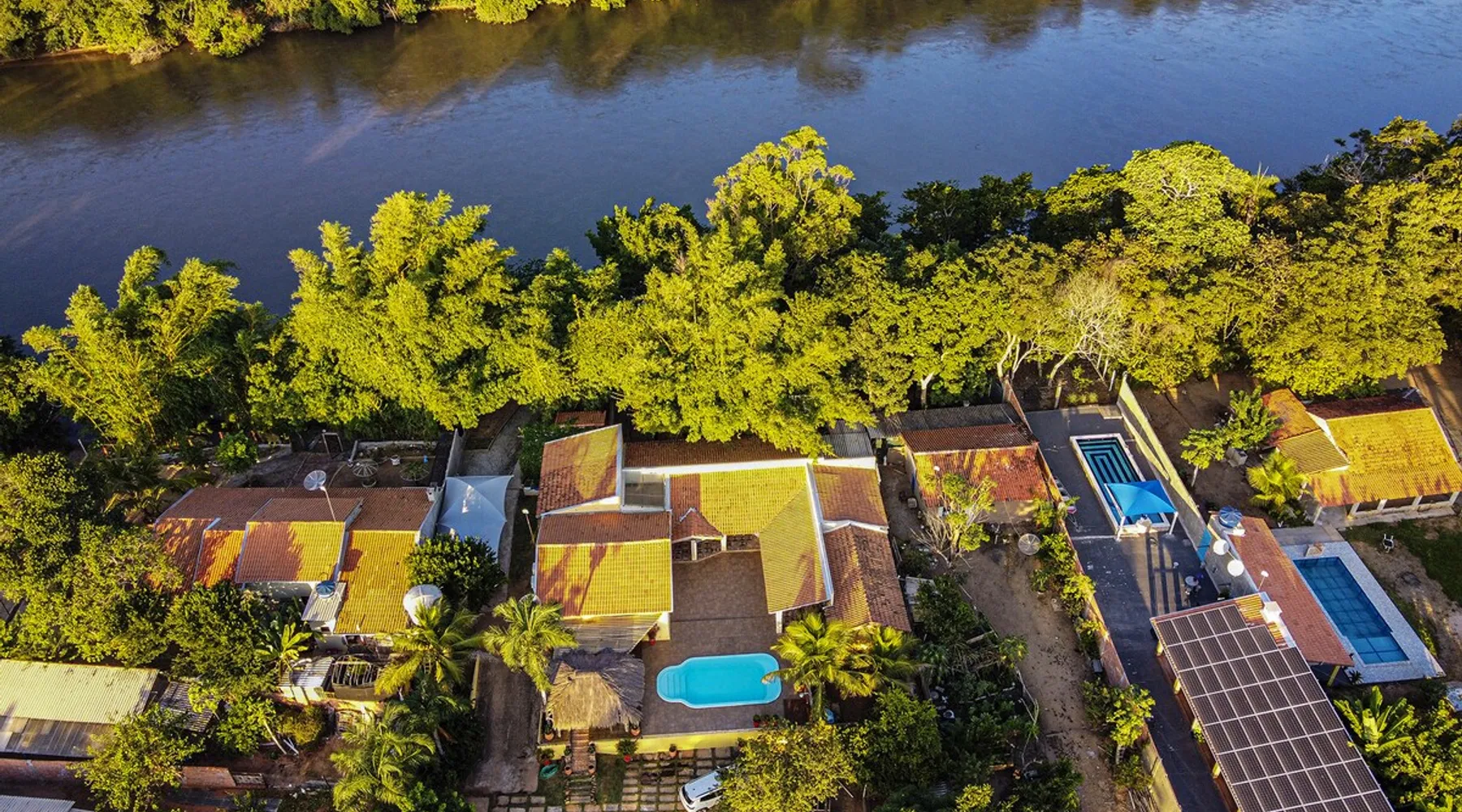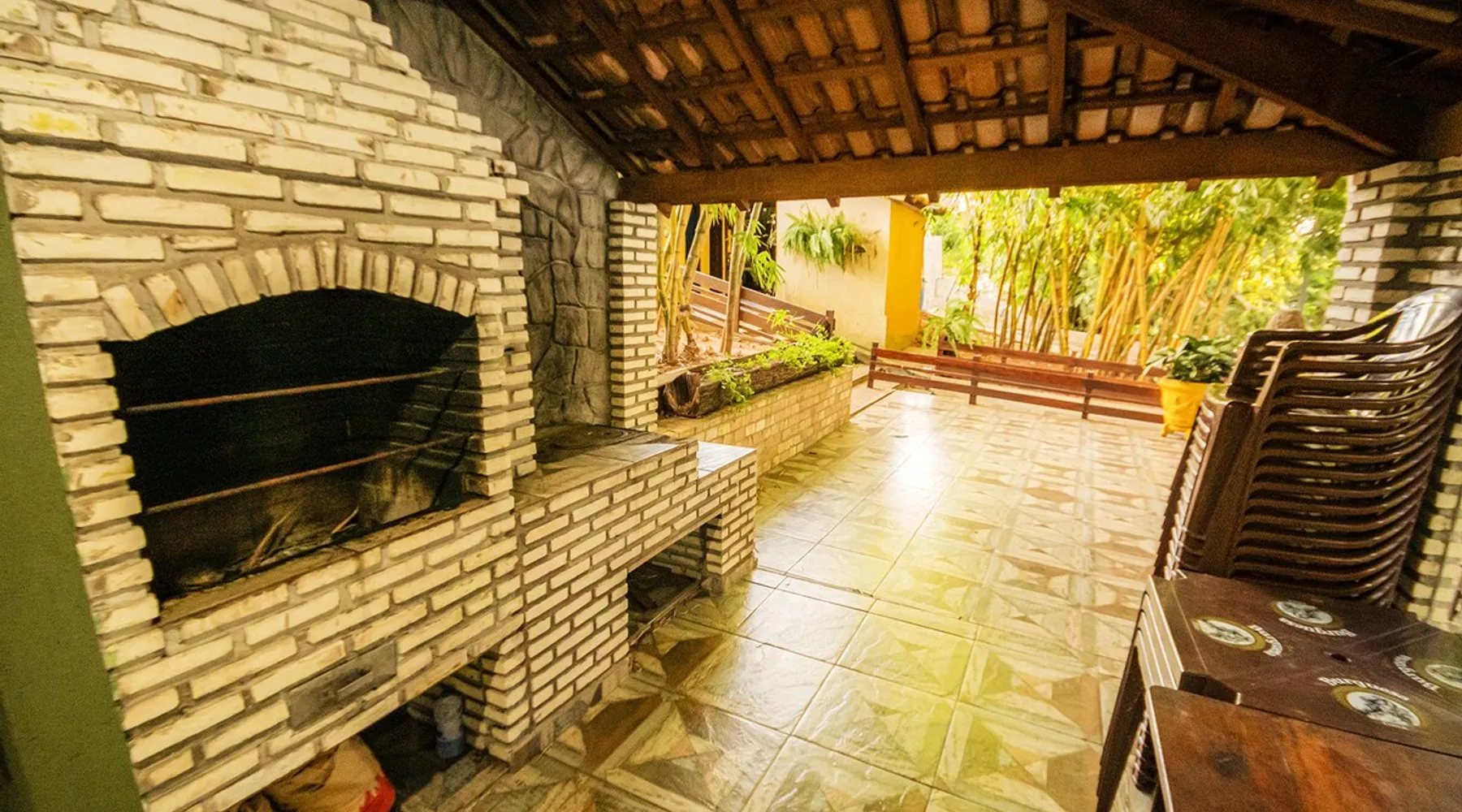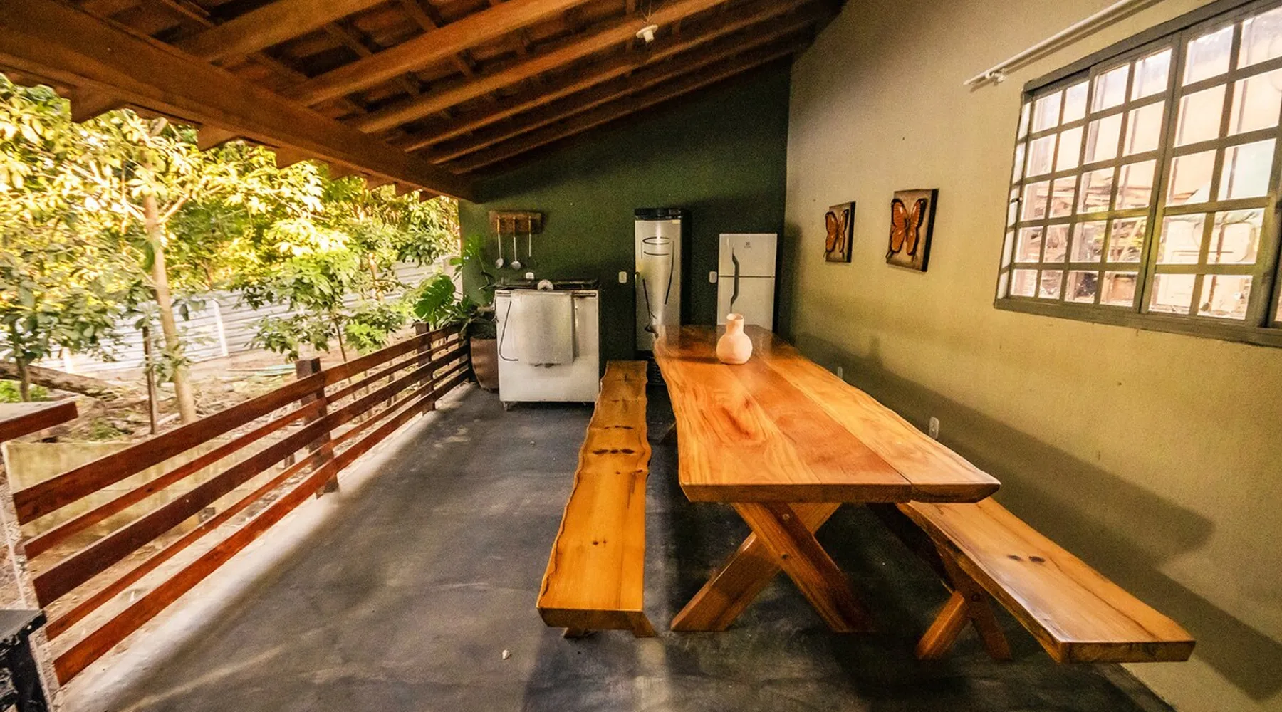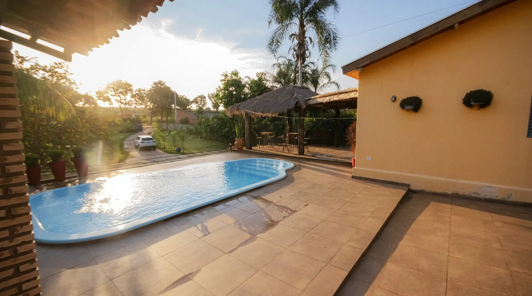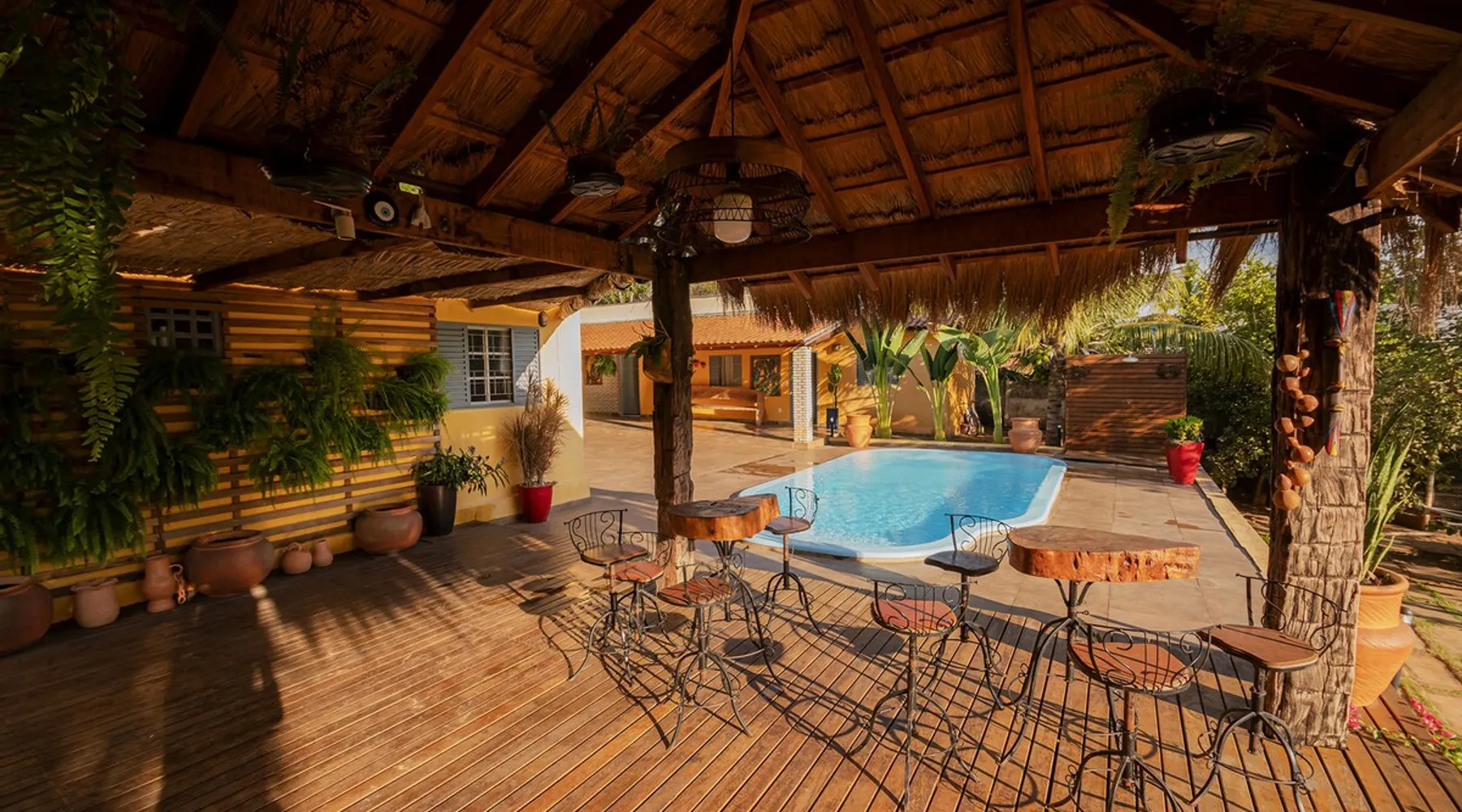 Your trip will be complete by staying at this cozy fishing ranch in Coxim, Mato Grosso do Sul, a pantaneira town, where you have the famous “Pé de Cedro”, which borders the Taquari River. Located in a quiet environment, by the river and surrounded by vegetation, the fishing grounds has 5 bedrooms, 3 bathrooms, as well as a swimming pool, sun loungers, barbecue, covered terrace, boat and speedboat for you to relax and have fun. Your pet is more than welcome here. Book your stay now! The space Your trip will be complete by staying at this cozy fishing ranch in Coxim, Mato Grosso do Sul, a pantaneira town, where you have the famous “Pé de Cedro”, which borders the Taquari River. Located in a quiet environment, by the river and surrounded by vegetation, the fishing grounds has 5 bedrooms, 3 bathrooms, as well as a swimming pool, sun loungers, barbecue, covered terrace, boat and speedboat for you to relax and have fun. Your pet is more than welcome here. Book your stay now! - Gourmet area with barbecue grill, wood stove, duplex refrigerator, vertical freezer and picnic table - Wifi 50 Mb - 5 uncovered parking spots - Air conditioning - Bedrooms have a closet, duvet / blanket, and mattress protector - In bedrooms 1 to 3 there is 1 double bed and 2 single beds (each) - In room 4 there is 1 double bed - In room 5 there is 1 double bed and 1 single bed - The bathrooms have an electric shower, 2 with a glass box - Highly equipped, the kitchen has several utensils for preparing meals, including stove, fridge, toaster and counter - Dining tables - The living room is outside and very large, it is on the covered balcony of the ranch, in it you can find TV, pool table, several benches, tables and wooden chairs - Bed linen and bath linens - Washing machine, iron and ironing board - Outdoor shower - We provide cook and barbecue services. In addition to boat, speedboat and pirangueiro rental, which are charged separately (see conditions) - In front of the property there is a river, where it is possible to do sport fishing and find fish of more than 1.5 meters high and 50 kg. It is also possible to visit waterfalls and take buoy rides (additional cost) - 110 V sockets - We take the opportunity to say that the stay is for the number of people informed at the time of booking. Any difference in the amount of guest and/or visit can be extra cost and must always be informed to the property manager before the time of check-in