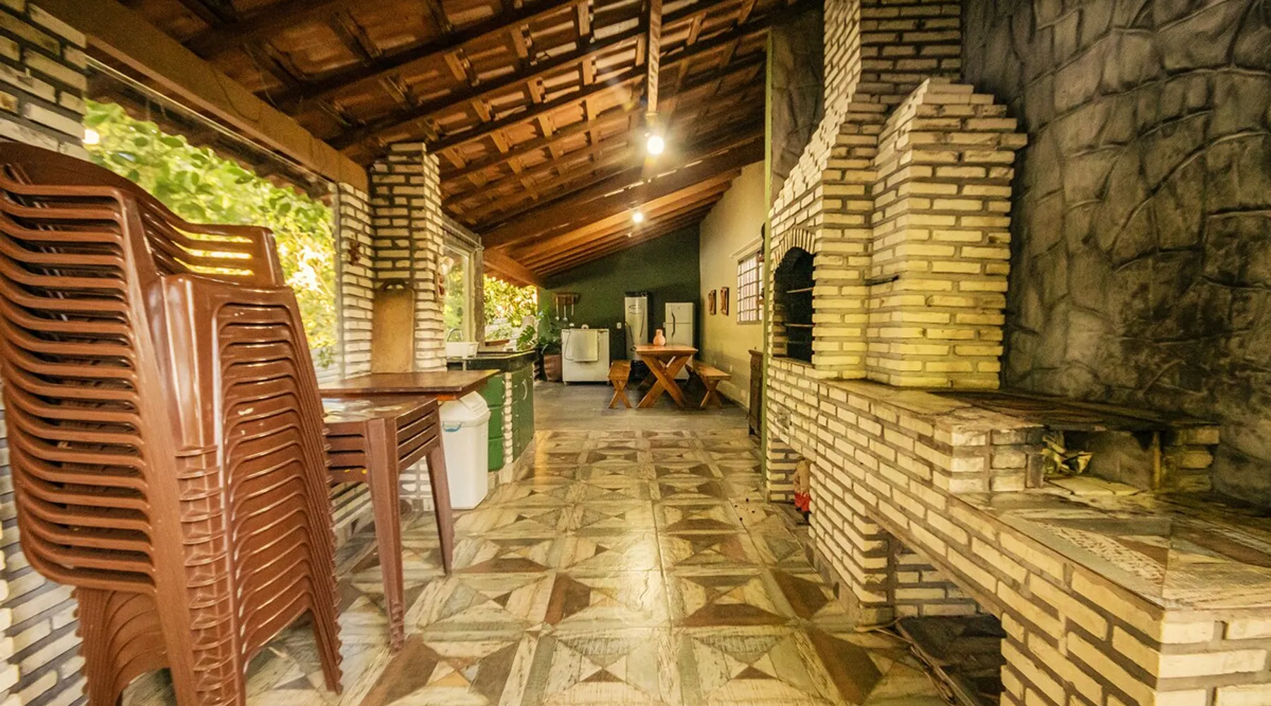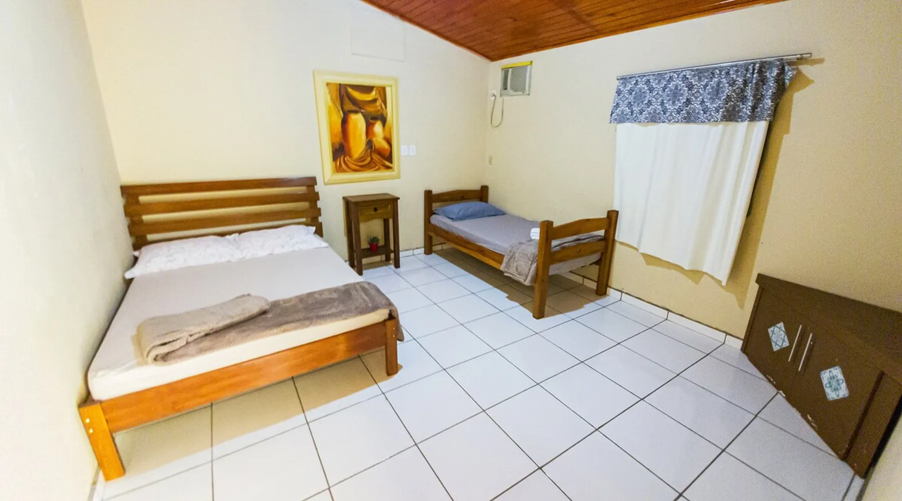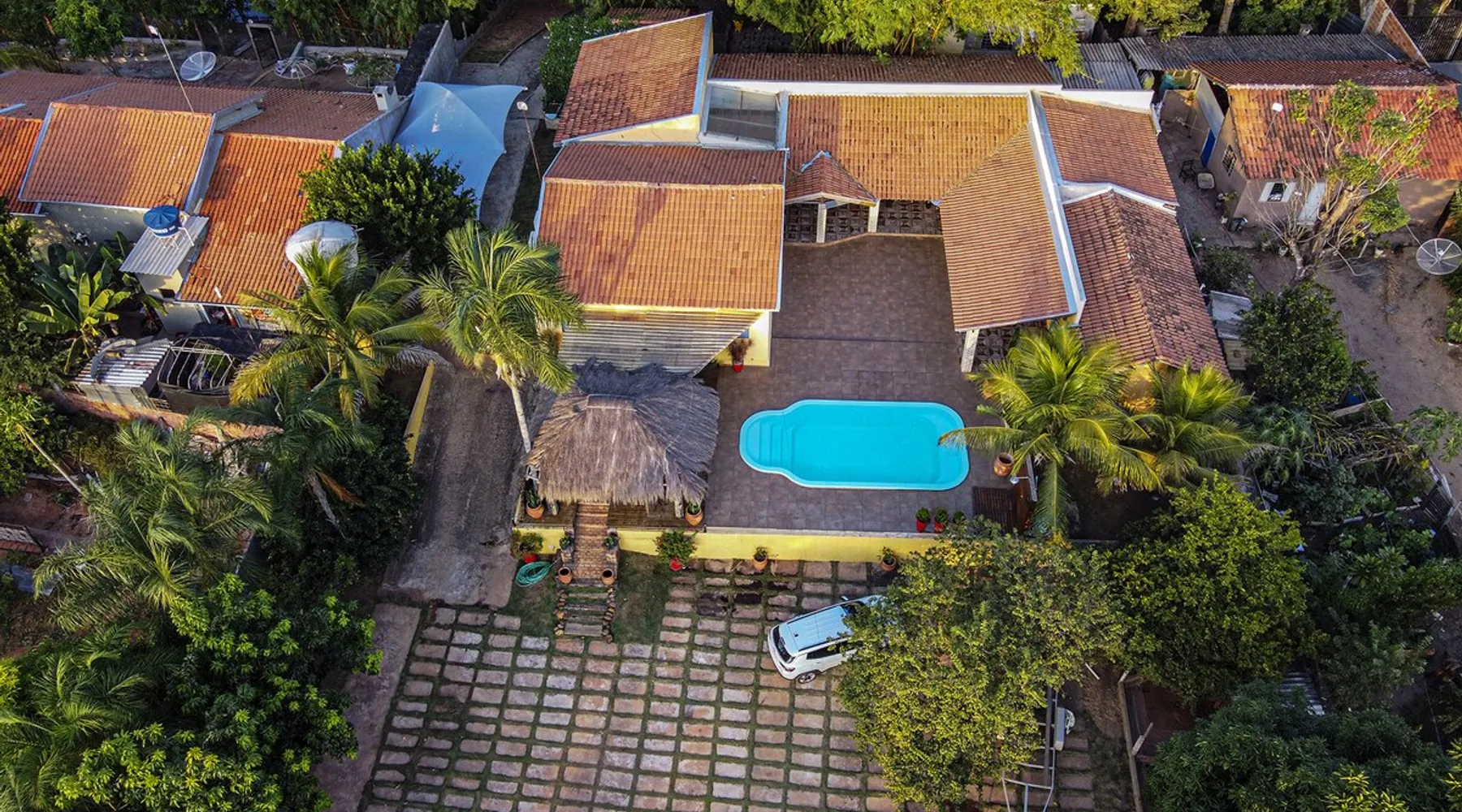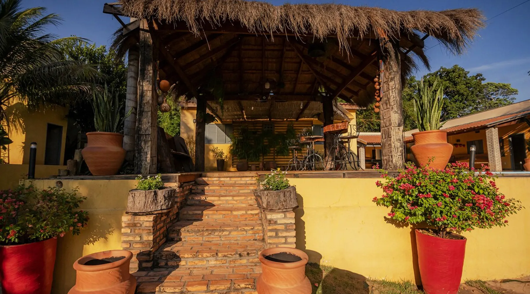 Your trip will be complete by staying at this cozy fishing ranch in Coxim, Mato Grosso do Sul, a pantaneira town, where you have the famous “Pé de Cedro”, which borders the Taquari River. Located in a quiet environment, by the river and surrounded by vegetation, the fishing grounds has 5 bedrooms, 3 bathrooms, as well as a swimming pool, sun loungers, barbecue, covered terrace, boat and speedboat for you to relax and have fun. Your pet is more than welcome here. Book your stay now! The space Your trip will be complete by staying at this cozy fishing ranch in Coxim, Mato Grosso do Sul, a pantaneira town, where you have the famous “Pé de Cedro”, which borders the Taquari River. Located in a quiet environment, by the river and surrounded by vegetation, the fishing grounds has 5 bedrooms, 3 bathrooms, as well as a swimming pool, sun loungers, barbecue, covered terrace, boat and speedboat for you to relax and have fun. Your pet is more than welcome here. Book your stay now! - Gourmet area with barbecue grill, wood stove, duplex refrigerator, vertical freezer and picnic table - Wifi 50 Mb - 5 uncovered parking spots - Air conditioning - Bedrooms have a closet, duvet / blanket, and mattress protector - In bedrooms 1 to 3 there is 1 double bed and 2 single beds (each) - In room 4 there is 1 double bed - In room 5 there is 1 double bed and 1 single bed - The bathrooms have an electric shower, 2 with a glass box - Highly equipped, the kitchen has several utensils for preparing meals, including stove, fridge, toaster and counter - Dining tables - The living room is outside and very large, it is on the covered balcony of the ranch, in it you can find TV, pool table, several benches, tables and wooden chairs - Bed linen and bath linens - Washing machine, iron and ironing board - Outdoor shower - We provide cook and barbecue services. In addition to boat, speedboat and pirangueiro rental, which are charged separately (see conditions) - In front of the property there is a river, where it is possible to do sport fishing and find fish of more than 1.5 meters high and 50 kg. It is also possible to visit waterfalls and take buoy rides (additional cost) - 110 V sockets - We take the opportunity to say that the stay is for the number of people informed at the time of booking. Any difference in the amount of guest and/or visit can be extra cost and must always be informed to the property manager before the time of check-in