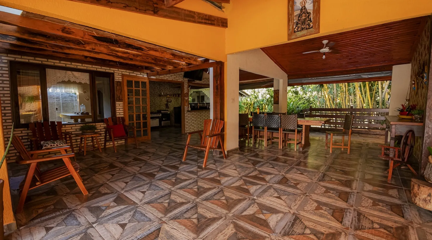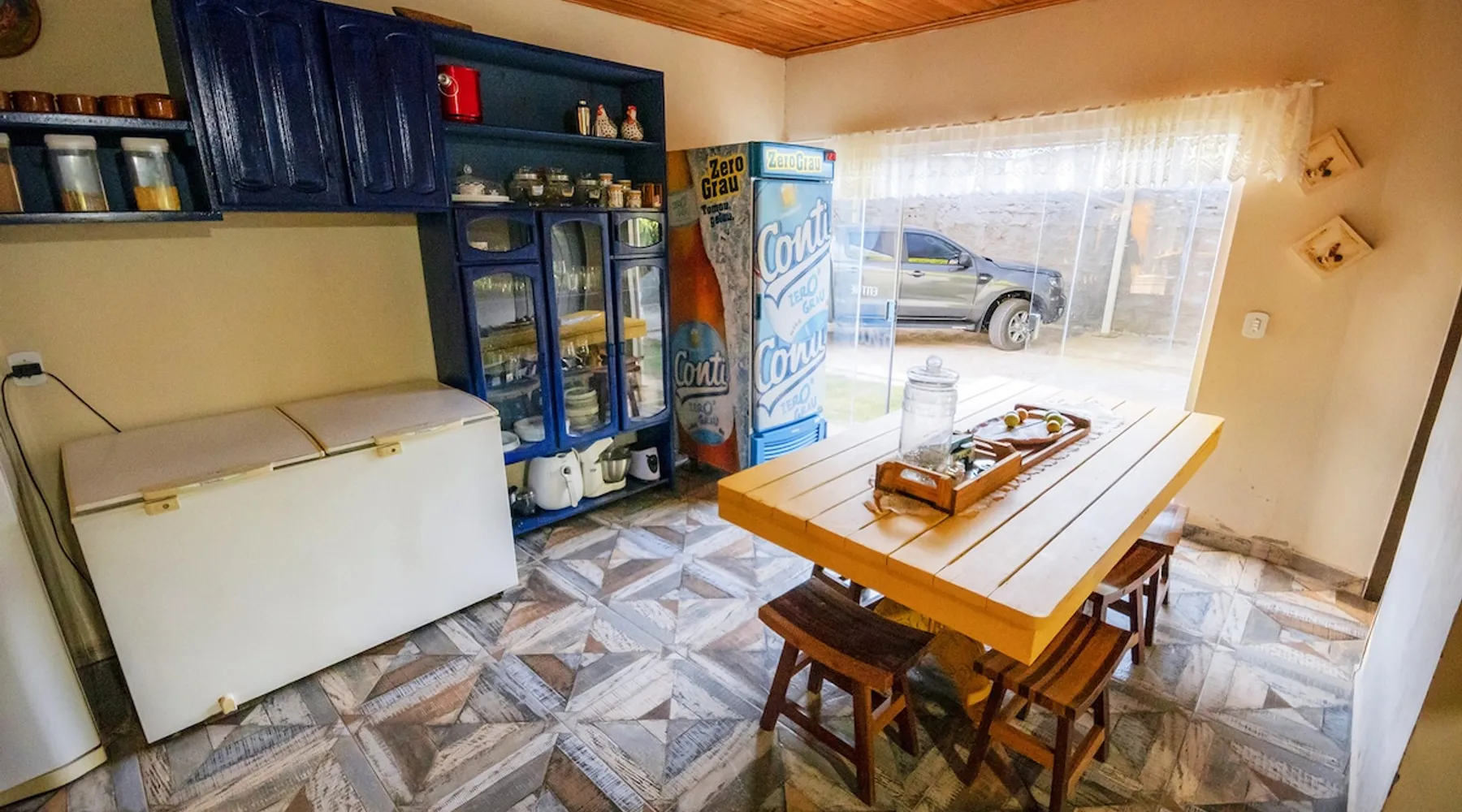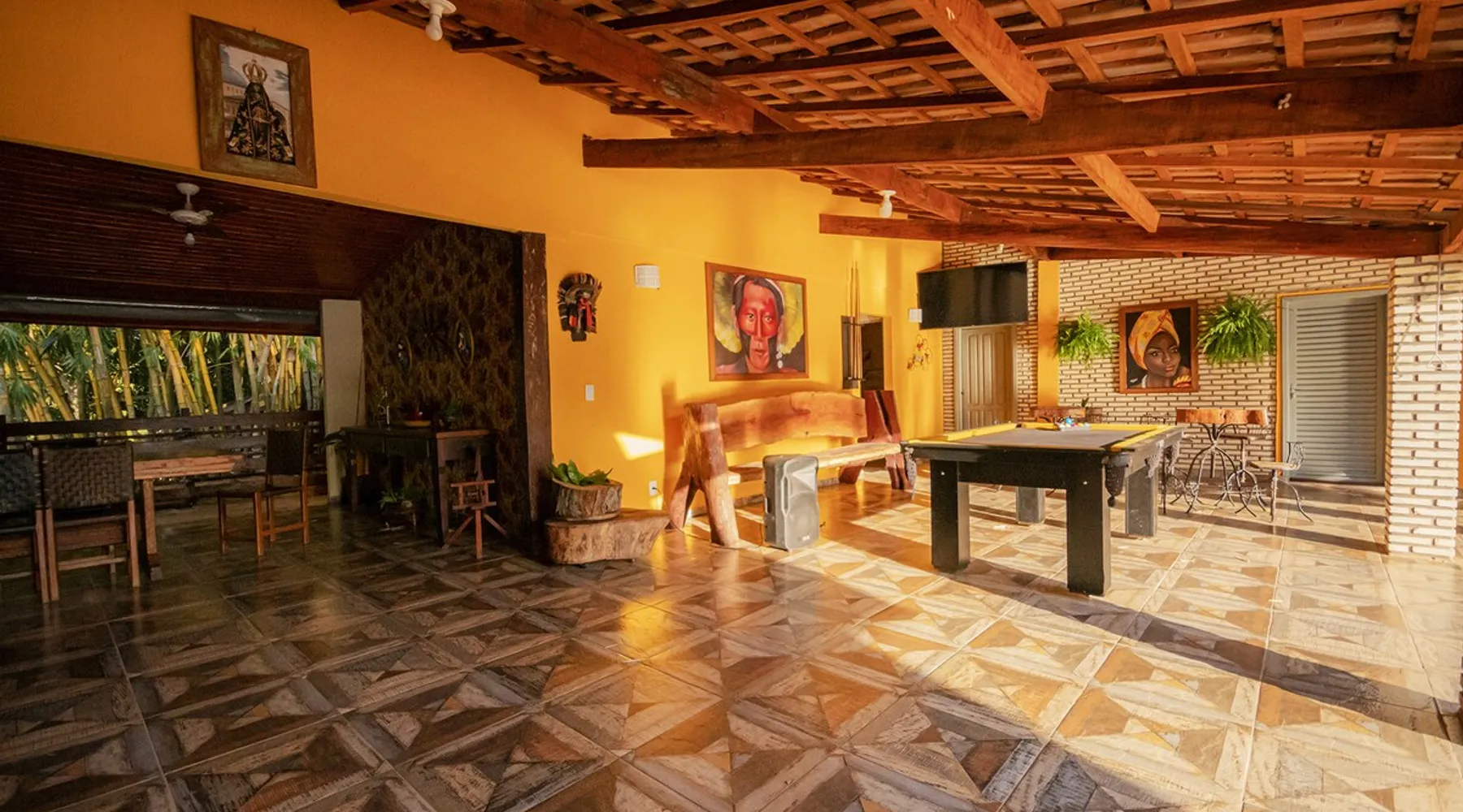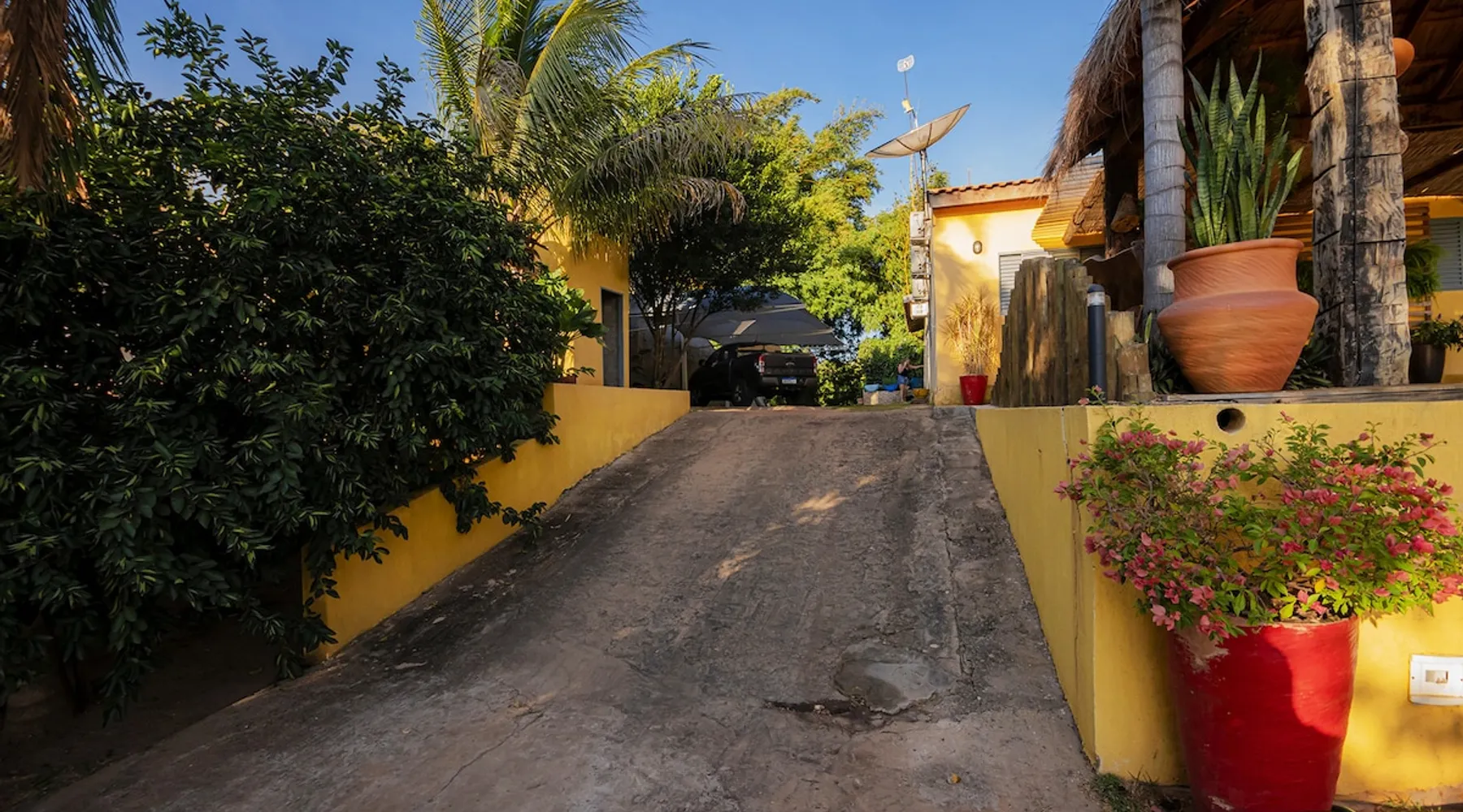 Your trip will be complete by staying at this cozy fishing ranch in Coxim, Mato Grosso do Sul, a pantaneira town, where you have the famous “Pé de Cedro”, which borders the Taquari River. Located in a quiet environment, by the river and surrounded by vegetation, the fishing grounds has 5 bedrooms, 3 bathrooms, as well as a swimming pool, sun loungers, barbecue, covered terrace, boat and speedboat for you to relax and have fun. Your pet is more than welcome here. Book your stay now! The space Your trip will be complete by staying at this cozy fishing ranch in Coxim, Mato Grosso do Sul, a pantaneira town, where you have the famous “Pé de Cedro”, which borders the Taquari River. Located in a quiet environment, by the river and surrounded by vegetation, the fishing grounds has 5 bedrooms, 3 bathrooms, as well as a swimming pool, sun loungers, barbecue, covered terrace, boat and speedboat for you to relax and have fun. Your pet is more than welcome here. Book your stay now! - Gourmet area with barbecue grill, wood stove, duplex refrigerator, vertical freezer and picnic table - Wifi 50 Mb - 5 uncovered parking spots - Air conditioning - Bedrooms have a closet, duvet / blanket, and mattress protector - In bedrooms 1 to 3 there is 1 double bed and 2 single beds (each) - In room 4 there is 1 double bed - In room 5 there is 1 double bed and 1 single bed - The bathrooms have an electric shower, 2 with a glass box - Highly equipped, the kitchen has several utensils for preparing meals, including stove, fridge, toaster and counter - Dining tables - The living room is outside and very large, it is on the covered balcony of the ranch, in it you can find TV, pool table, several benches, tables and wooden chairs - Bed linen and bath linens - Washing machine, iron and ironing board - Outdoor shower - We provide cook and barbecue services. In addition to boat, speedboat and pirangueiro rental, which are charged separately (see conditions) - In front of the property there is a river, where it is possible to do sport fishing and find fish of more than 1.5 meters high and 50 kg. It is also possible to visit waterfalls and take buoy rides (additional cost) - 110 V sockets - We take the opportunity to say that the stay is for the number of people informed at the time of booking. Any difference in the amount of guest and/or visit can be extra cost and must always be informed to the property manager before the time of check-in