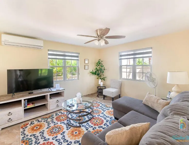 Comfortable Accommodations: Dover Court Apartments in Dover offers family rooms with free WiFi, air-conditioning, and private bathrooms. Each apartment includes a balcony or patio, a fully equipped kitchen, and a dining area. Convenient Facilities: Guests enjoy free on-site parking, a washing machine, and a ground-floor unit. Additional amenities include a barbecue, outdoor furniture, and a dining area. Prime Location: Located 5.6 mi from Grantley Adams International Airport, the property is a 3-minute walk from Dover Beach. Highly rated for its convenient location and beach access. This spacious apartment includes 1 living room, 2 separate bedrooms and 1 bathroom with a shower and free toiletries. Guests will find a stovetop, a refrigerator, kitchenware and an oven in the well-equipped kitchen. The apartment also features a barbecue. This apartment is air-conditioned and has a seating area with a TV, a private entrance, a tea and coffee maker, a dining area, as well as a wardrobe. The unit has 2 beds.