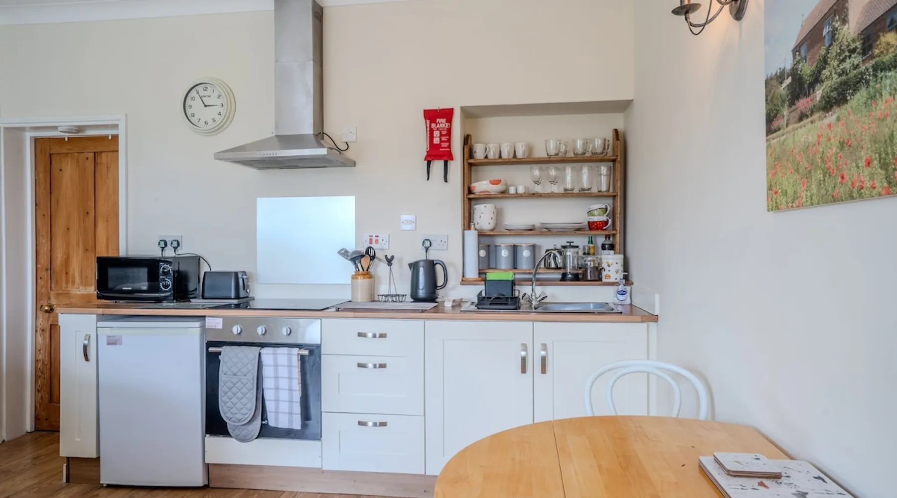 Badger's Retreat is a single storey annex set in the quiet Norfolk countryside. With a pretty enclosed garden and field view, it's the perfect couple's escape. There are plenty of peaceful walks from the door and is ideal for reactive dogs, birdwatchers and wildlife lovers. Badger's Retreat sleeps two in a double room and ensuite shower room and welcome three dogs free of charge. The space Lounge/kitchen This is a high ceilinged, generous sized room with amazing inglenook fireplace, lots of interesting art and decorations and comfy sofas and coffee table. There is a flat-screen tv with Freeview, DVD player, portable radio, bookshelves and very neatly fitted kitchen area including oven, hob, microwave and fridge with plenty of storage space. Off this is the.... Lounge/kitchen This is a high ceilinged, generous sized room with amazing inglenook fireplace, lots of interesting art and decorations, comfy sofas and a coffee table. There is a flat-screen smart TV, portable radio, bookshelves and very neatly fitted kitchen including oven, hob, microwave and fridge with plenty of storage space. Off this is the.... Bedroom Double bed, hanging space and window seat. Beside the bedroom is the ensuite shower room with toilet, sink, chair and hanging space. Conservatory This generous and light-filled room has a sofa, coffee table, table and chairs. The conservatory is fully fitted with blinds to ensure privacy. French doors open out onto the spacious lawn of the private garden - a lovely place to sit and enjoy the sunlight and peace. Outside There is seating on the lawn to enjoy the views across the fields and the peace and quiet on a sunny day (south-facing) plus an additional secluded seating area next to the conservatory. The fencing between the drive and the garden is 5ft reed panels and this extends to the back of the house giving you a good level of privacy from the owners' section of the house. The wall along the front, with the metal gate in, is approximately 3ft high. The fields opposite are wonderful to watch the sun and the running hares and deer that occasionally cross the fields. Guest access Guest have the annexe to themselves with separate access and outside space. Parking is shared with the main house owners but is off road and free. Other things to note - Arrival time is 4pm and departure time is 10am. - We would prefer that your dogs are not left alone in the property unless you are 100% confident that they will not stress. - If you do go out, please let the owners know and ensure they have your telephone number so they can call you if needed. - We do not have a BBQ at the property, but guests can bring their own to use. - All major supermarkets delivery to Badger’s Retreat. If you would like us to put it away, please book a slot between 10 and 2. - Electric car, bike and mobility scooter charging is NOT available at this property.