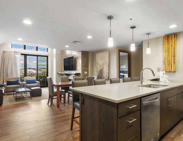The exquisite Grand Colorado on Peak 8 offers an amazing experience, with grand views and a true ski in/ski out experience with the chairlift directly out the door. The property has it all, everything you can imagine is available at this resort. The space The 1-bedroom 1.5 bathroom Breckenridge residence offers 900 square feet. The thoughtful design offers one large Master suite in addition to a sleeper sofa in the living room. When you enter the villa you will find yourself in the gourmet kitchen with top of the line stainless steel appliances and all the necessities to prepare meals. The kitchen island offers 3 bar stools and additional seating in the dining area that seats 4 comfortably. The living room offers extensive views and plenty of comfortable seating with sleeper sofa, overstuffed chairs, a cozy gas fireplace and state of the art entertainment center. Wall to wall windows and large balcony offers additional seating to bask in the Colorado views. Additionally, you will find the convenience of your own washer and dryer in the villa. The Master bedroom offers a King size bed, flat screen TV & access to the balcony. With an attached Master bathroom with oversize soaking tub, double vanity, rain head shower and all top-of-the-line toiletries. Resort Details are unrivaled. The property has everything you need and would be easy to never even need to leave. However, getting into town could not be easier with the Gondola running until 5pm in addition to the convenient resort shuttle service. Your residence comes with 1 parking pass. EV charging stations are on site. Full access to all resort amenities: * Two luxurious aquatic areas – indoor/outdoor pools and multiple hot tubs, children's pool with play features, water slide all with unparalleled views of the slopes * Infinity spa – treat yourself to massage, mani/pedi or simply soak in the adult only grotto, cold plunge pool and steam rooms * Lobby bar open 3pm – 10pm * Ullr Cafe which offers Colorado roasted coffee beverages & breakfast items, the coffee house and other grab and go items. * Robbie's Tavern – Featuring breakfast, lunch and Dinner and a fabulous spot to watch over the slopes and enjoy a fun and lively Après Ski * Elev8 Lounge – Exclusive rooftop patio with full bar and gas grills available for your convenience. The views are amazing. * Five private movie theaters that you can reserve via the front desk or concierge * Fitness Center – all weight training equipment, cardio and space for yoga and stretching. * Ice Skating rink – one of the other features that makes this property unique (Winter only) Guest access Full front desk and concierge staff ready to assist you. Other things to note The Grand Lodge on Peak 8 offers a true ski on/out experience where you will have access to all the amenities this property has to offer. Full access to all resort amenities: Two luxurious aquatic areas – indoor/outdoor pools and multiple hot tubs, children's pool with play features, water slide all with unparalleled views of the slopes Infinity spa – treat yourself to massage, mani/pedi or simply soak in the adult only grotto, cold plunge pool and steam rooms Lobby bar open 3pm – 10pm Ullr Cafe which offers Colorado roasted coffee beverages & breakfast items, the coffee house and other grab and go items. Robbie’s Tavern – Featuring breakfast, lunch and Dinner and a fabulous spot to watch over the slopes and enjoy a fun and lively Après Ski Elev8 Lounge – Exclusive rooftop patio with full bar and gas grills available for your convenience. The views are amazing. Five private movie theaters that you can reserve via the front desk or concierge Fitness Center – all weight training equipment, cardio and space for yoga and stretching. Ice Skating rink – one of the other features that makes this property unique