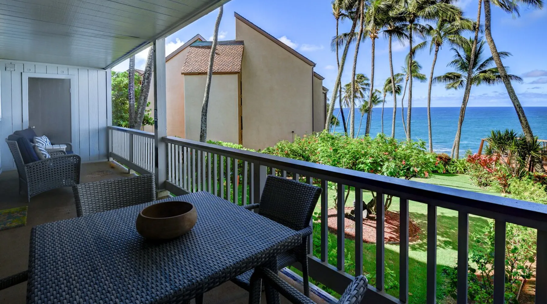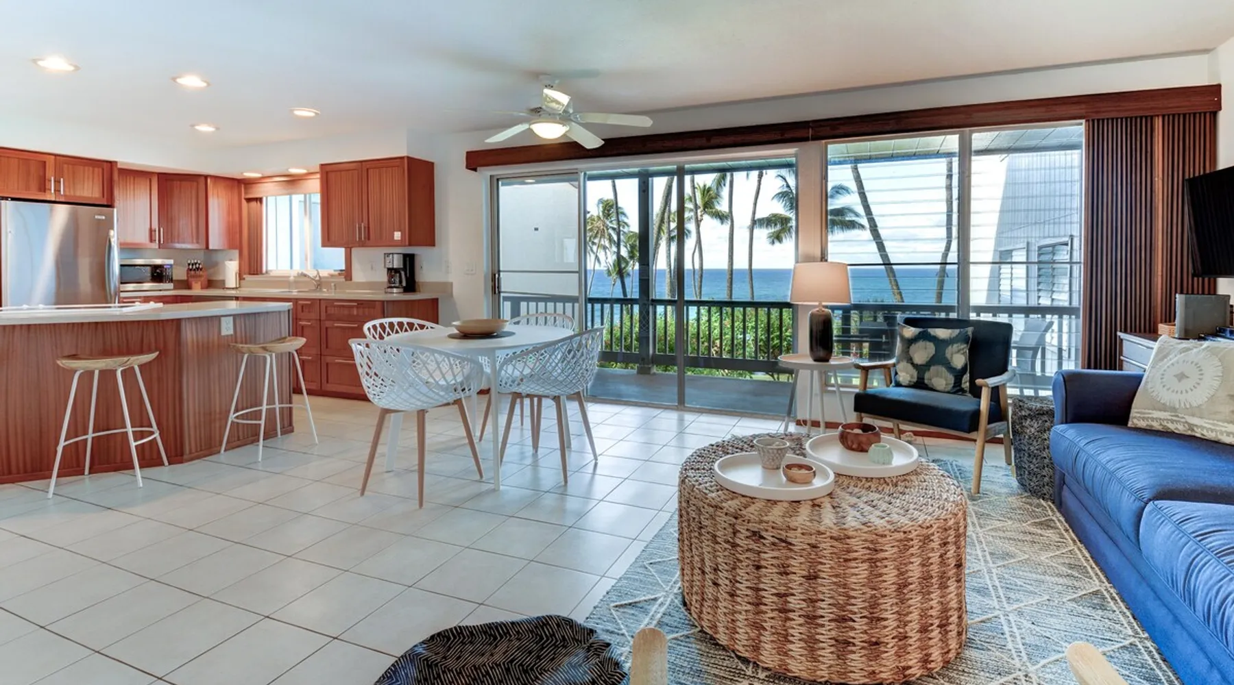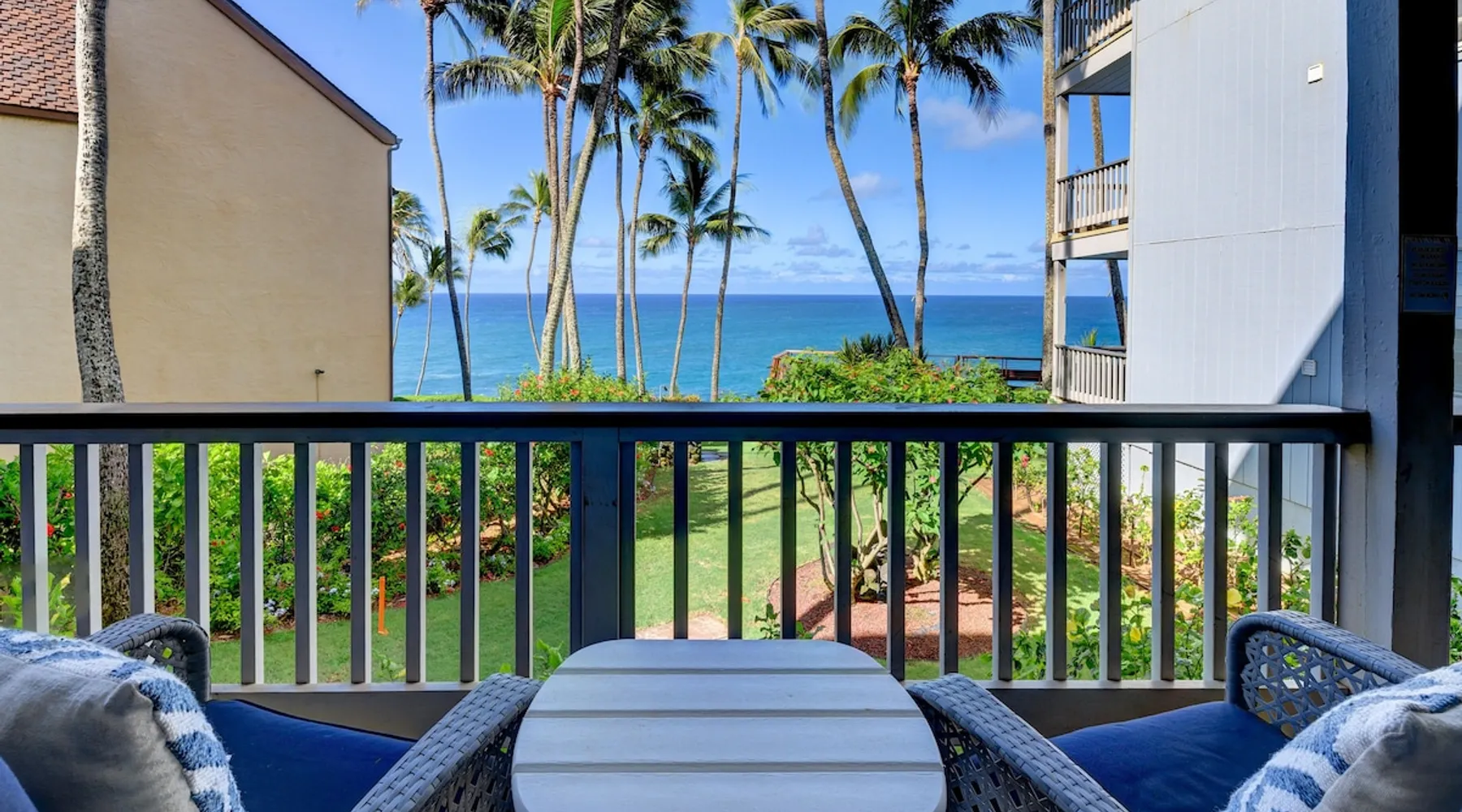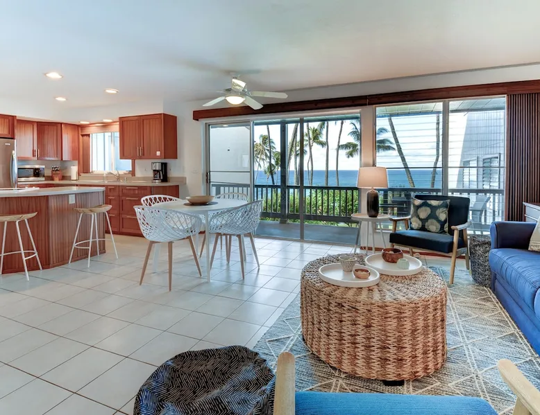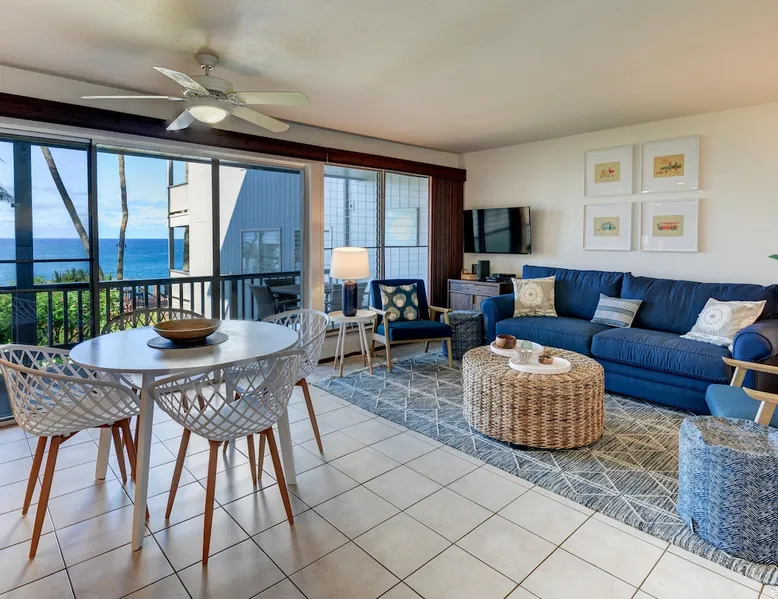 Hawaii Life Rentals presents Poipu Palms 102 - Tropical property with incredible ocean views The space Part of the intimate Poipu Palms condo community, this tropical property stuns with incredible ocean views. Out on the private lanai, gather with your ohana to sip on a cool drink and let the ocean breezes lull you into complete relaxation mode. Whip up meals in the fully-equipped kitchen with the stainless-steel Kenmore Elite appliances. The open, practical layout allows the cook to move around with ease and still be part of the action. Open the doors to the lanai and let the outside into the cozy living room. Lounge as you flip through the channels on the flat-screen, top-of-the-line TV with cable. Gather around the dining table for family game nights, with the ocean as your backdrop. Dream of the next day’s tropical fun in the master bedroom’s king bed, outfitted with sumptuous linens and bedding. Black-out shades let you enjoy valuable extra sleep. In the flexible guest room, two twin beds can be converted to a king bed. Both bathrooms are outfitted with Italian marble for an added touch of class. Parking for the unit is free. Indoor Features: *King bedroom with en suite, blackout shades on windows *Two twin beds, king conversion available upon request *NO air conditioning, plenty of ceiling fans and ocean breezes Poipu Palms is located on Kauai's beautiful South Shore. Perched on the edge of the magnificent Poipu coastline, this intimate resort is home to just twelve oceanfront Kauai condos and features stunning views as well as a dramatic coastline swimming pool, sundeck and BBQ. Awaken to the sounds of the sea, watch sea turtles, dolphins and seasonal whales from your lanai, and enjoy spectacular Kauai sunsets, tropical breezes -- all from the comfort of your Kauai vacation home. World famous Poipu Beach and Brennecke's Beach are just a five-minute walk from Poipu Palms. This award winning tropical playground offers snorkeling, body boarding, surfing, picnicking, swimming and relaxing all year round in sunny Poipu. Poipu Beach also has a large grassy park with children's play area, showers, bathrooms, restaurants and shopping. Pool Hours 9am-9pm Hawaii Life Rentals is a locally owned, licensed real estate company with rentals on Kauai, Maui, Oahu, and Hawaii. We offer on-island personal assistance and Concierge services. Rates do not include taxes, cleaning and applicable fees. Hawaii Life/VRBO bookings: Guests must sign a rental contract within 48 hours of booking to confirm the reservation. TA-083-993-2928-01 2 Registration Details 280200410002, TA-083-993-2928-01