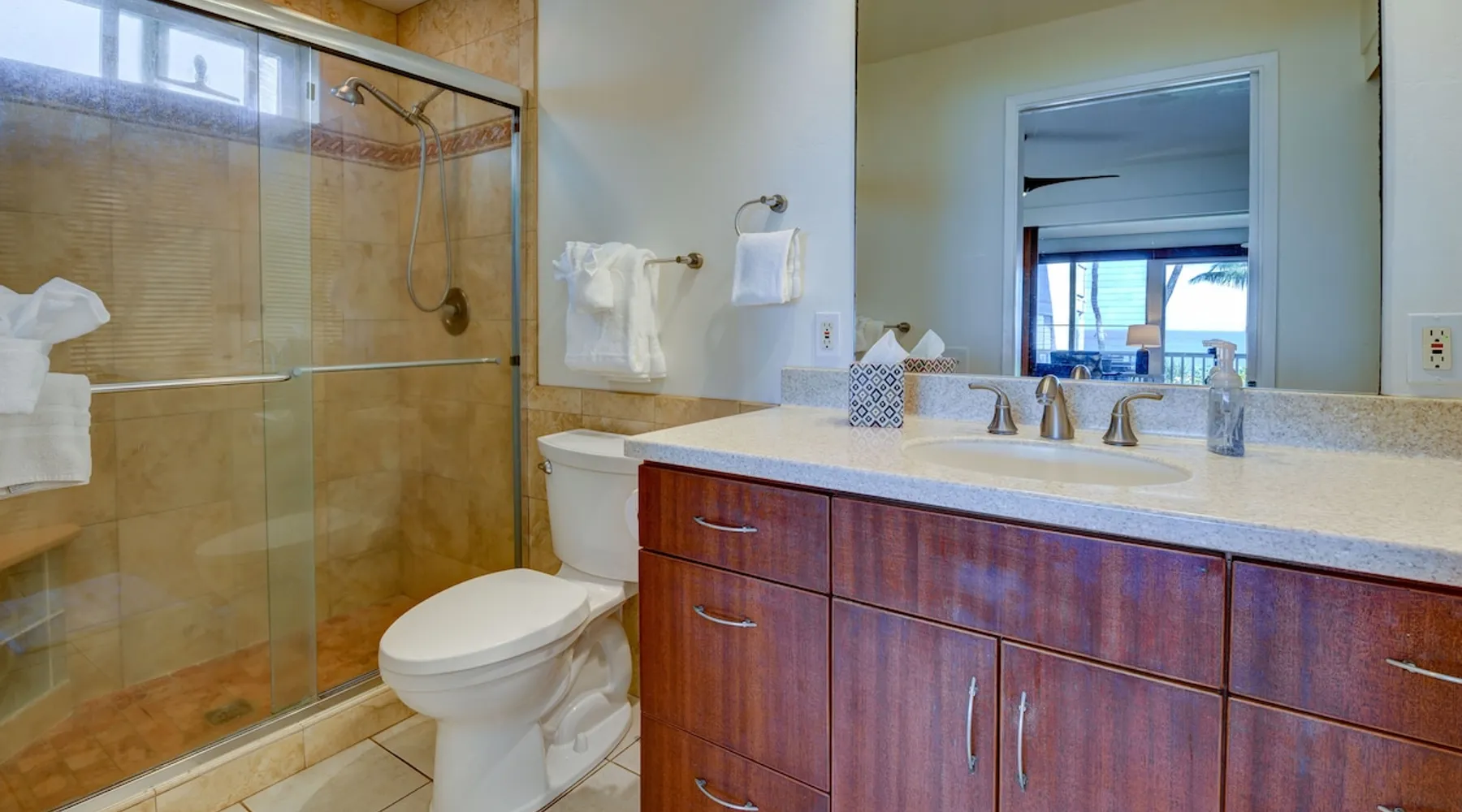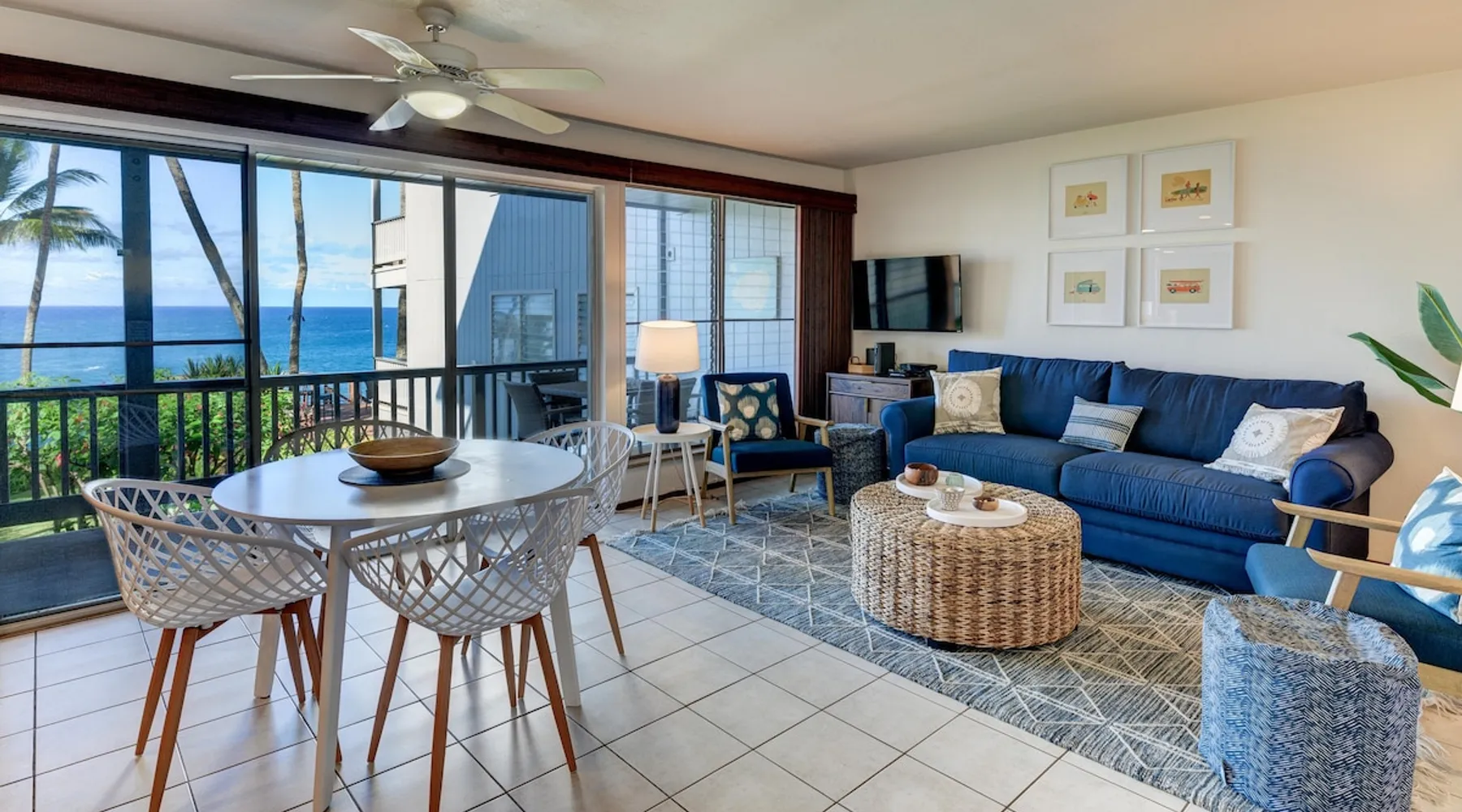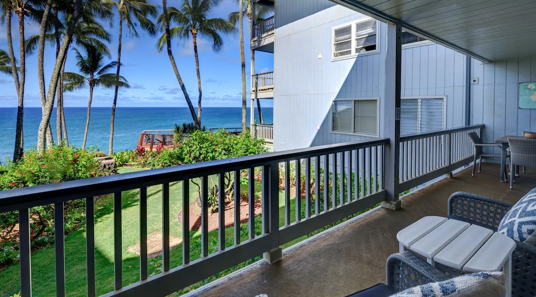 Hawaii Life Rentals presents Poipu Palms 102 - Tropical property with incredible ocean views The space Part of the intimate Poipu Palms condo community, this tropical property stuns with incredible ocean views. Out on the private lanai, gather with your ohana to sip on a cool drink and let the ocean breezes lull you into complete relaxation mode. Whip up meals in the fully-equipped kitchen with the stainless-steel Kenmore Elite appliances. The open, practical layout allows the cook to move around with ease and still be part of the action. Open the doors to the lanai and let the outside into the cozy living room. Lounge as you flip through the channels on the flat-screen, top-of-the-line TV with cable. Gather around the dining table for family game nights, with the ocean as your backdrop. Dream of the next day’s tropical fun in the master bedroom’s king bed, outfitted with sumptuous linens and bedding. Black-out shades let you enjoy valuable extra sleep. In the flexible guest room, two twin beds can be converted to a king bed. Both bathrooms are outfitted with Italian marble for an added touch of class. Parking for the unit is free. Indoor Features: *King bedroom with en suite, blackout shades on windows *Two twin beds, king conversion available upon request *NO air conditioning, plenty of ceiling fans and ocean breezes Poipu Palms is located on Kauai's beautiful South Shore. Perched on the edge of the magnificent Poipu coastline, this intimate resort is home to just twelve oceanfront Kauai condos and features stunning views as well as a dramatic coastline swimming pool, sundeck and BBQ. Awaken to the sounds of the sea, watch sea turtles, dolphins and seasonal whales from your lanai, and enjoy spectacular Kauai sunsets, tropical breezes -- all from the comfort of your Kauai vacation home. World famous Poipu Beach and Brennecke's Beach are just a five-minute walk from Poipu Palms. This award winning tropical playground offers snorkeling, body boarding, surfing, picnicking, swimming and relaxing all year round in sunny Poipu. Poipu Beach also has a large grassy park with children's play area, showers, bathrooms, restaurants and shopping. Pool Hours 9am-9pm Hawaii Life Rentals is a locally owned, licensed real estate company with rentals on Kauai, Maui, Oahu, and Hawaii. We offer on-island personal assistance and Concierge services. Rates do not include taxes, cleaning and applicable fees. Hawaii Life/VRBO bookings: Guests must sign a rental contract within 48 hours of booking to confirm the reservation. TA-083-993-2928-01 2 Registration Details 280200410002, TA-083-993-2928-01