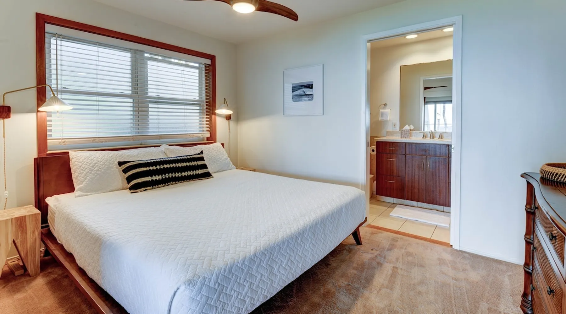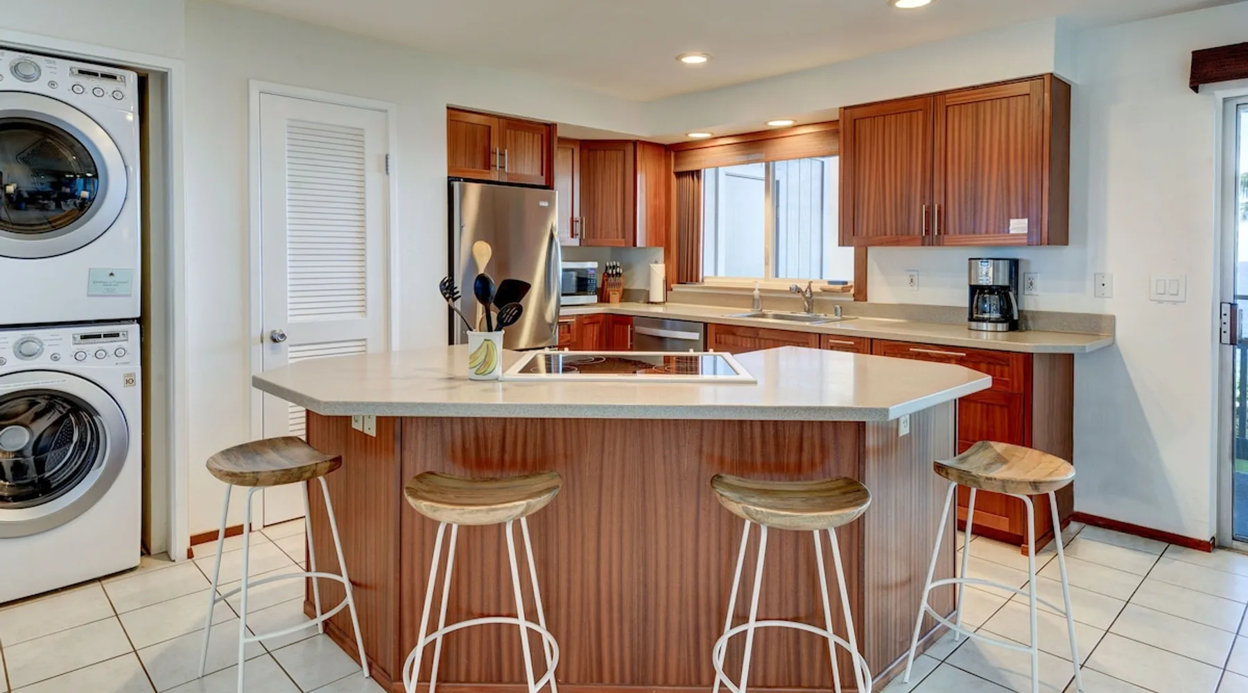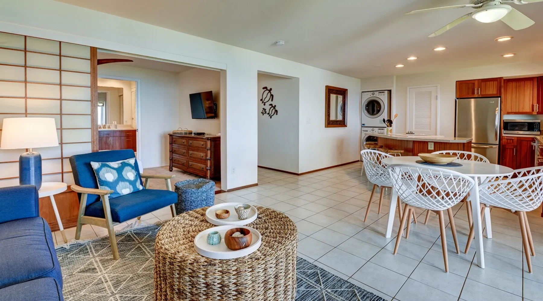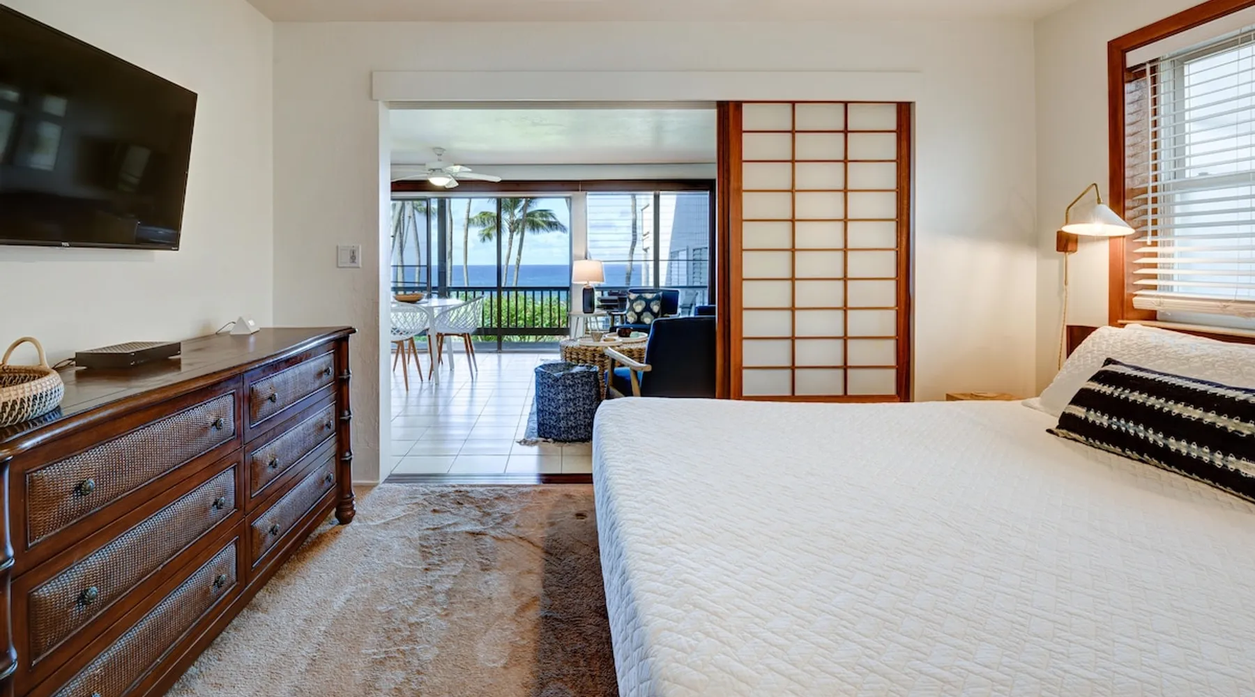 Hawaii Life Rentals presents Poipu Palms 102 - Tropical property with incredible ocean views The space Part of the intimate Poipu Palms condo community, this tropical property stuns with incredible ocean views. Out on the private lanai, gather with your ohana to sip on a cool drink and let the ocean breezes lull you into complete relaxation mode. Whip up meals in the fully-equipped kitchen with the stainless-steel Kenmore Elite appliances. The open, practical layout allows the cook to move around with ease and still be part of the action. Open the doors to the lanai and let the outside into the cozy living room. Lounge as you flip through the channels on the flat-screen, top-of-the-line TV with cable. Gather around the dining table for family game nights, with the ocean as your backdrop. Dream of the next day’s tropical fun in the master bedroom’s king bed, outfitted with sumptuous linens and bedding. Black-out shades let you enjoy valuable extra sleep. In the flexible guest room, two twin beds can be converted to a king bed. Both bathrooms are outfitted with Italian marble for an added touch of class. Parking for the unit is free. Indoor Features: *King bedroom with en suite, blackout shades on windows *Two twin beds, king conversion available upon request *NO air conditioning, plenty of ceiling fans and ocean breezes Poipu Palms is located on Kauai's beautiful South Shore. Perched on the edge of the magnificent Poipu coastline, this intimate resort is home to just twelve oceanfront Kauai condos and features stunning views as well as a dramatic coastline swimming pool, sundeck and BBQ. Awaken to the sounds of the sea, watch sea turtles, dolphins and seasonal whales from your lanai, and enjoy spectacular Kauai sunsets, tropical breezes -- all from the comfort of your Kauai vacation home. World famous Poipu Beach and Brennecke's Beach are just a five-minute walk from Poipu Palms. This award winning tropical playground offers snorkeling, body boarding, surfing, picnicking, swimming and relaxing all year round in sunny Poipu. Poipu Beach also has a large grassy park with children's play area, showers, bathrooms, restaurants and shopping. Pool Hours 9am-9pm Hawaii Life Rentals is a locally owned, licensed real estate company with rentals on Kauai, Maui, Oahu, and Hawaii. We offer on-island personal assistance and Concierge services. Rates do not include taxes, cleaning and applicable fees. Hawaii Life/VRBO bookings: Guests must sign a rental contract within 48 hours of booking to confirm the reservation. TA-083-993-2928-01 2 Registration Details 280200410002, TA-083-993-2928-01
