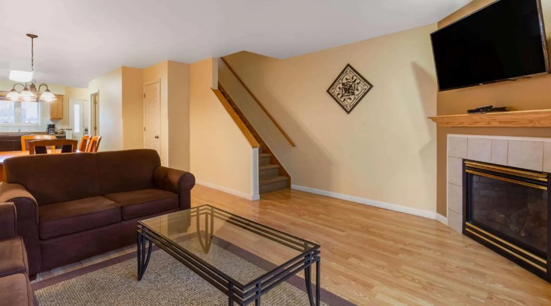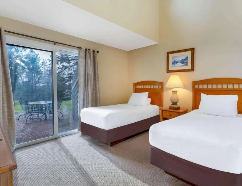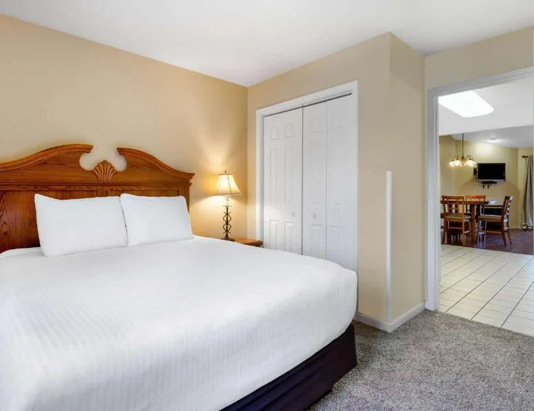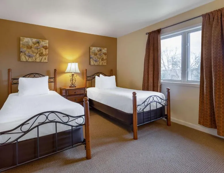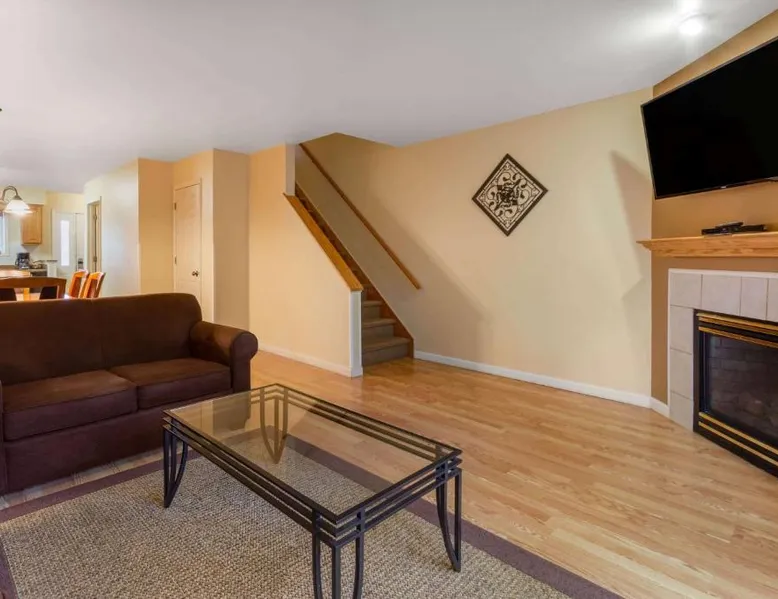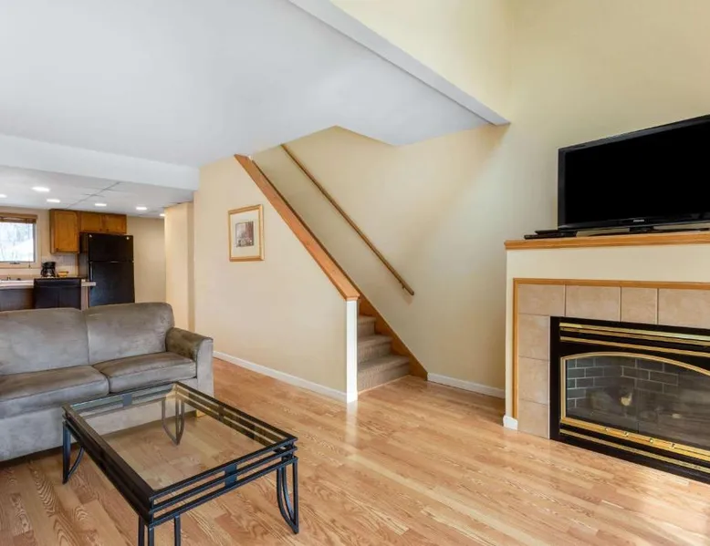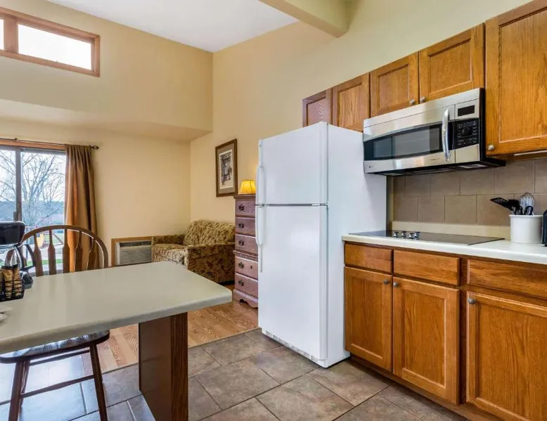 This Wisconsin Dells property features villas with fully equipped kitchens with dishwashers. The property is across from the Mirror Lake Natural Area. Guests can swim in the seasonal outdoor pool or the indoor pool. The property also has a volleyball and tennis court. The Mirror Lake and Tamarack is within 10-minute drive of the Kalahari Waterpark. Ripley’s Believe It or Not Museum is 5 miles from the property. This apartment's standout feature is the fireplace. The well-equipped kitchen has a stovetop, a refrigerator, a dishwasher and an oven. This air-conditioned apartment is consisted of of a TV with cable channels, a private bathroom as well as a patio.