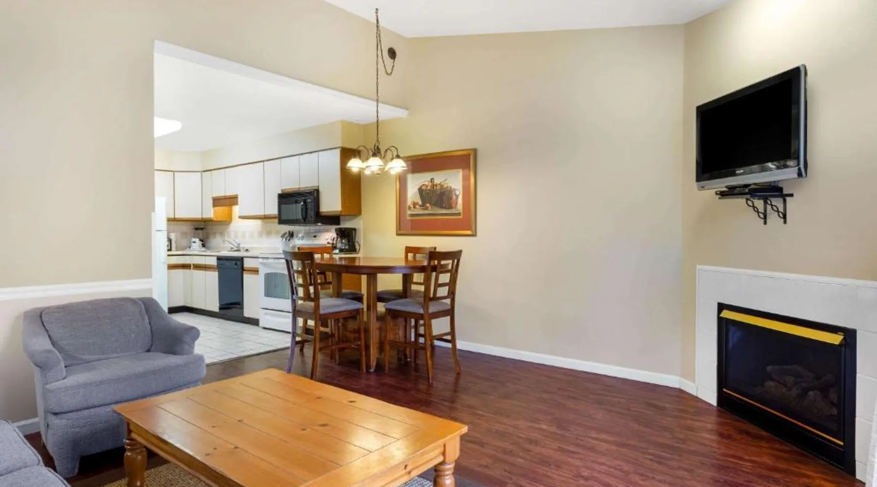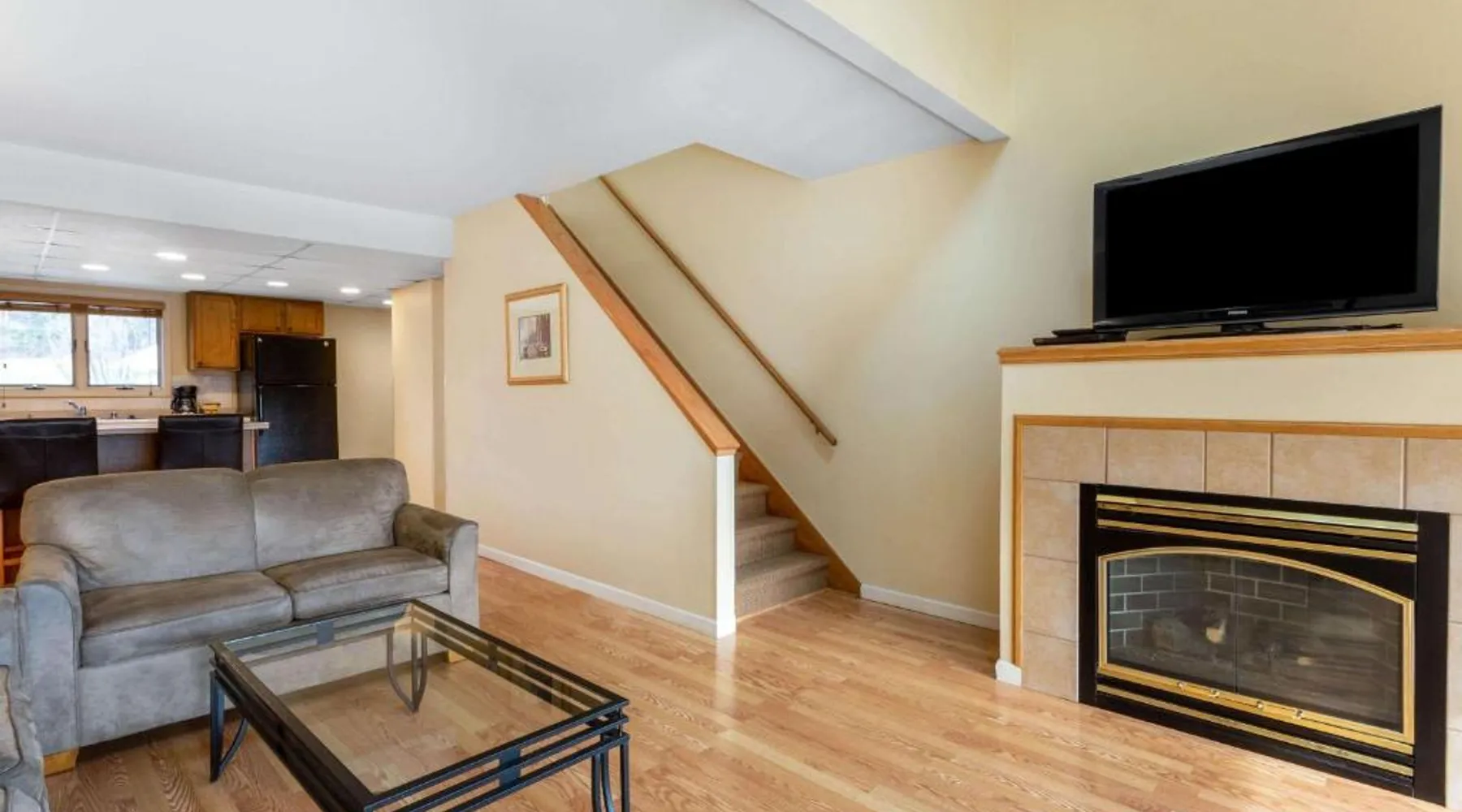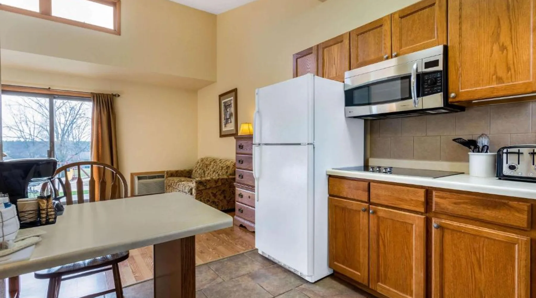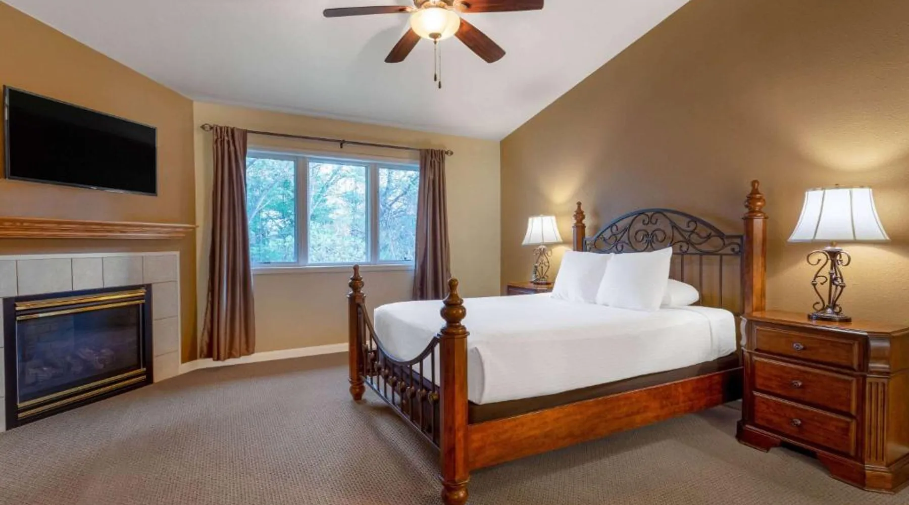 This Wisconsin Dells property features villas with fully equipped kitchens with dishwashers. The property is across from the Mirror Lake Natural Area. Guests can swim in the seasonal outdoor pool or the indoor pool. The property also has a volleyball and tennis court. The Mirror Lake and Tamarack is within 10-minute drive of the Kalahari Waterpark. Ripley’s Believe It or Not Museum is 5 miles from the property. This apartment's standout feature is the fireplace. The well-equipped kitchen has a stovetop, a refrigerator, a dishwasher and an oven. This air-conditioned apartment is consisted of of a TV with cable channels, a private bathroom as well as a patio.