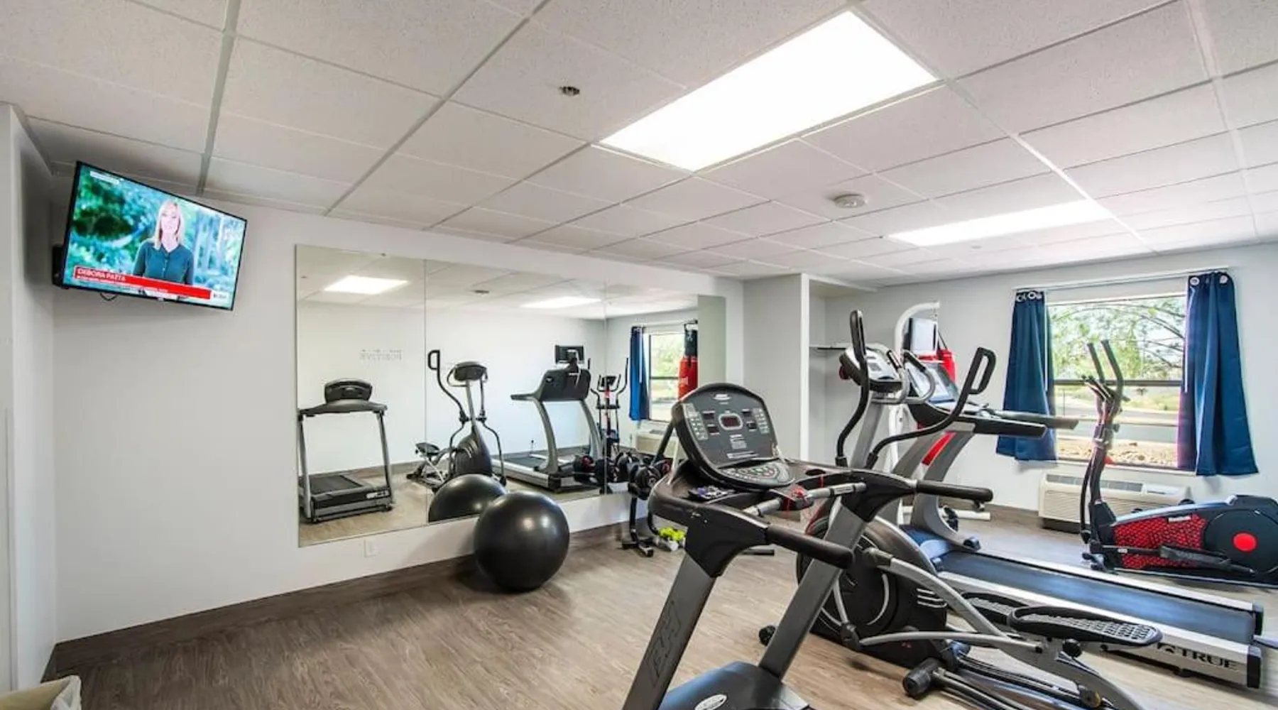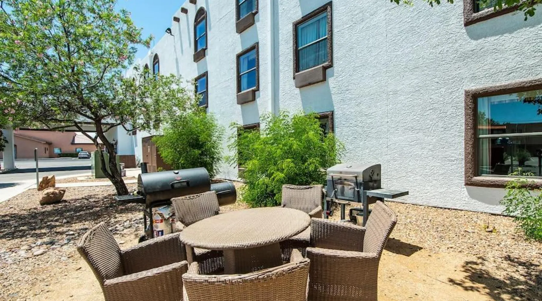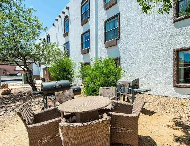 Modern Comforts: Vistas 115 in Sierra Vista offers a holiday home with air-conditioning, a fully equipped kitchen, and a private bathroom. Guests enjoy free WiFi, a fitness center, and a elevator for easy access. Convenient Amenities: The property includes a washing machine, dishwasher, microwave, and a barbecue for outdoor entertainment. Additional features include a private entrance, stovetop, and a TV for relaxation. Pet Friendly: Vistas 115 welcomes pets, ensuring a comfortable stay for travelers with animals. Accessible Location: Located 76 mi from Tucson International Airport, the holiday home provides free on-site parking and easy access to local attractions. The apartment offers heating, as well as a private bathroom boasting a hairdryer. Guests will find a stovetop, a refrigerator, a dishwasher and a microwave in the kitchen. The apartment also comes with a barbecue. The apartment features air conditioning, a washing machine, a private entrance, tumble dryer, as well as a TV with cable channels. The unit has 1 bed.