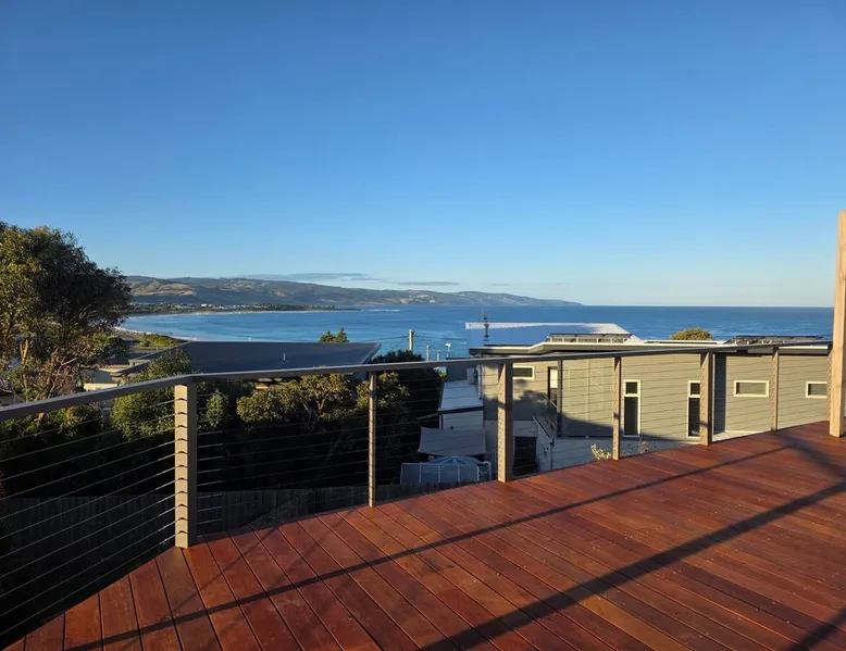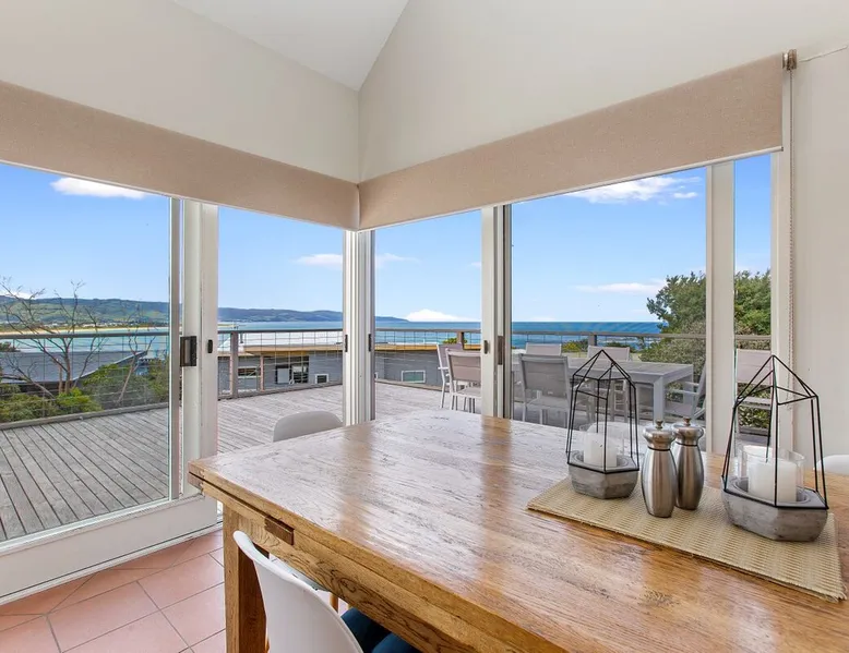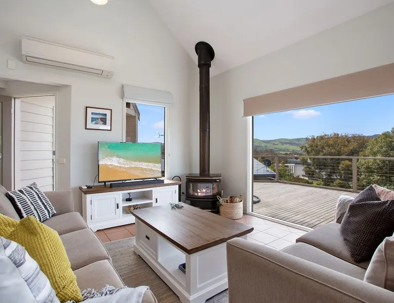 Welcome to Coleridge, a 3-bedroom, 1-bathroom, pet-friendly holiday house boasting spectacular ocean views, a fireplace, large deck, BBQ and Wifi. Sleeps 7 - 1 Queen bed, 3 Double beds and 1 Single bed. The space This property offers Stay 3 Pay 2 from February 1st – October 31st 2025, excluding long weekends & school holidays. This property offers Stay 7 Pay 5 from February 1st – October 31st 2025, excluding long weekends & school holidays. From the elevated position of this property, you'll enjoy spectacular views of Marengo Beach, the Marine Sanctuary and right along to the Barham River and Apollo Bay. Features include a large, open plan living area, kitchen and dining with full height glass windows and extensive wraparound decking. You can sit back and watch the sun rise or set, from this fabulous beach house. Suitable for both relaxing couples looking to get away for the weekend and family beach holidays, this property will delight. In summer, enjoy air-conditioned comfort, with stunning views, a large deck and backyard. In winter, cosy up in front of the wood fireplace, with wood supplied, and enjoy the free NBN internet and Apple TV. The master bedroom features large glass walled windows with spectacular water views and a Queen bed. The second bedroom contains a Double bed. The loft bedroom contains 2 Double beds and 1 Single bed and is accessible via a very steep narrow staircase. (The upstairs bedroom is not suitable for the elderly or small children) The ground floor is fully accessible, with only the loft bedroom inaccessible to persons with mobility difficulties. The house can be accessed by a sloping entrance deck or by stairs. Situated at the end of a quiet and private court, with 2 car spaces in the driveway, there is plenty of room for everyone. Free Wifi Linen Provided as of 1st of October 2022 Pet friendly inside & outside, not fully fenced (not permitted on furniture or bedding please). Firewood is only supplied from May to October. Strict No Party Policy (schoolies, hens, bucks etc) Forced move in days may apply over peak times. See terms and conditions