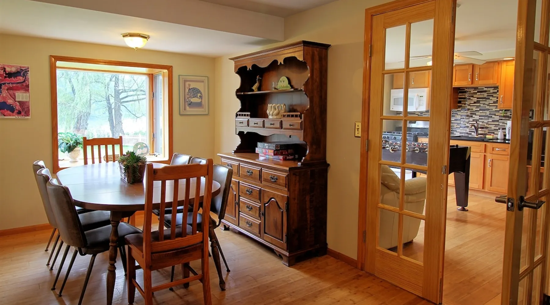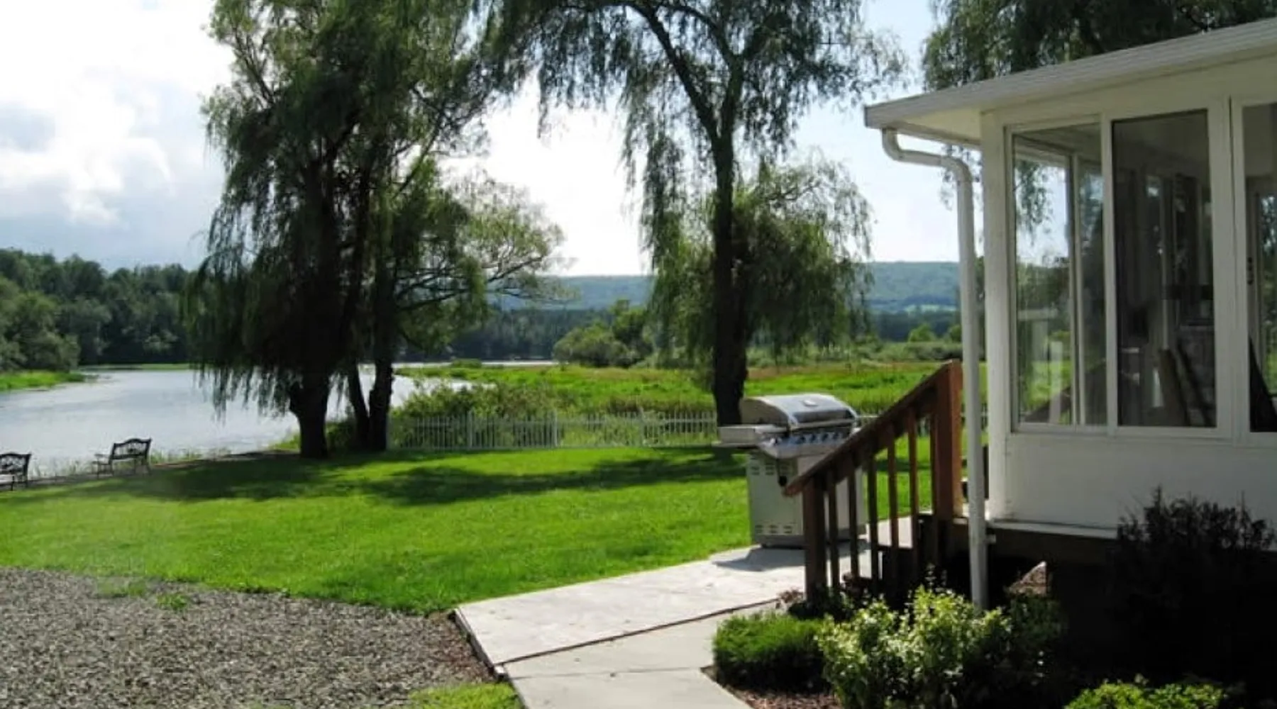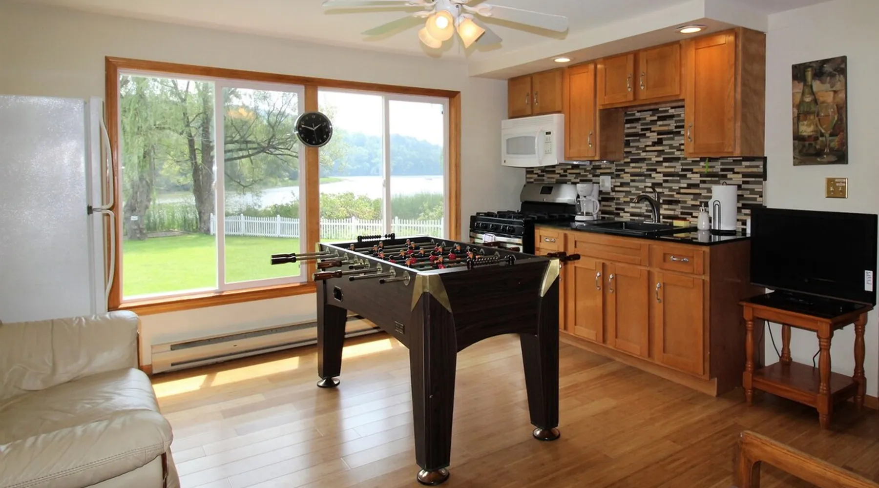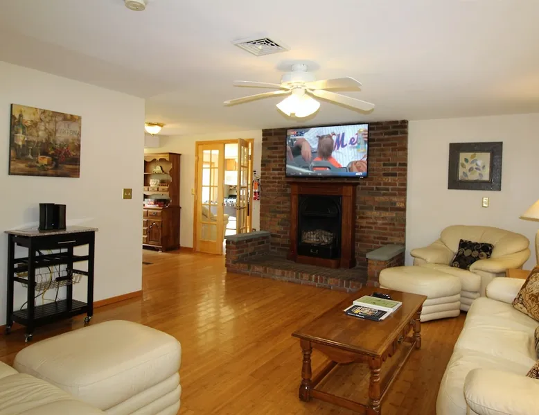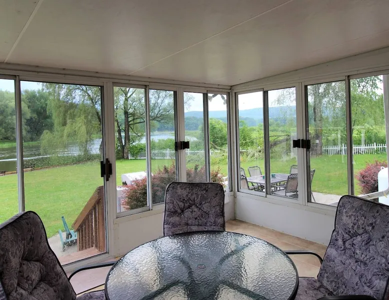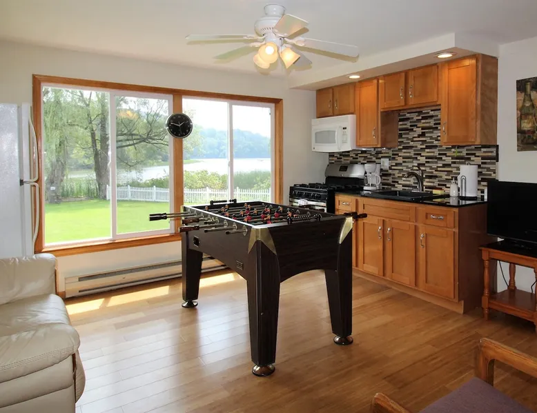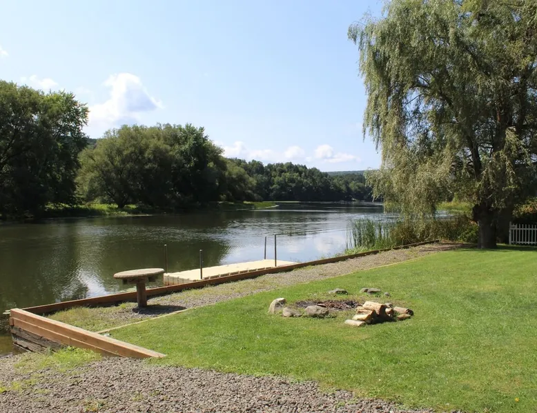 Goose Bay is located on the Susquehanna River at the north end of Goodyear Lake. You can relax and enjoy the scenery and all the wildlife this area has to offer - geese, ducks, egrets, herons, and even eagles! There is an easy boat launch from the backyard, a floating dock, and a canoe and kayak for your use! The space Whether you're vacationing in the area for the Baseball Hall of Fame, Cooperstown Dreams Park, All Star Village, Cooperstown Baseball World, Glimmerglass Opera, the Fenimore Art Museum, or the Farmer's Museum, Goose Bay is ideally located just minutes between Oneonta and Cooperstown. This desirable vacation property is just: - 8.3 miles to Cooperstown Dreams Park - 12.9 miles to Cooperstown All-Star Village - 13.4 miles to National Baseball Hall of Fame Guest access Goose Bay is a rambling ranch house with is a great location for several families to share. It features 2 master bedrooms, both with a king size bed and fully tiled private bathroom, one of which is handicapped accessible. 3 additional bedrooms (2 with queen size beds and one with a set of twin beds) share the remaining 2 full tiled bathrooms. There are 7 flat screen cable TVs (including a large 55" TV in the main living room), and, best of all, an amazing waterfront location! Goose Bay boasts an elegant living room with a beautiful bamboo floor, an enclosed porch overlooking the water for relaxing and enjoying the view whatever the weather, and a game room complete with a foosball table and wet bar! The kitchen features beautiful granite flooring, granite countertops, and stainless steel appliances including a refrigerator with automatic ice maker and a dishwasher. It is fully equipped with all the necessary cooking utensils to provide the comforts of home. Central air conditioning, high speed wireless internet (Wi-Fi) , and a washer and dryer are all standard amenities. Other things to note - No smoking - No pets - No team parties or large gatherings - Building security rules require a signed Renter Agreement, and the completion of our Guest Registration form. - A security/damage deposit hold will placed on your credit card in the amount of $500 apart from anything held by Airbnb. It will be automatically held on a credit card you will need to provide to the host when completing your reservation. In lieu of a credit card hold, you may pay cash at check-in.