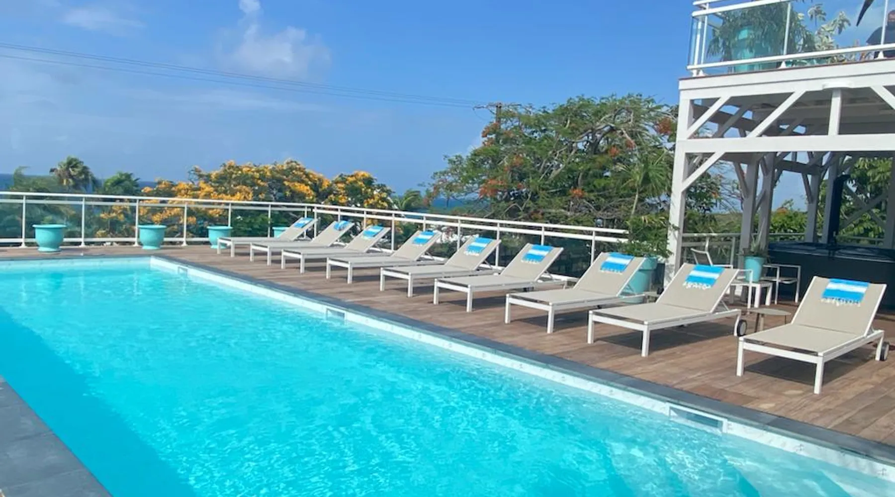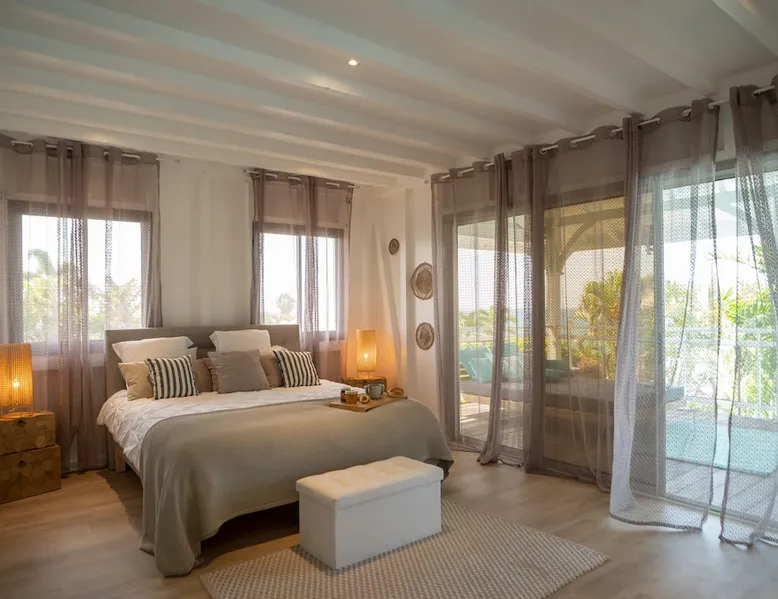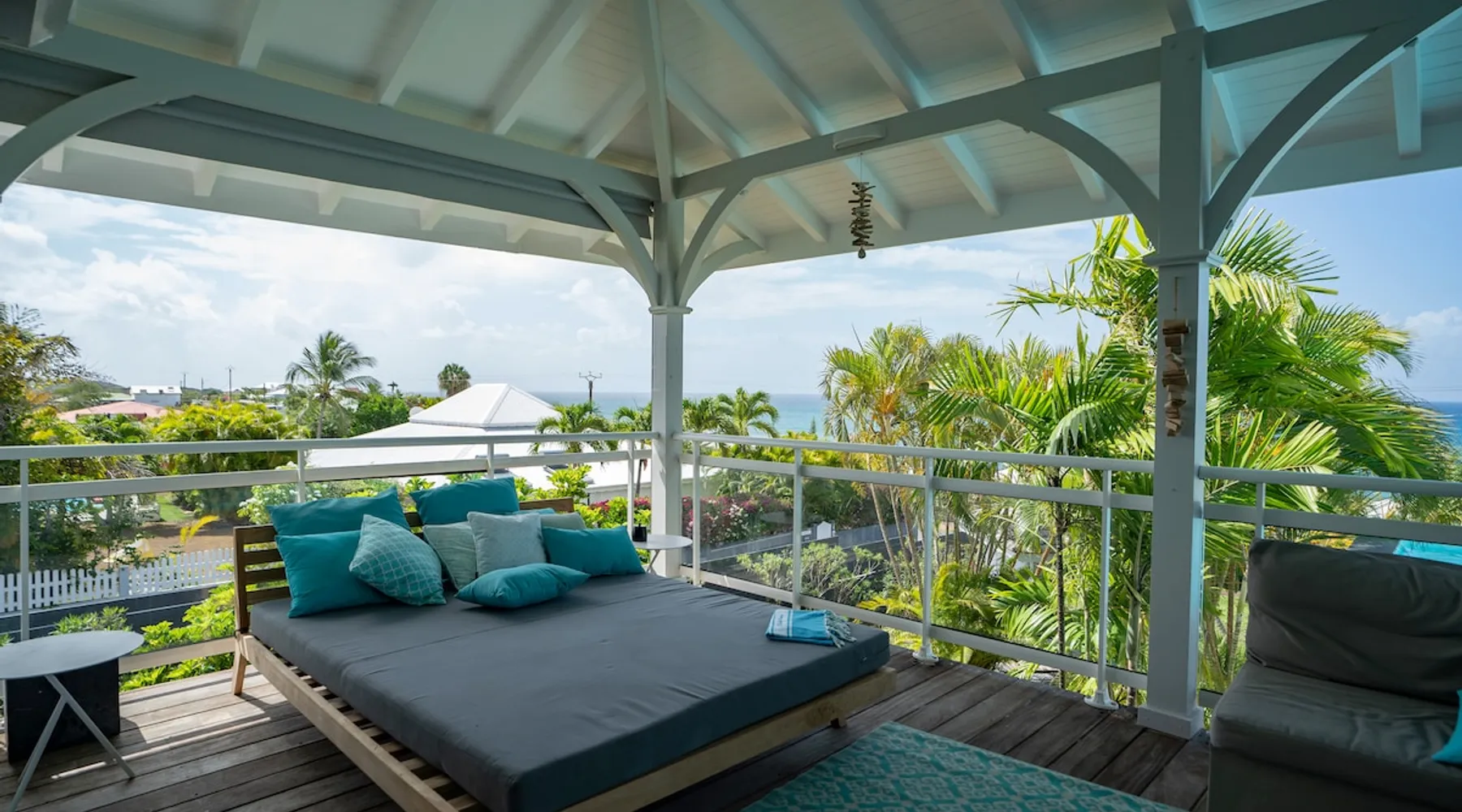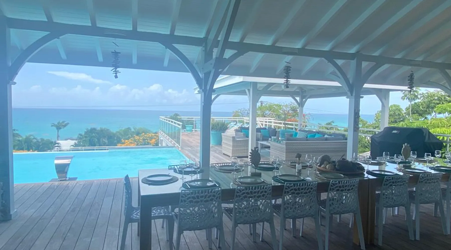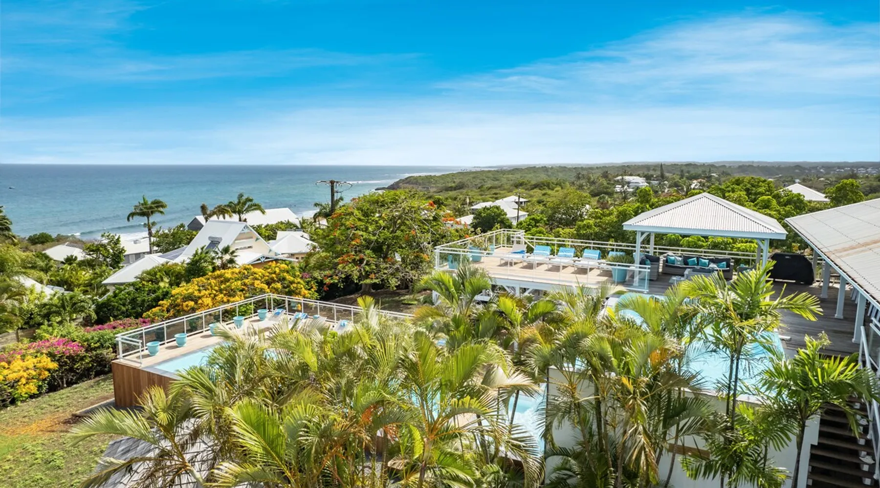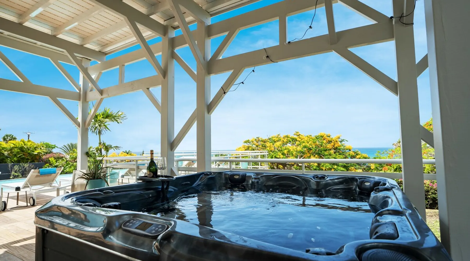 La villa compte 6 suites avec salle-de-bain ainsi qu’un dortoir enfants/adolescents avec 4 lits superposés pouvant accueillir 8 personnes. Ces lits superposés en 190x90 peuvent également accueillir des adultes. Au total l villa dispose de 20 COUCHAGES. Chaque suite peut également accueillir des lits bébé. Les terrasses ombragées mesures 300 m². La villa possède 3 piscines , un jacuzzi, panier de basket et terrain de petanque Parking 6 places MAIS SURTOUT UNE VUE MER A 180° La villa possède 3 piscines: une au 1er niveau(5mX9m), un bassin de débordement avec en contre-bas servant de piscines pour les petits et enfin une 3ème piscine au Rdc (4mx12m). La villa mesure 300m2 mais surtout comme nous sommes en Guadeloupe nous vivons a l'extérieur toute l année donc 300m2 également de terrasses ombragées et ventilées Une conciergerie gère le bien sur place. La remise des clefs ainsi qu'un tour complet de la maison sont effectués à l'arrivée des voyageurs. Une conciergerie sur place gère le logement. Vue sur mer et située à 500m d'une plage de sable Il est conseillé de louer un véhicule lors de votre arrivée sur l'île. Nous contacter pour de plus amples renseignements. La piscine est équipée d'une alarme qui permet de détecter les chutes dans l'eau. Il n'y a pas de volet de piscine. Merci d'avance.