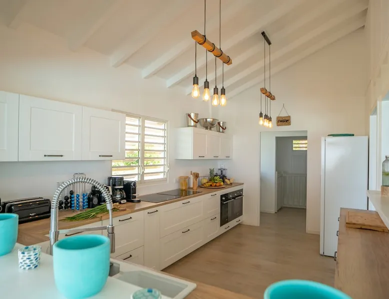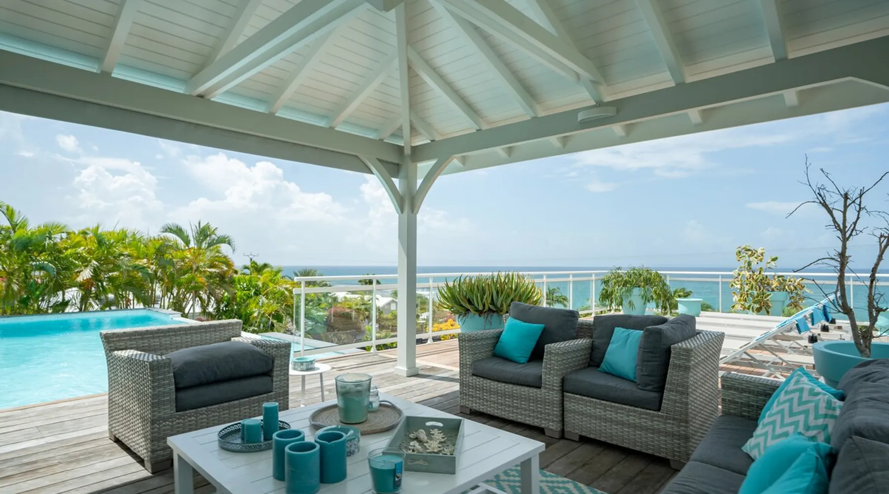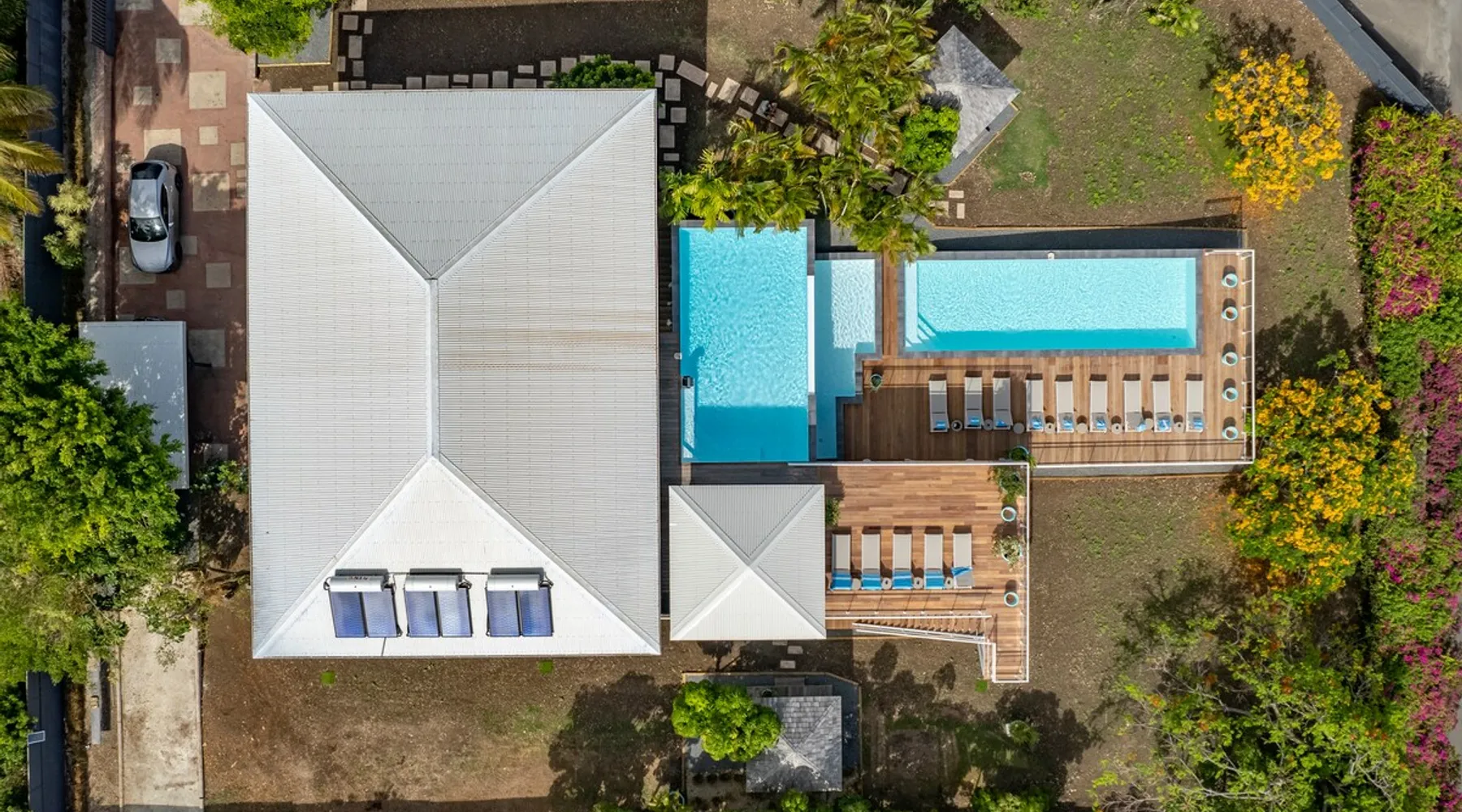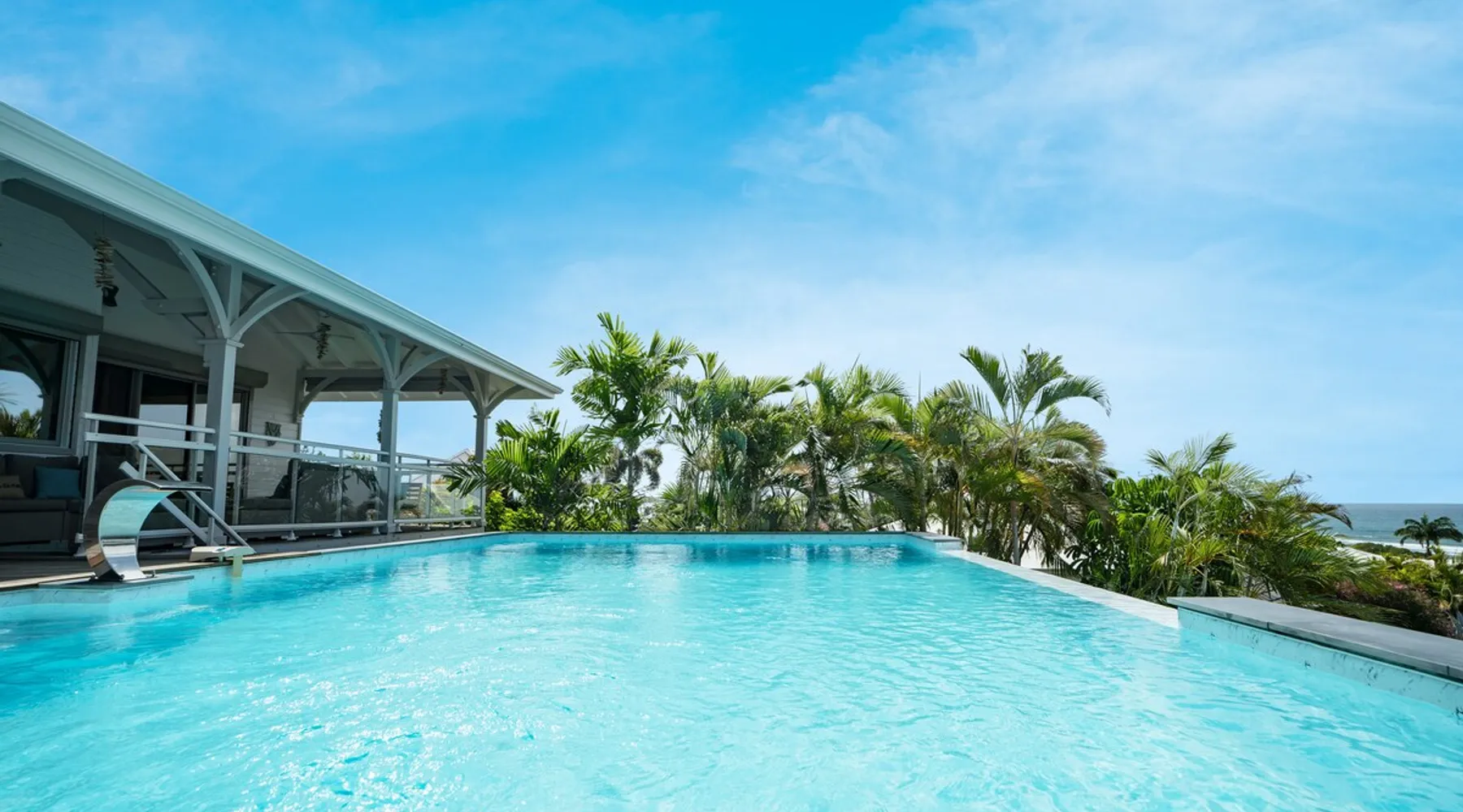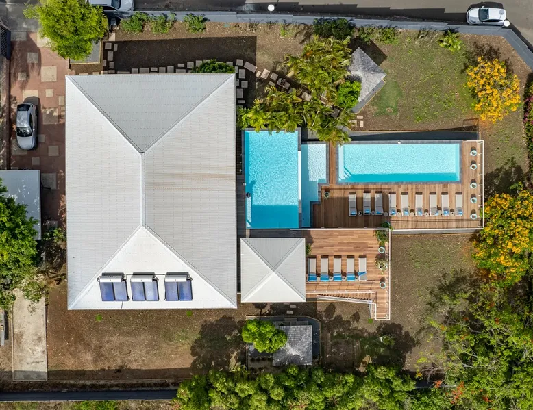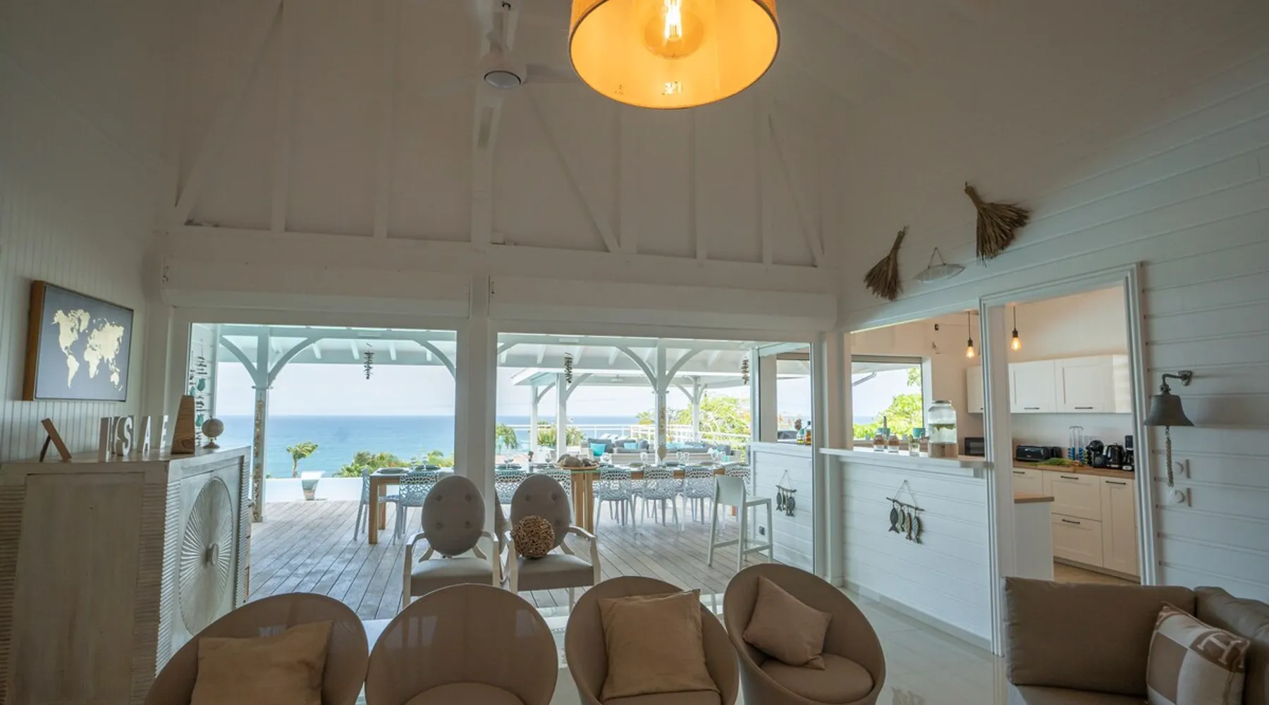 La villa compte 6 suites avec salle-de-bain ainsi qu’un dortoir enfants/adolescents avec 4 lits superposés pouvant accueillir 8 personnes. Ces lits superposés en 190x90 peuvent également accueillir des adultes. Au total l villa dispose de 20 COUCHAGES. Chaque suite peut également accueillir des lits bébé. Les terrasses ombragées mesures 300 m². La villa possède 3 piscines , un jacuzzi, panier de basket et terrain de petanque Parking 6 places MAIS SURTOUT UNE VUE MER A 180° La villa possède 3 piscines: une au 1er niveau(5mX9m), un bassin de débordement avec en contre-bas servant de piscines pour les petits et enfin une 3ème piscine au Rdc (4mx12m). La villa mesure 300m2 mais surtout comme nous sommes en Guadeloupe nous vivons a l'extérieur toute l année donc 300m2 également de terrasses ombragées et ventilées Une conciergerie gère le bien sur place. La remise des clefs ainsi qu'un tour complet de la maison sont effectués à l'arrivée des voyageurs. Une conciergerie sur place gère le logement. Vue sur mer et située à 500m d'une plage de sable Il est conseillé de louer un véhicule lors de votre arrivée sur l'île. Nous contacter pour de plus amples renseignements. La piscine est équipée d'une alarme qui permet de détecter les chutes dans l'eau. Il n'y a pas de volet de piscine. Merci d'avance.